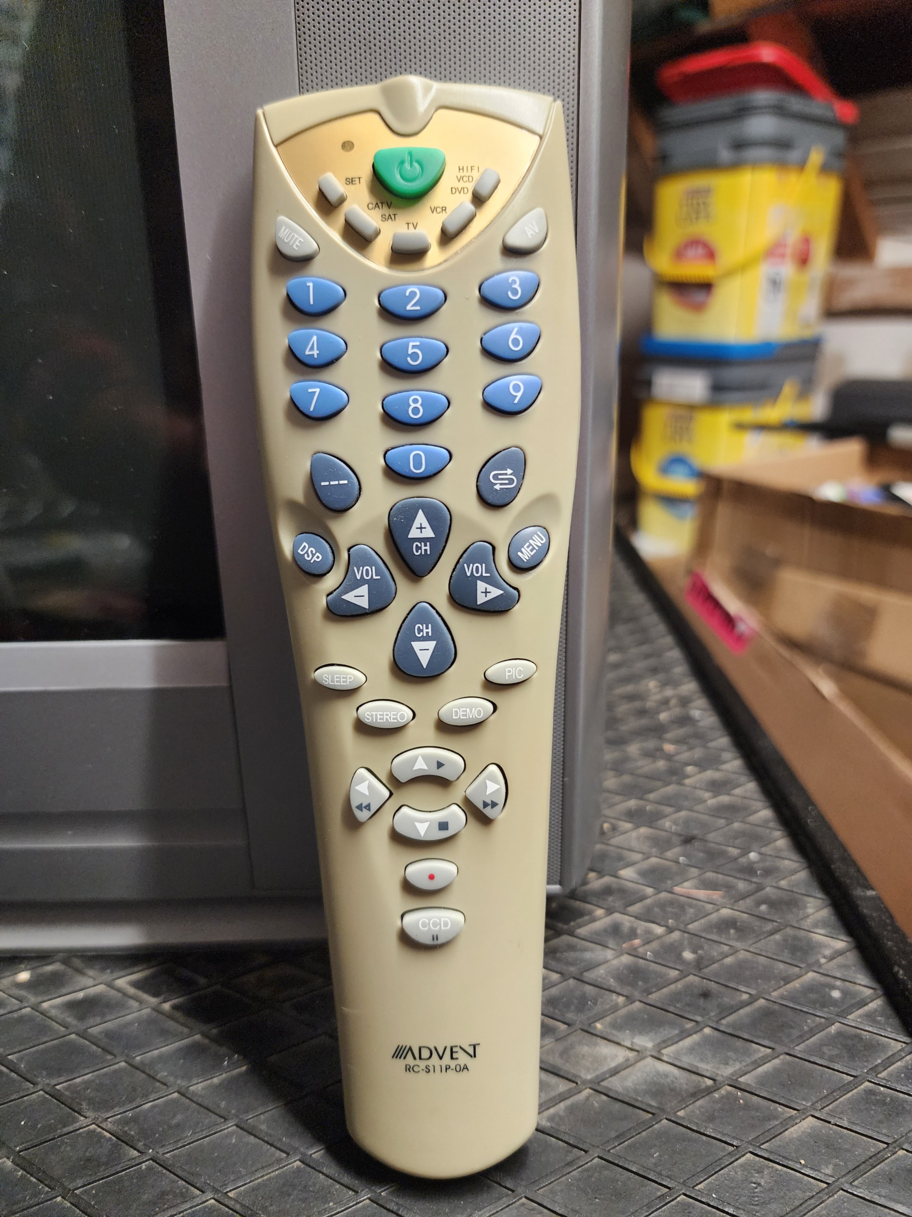 20" Advent-branded CRT with a full set of inputs from 2004. A great little gem originally manufactured by Prima in China.