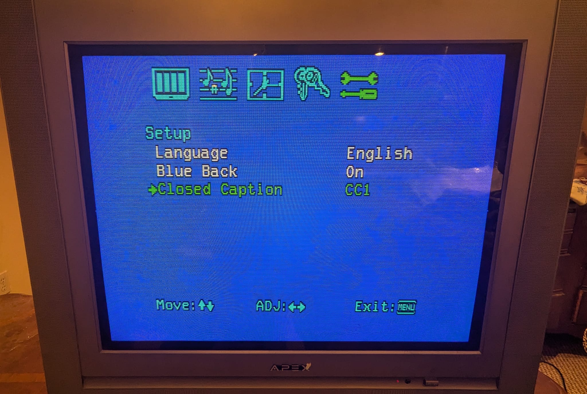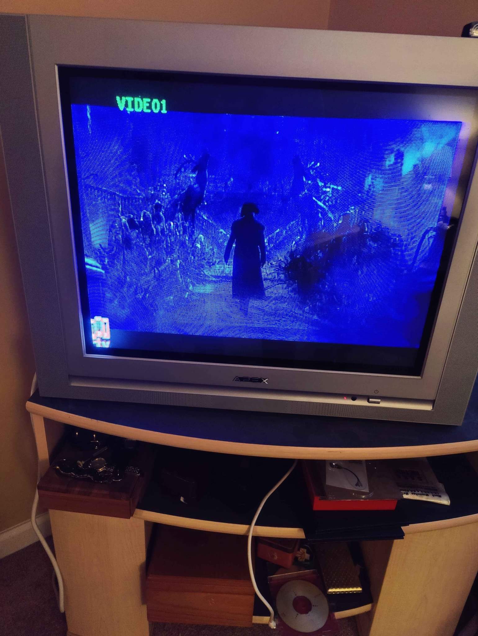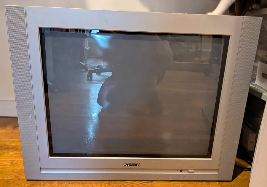 27" "pure flat" TV by Apex from 2003. Has RF, composite, s-video and component inputs. Originally manufactured by Changhong Electric in China.