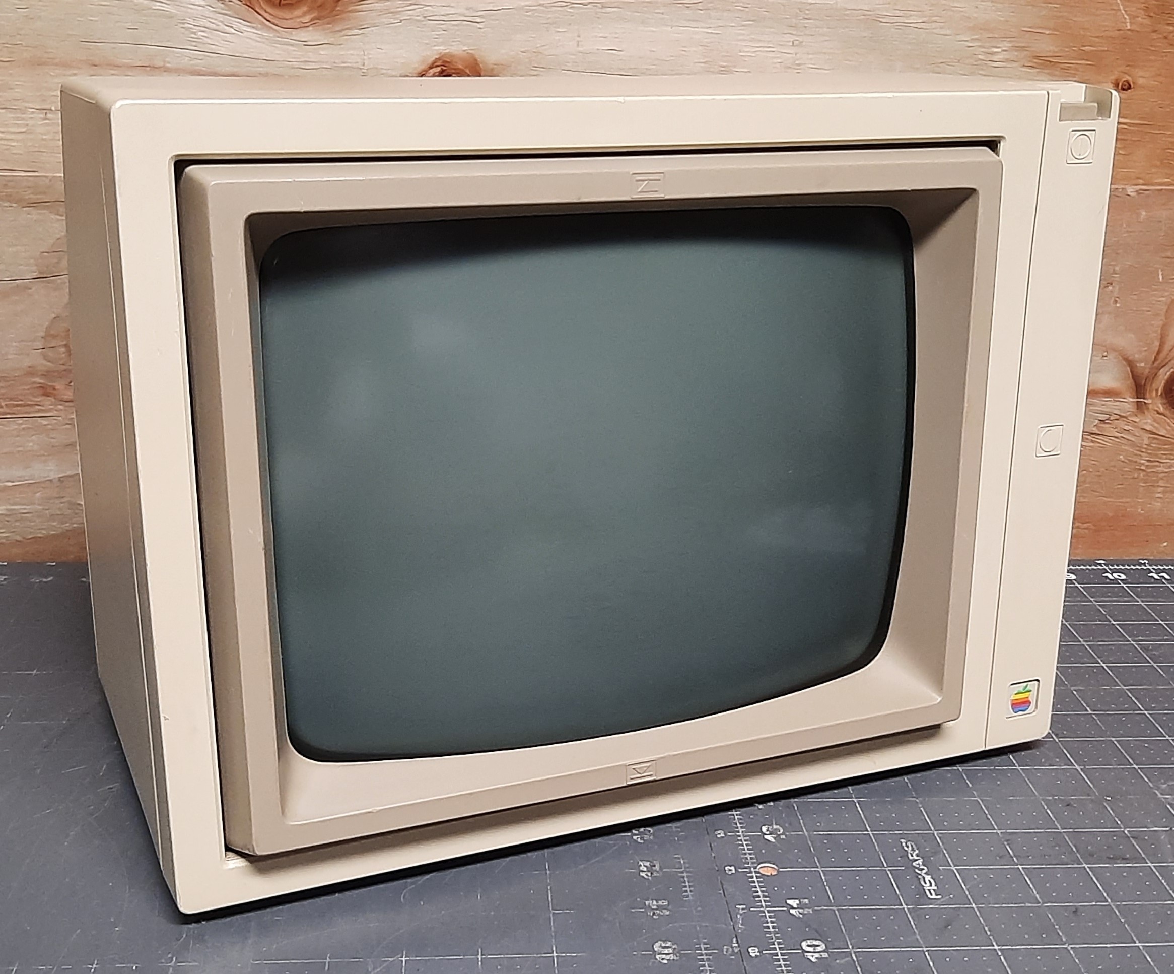 12" green phosphor monochrome monitor, manufactured by Samsung. Sold with the Apple IIe personal computer, it features a tilting bezel for variable viewing angles. It uses a standard composite video input and can be used with other input sources as needed.