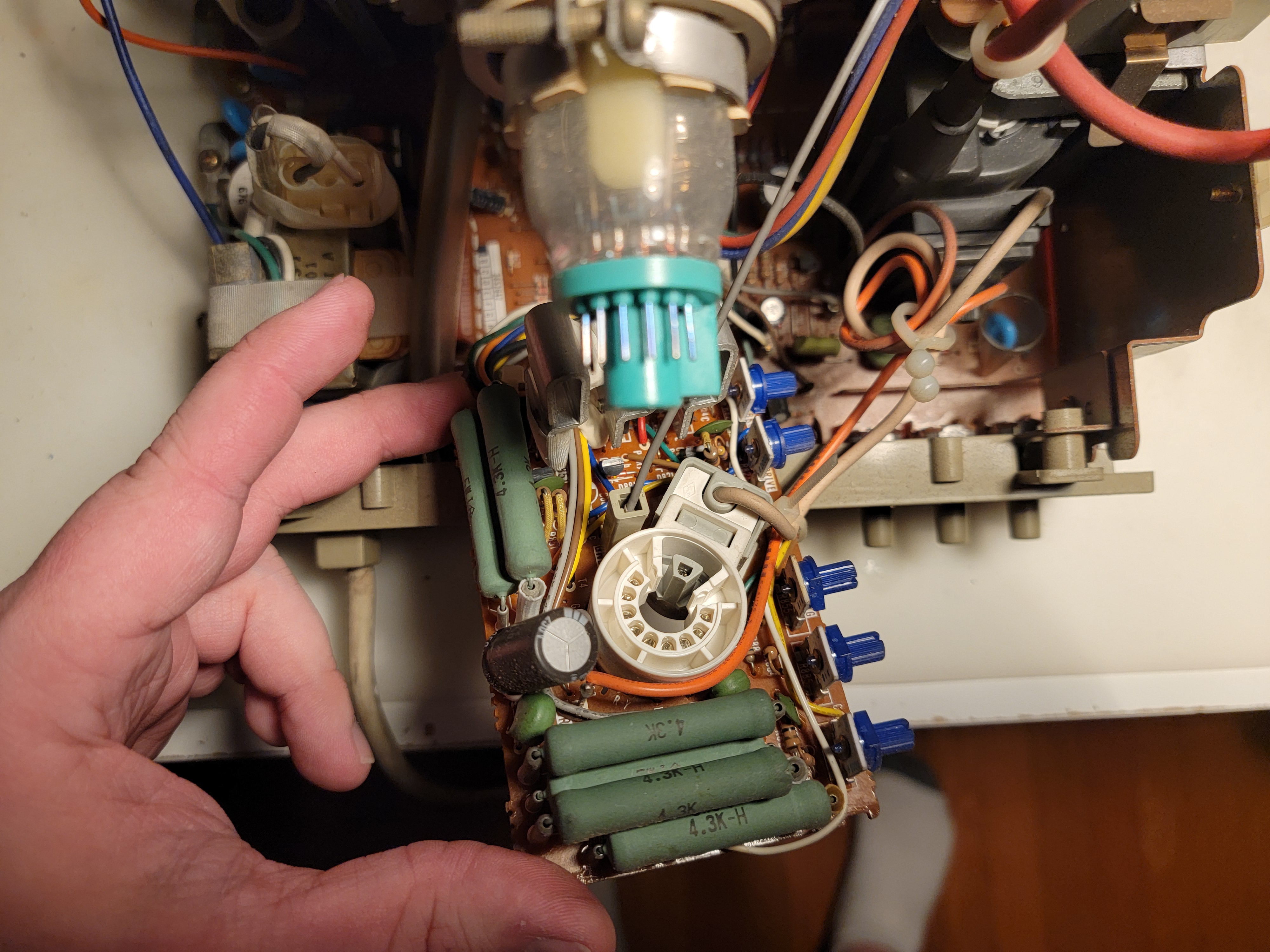 The capacitors in this monitor are prone to leaking and should be replaced. The neckboard inside has drive and bkg adjustments for white balance.