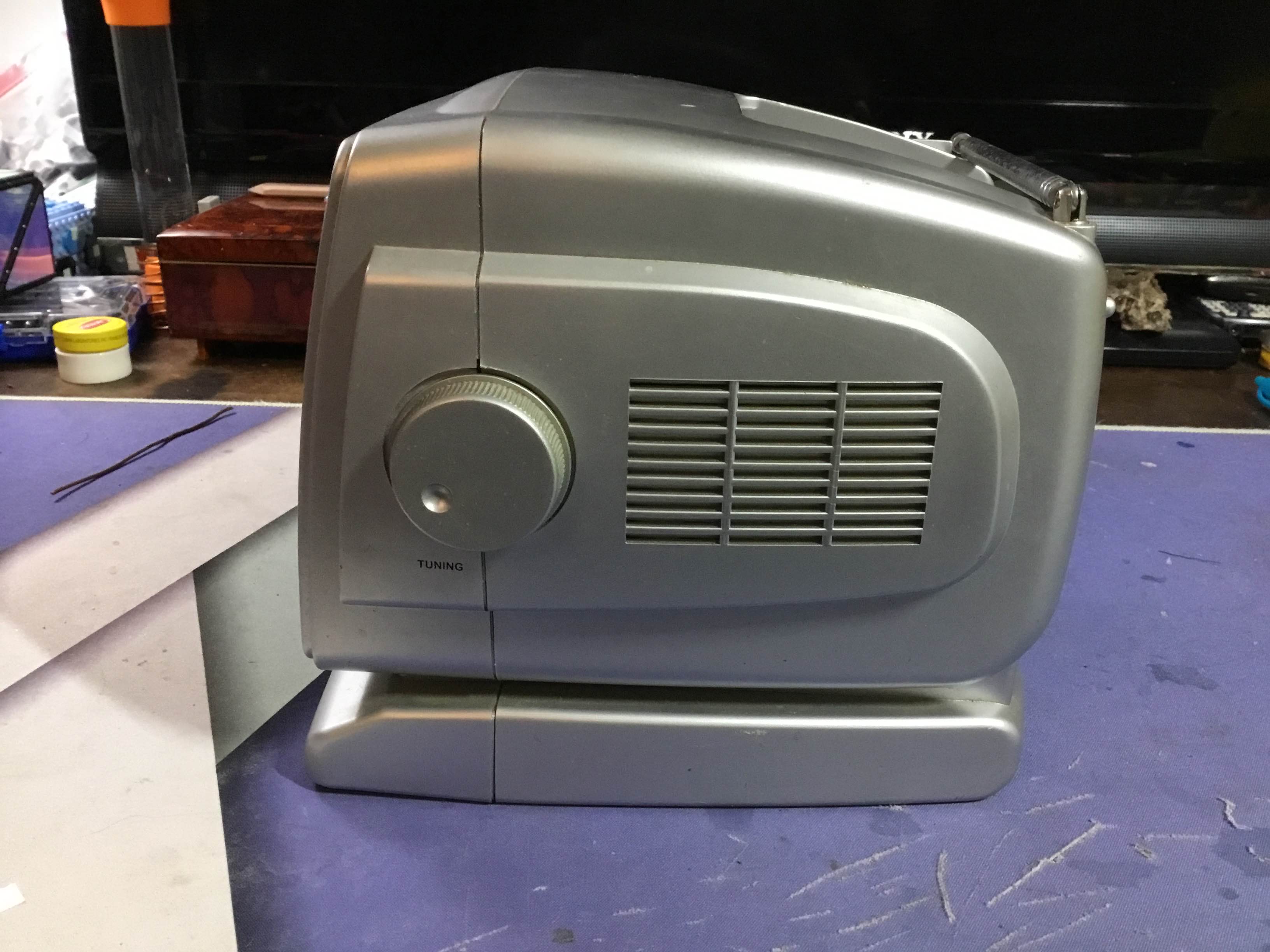 A budget friendly black-and-white consumer television with built-in AM/FM radio.