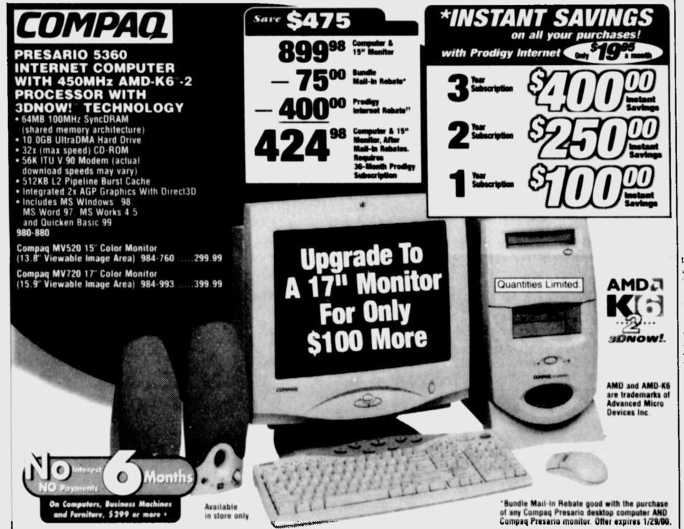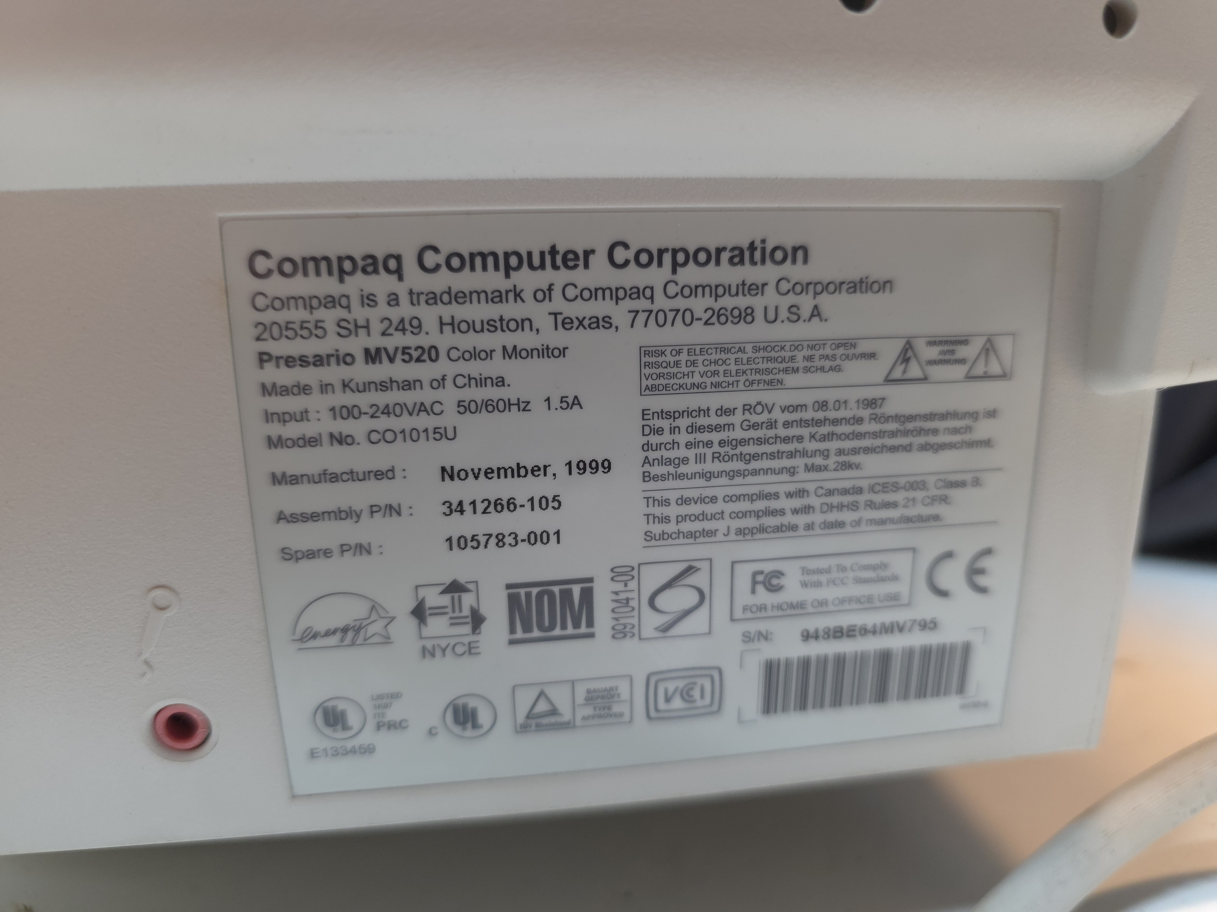 Entry level 15" PC monitor designed for 800X600 and 1024X768 resolutions. Bundled with Compaq's Presario line of pre-built PCs in the late '90s.