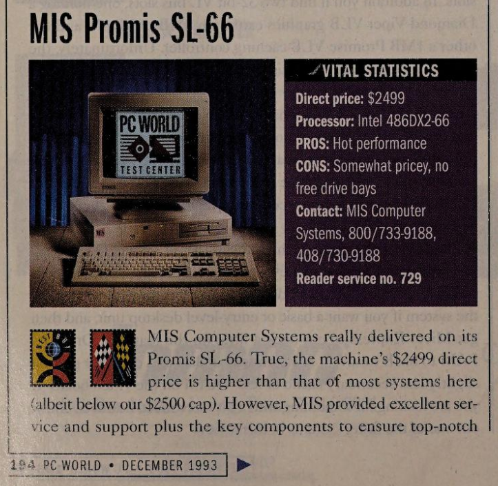 - Included with 1993 MIS Promis SL-66, PC World Best Buy
