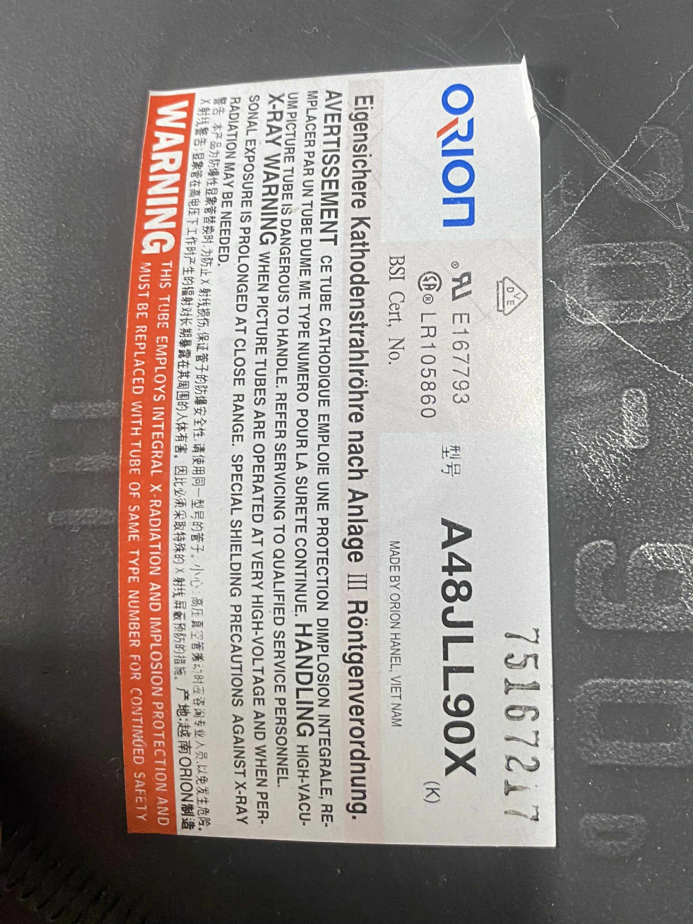 | Tube: | Daewoo-Orion , A48JLL90X |