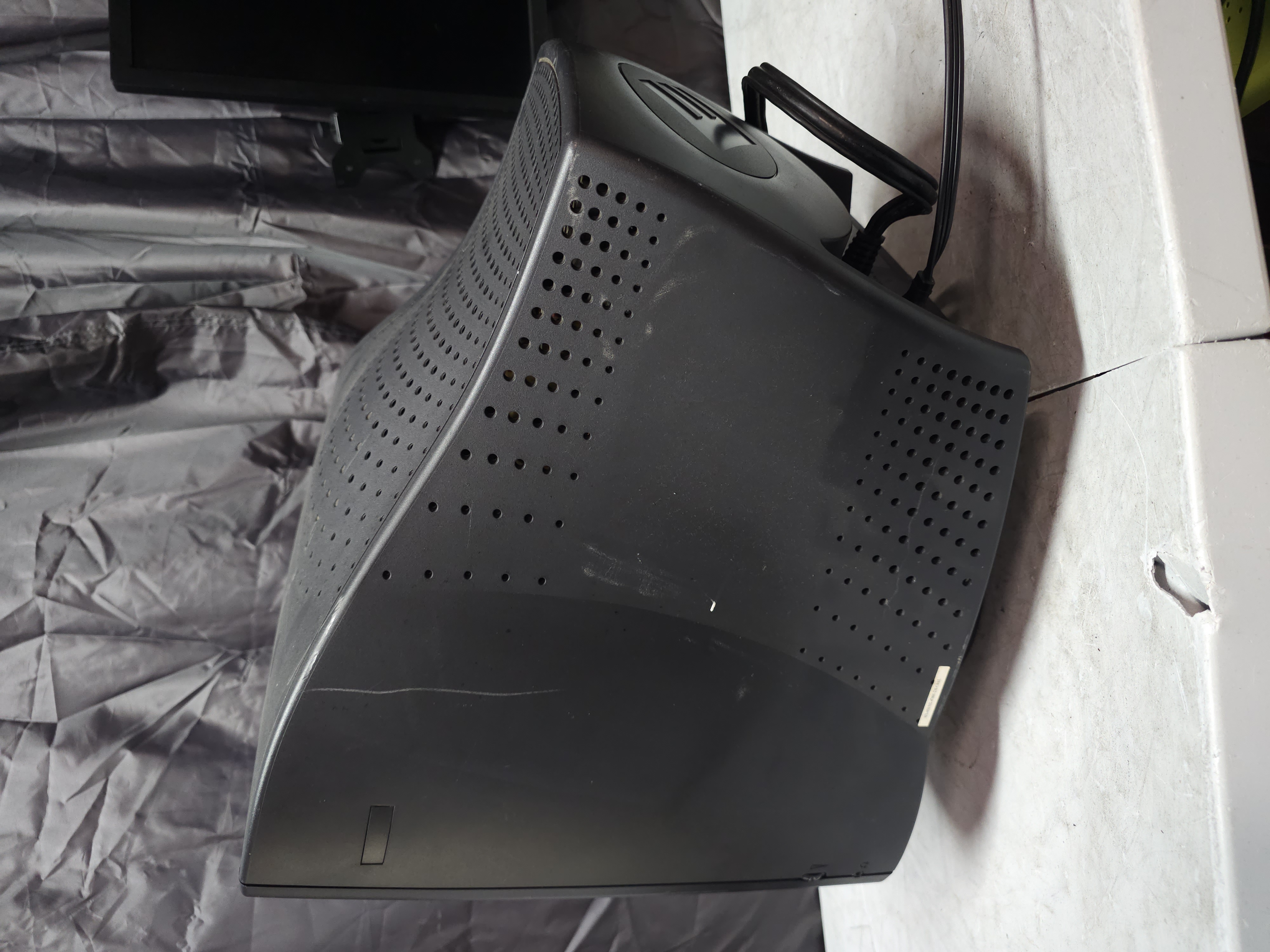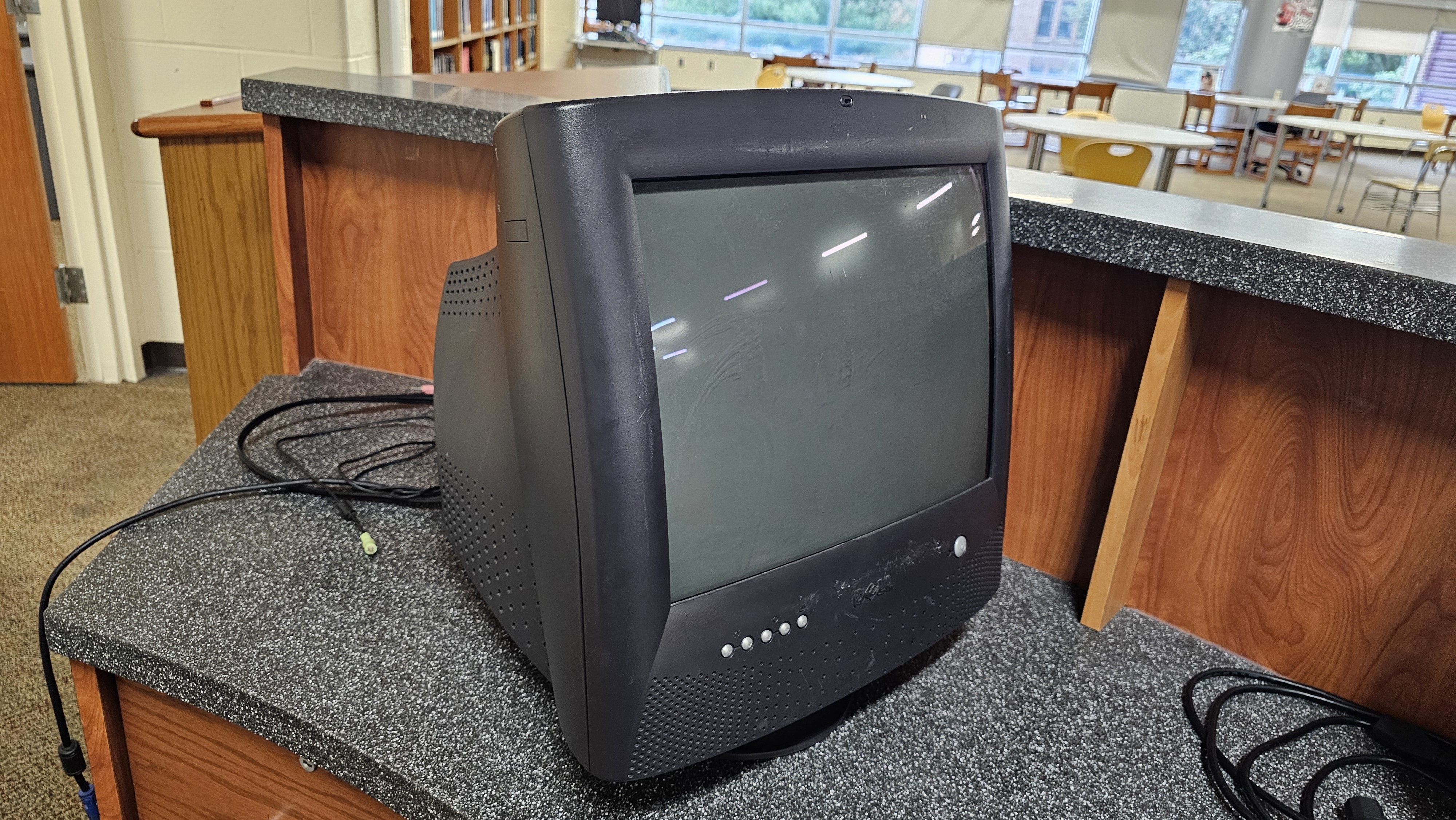 Sold as a "multimedia monitor", the Dell E771mm has a built-in microphone at the top of the tube and two bottom mounted mounted speakers. A volume dial and headphone jack are located on the right side of the case.
