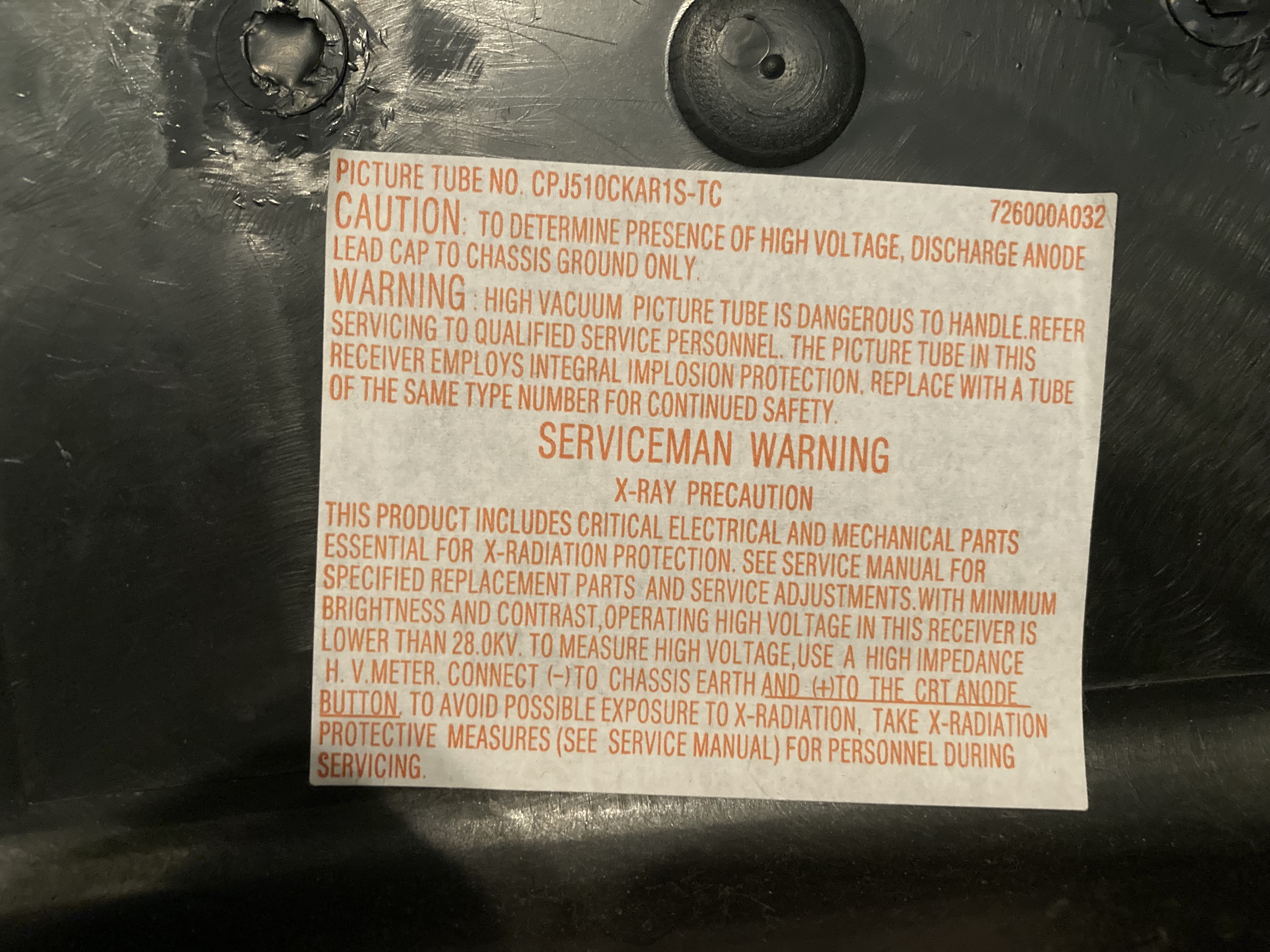 This TV uses a genuine 19" tube, which makes it useful as a potential donor for arcade monitors.