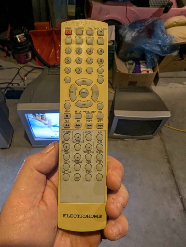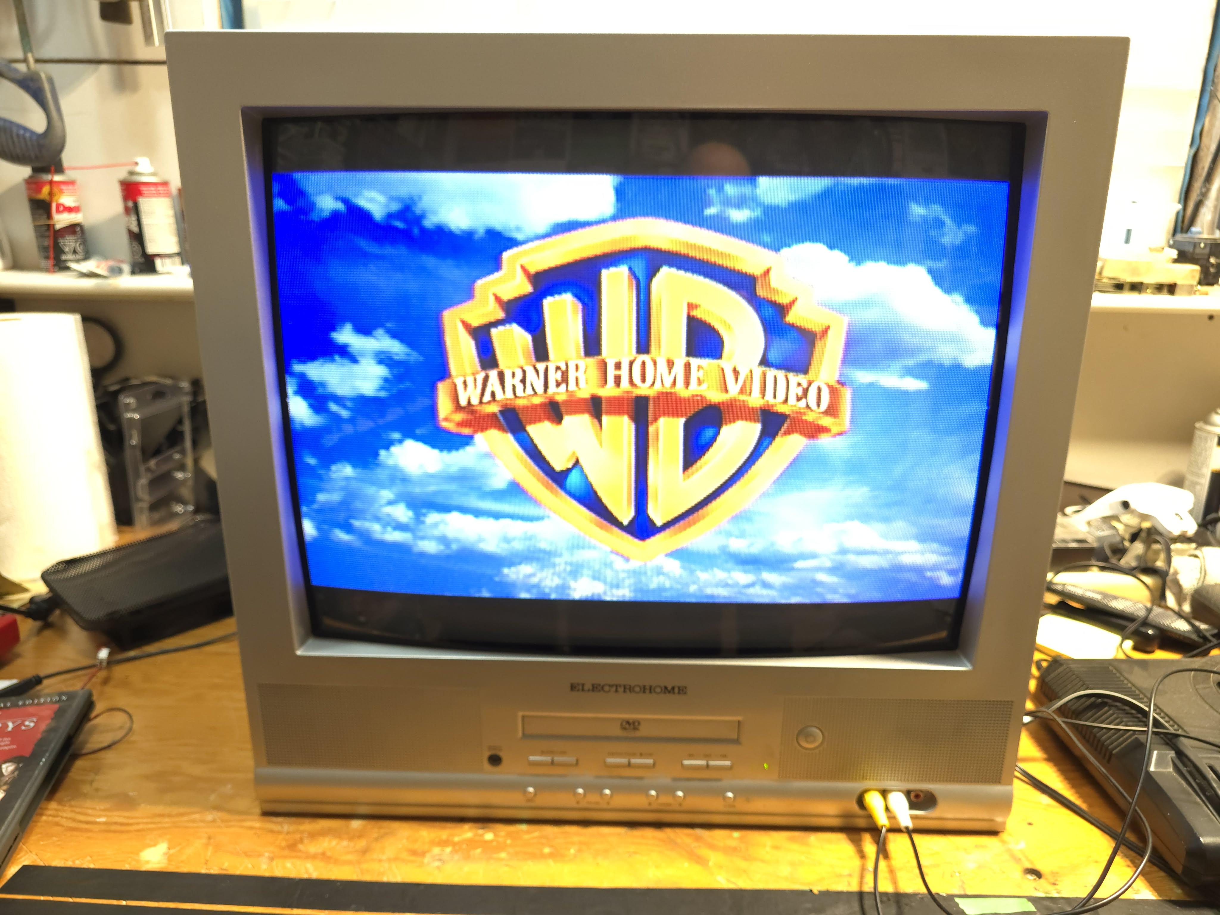20" TV/DVD combo CRT by Electrohome, sold in Canada in 2005. Originally manufactured by Haier in China. Has RF and composite input with stereo sound. Also has digital audio output.