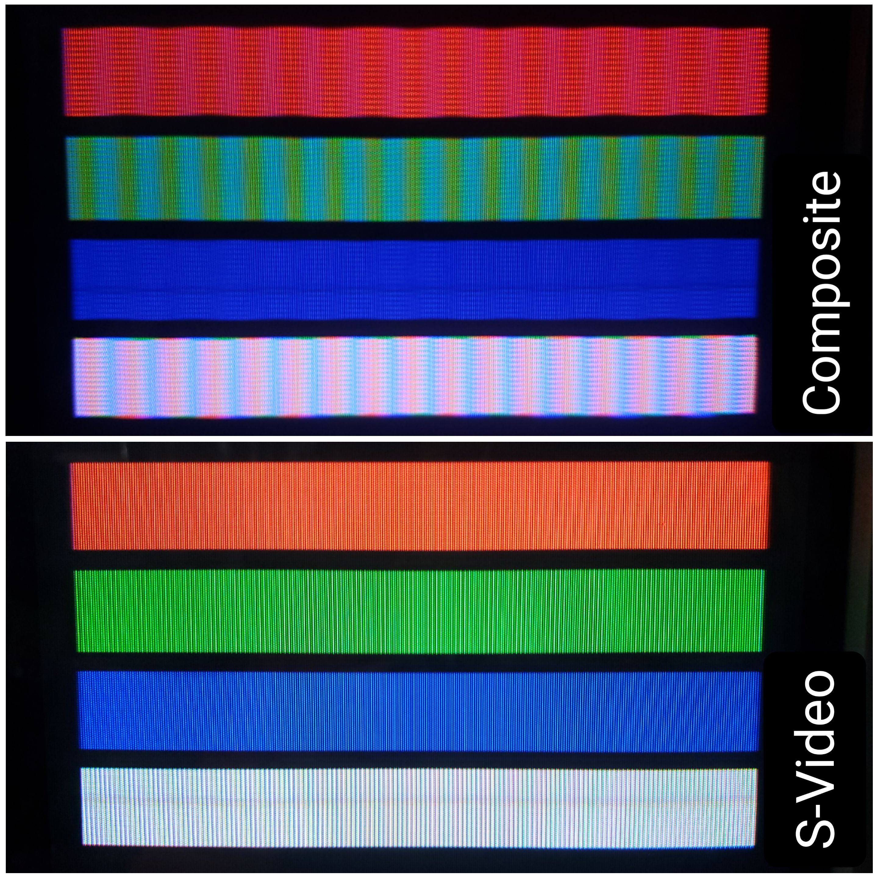 The internal DVD player is connected to the jungle chip via Y/C (S-Video). Accessing the service menu requires sacrificing a remote to lift and jump pins on a very small surface mount IC inside; doing so is not beginner-friendly. The unified Renesas jungle chip does not support RGB mods. All photos were taken connected via S-Video.