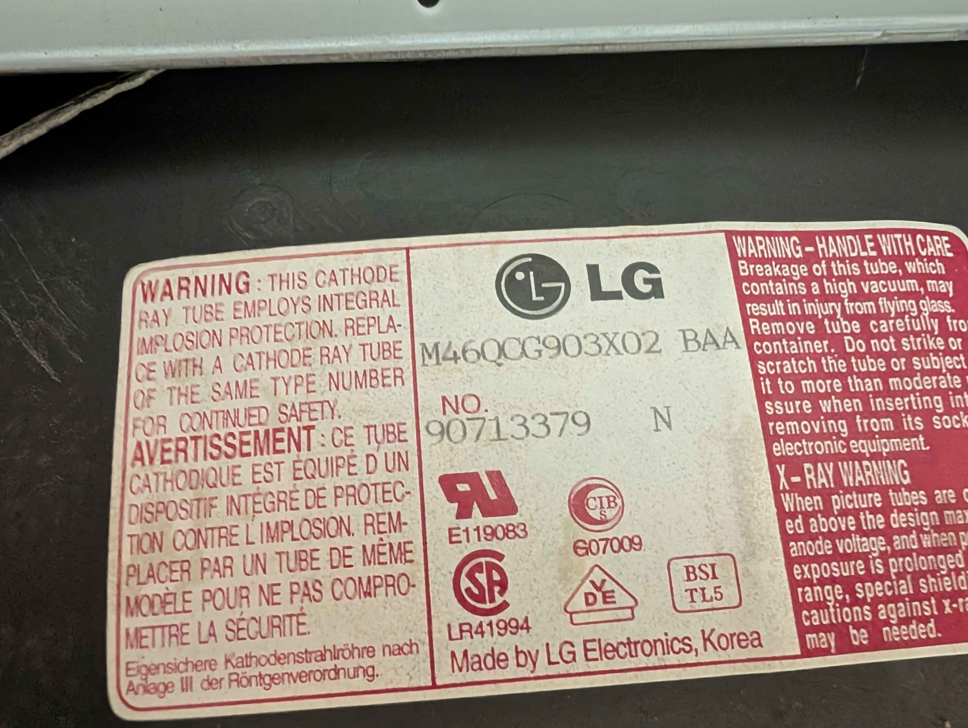 | Tube: | LG , M46QCG903X02 |