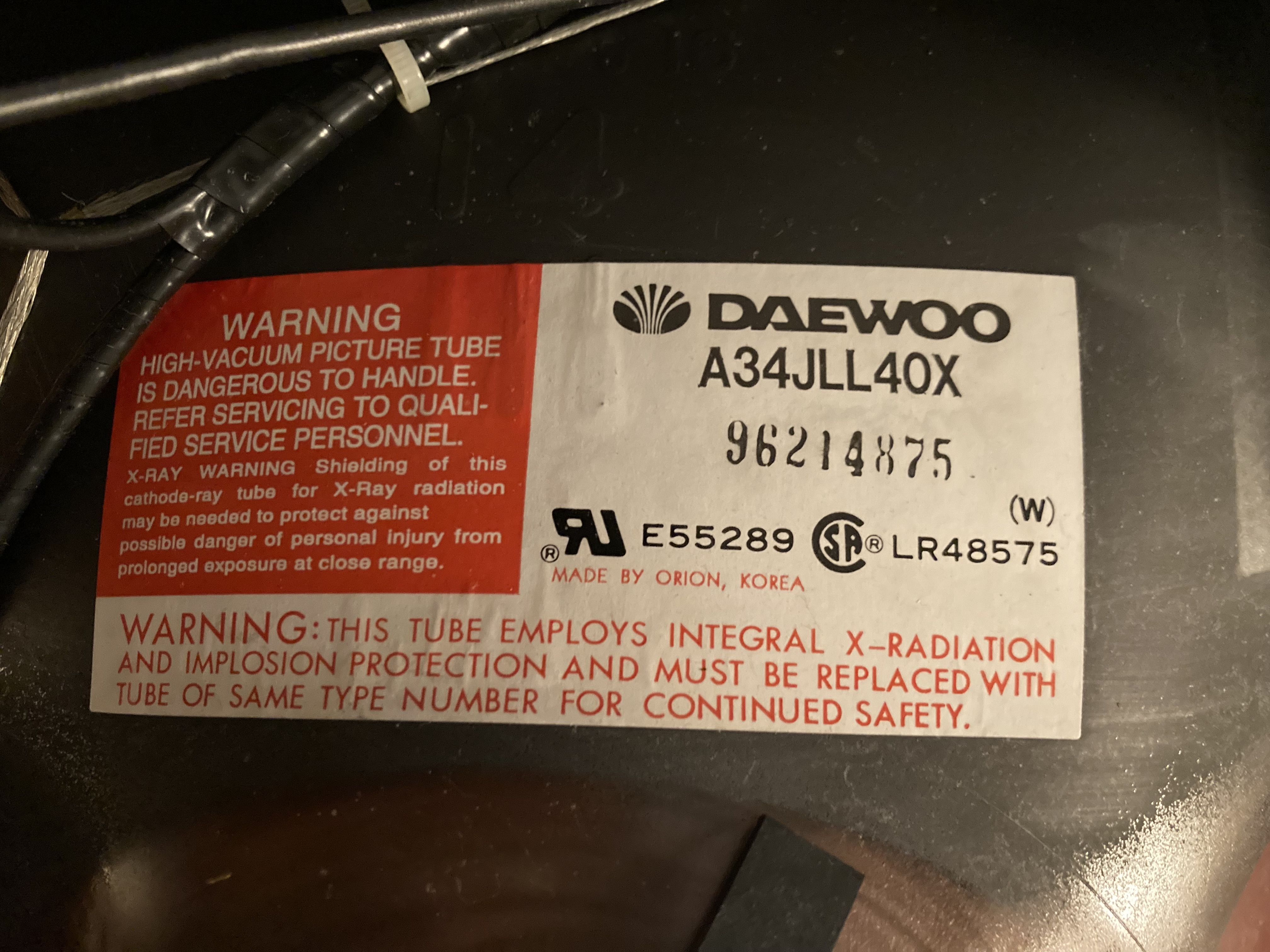 | Tube: | Daewoo-Orion , A34JLL40X , A34JLL40X01 |