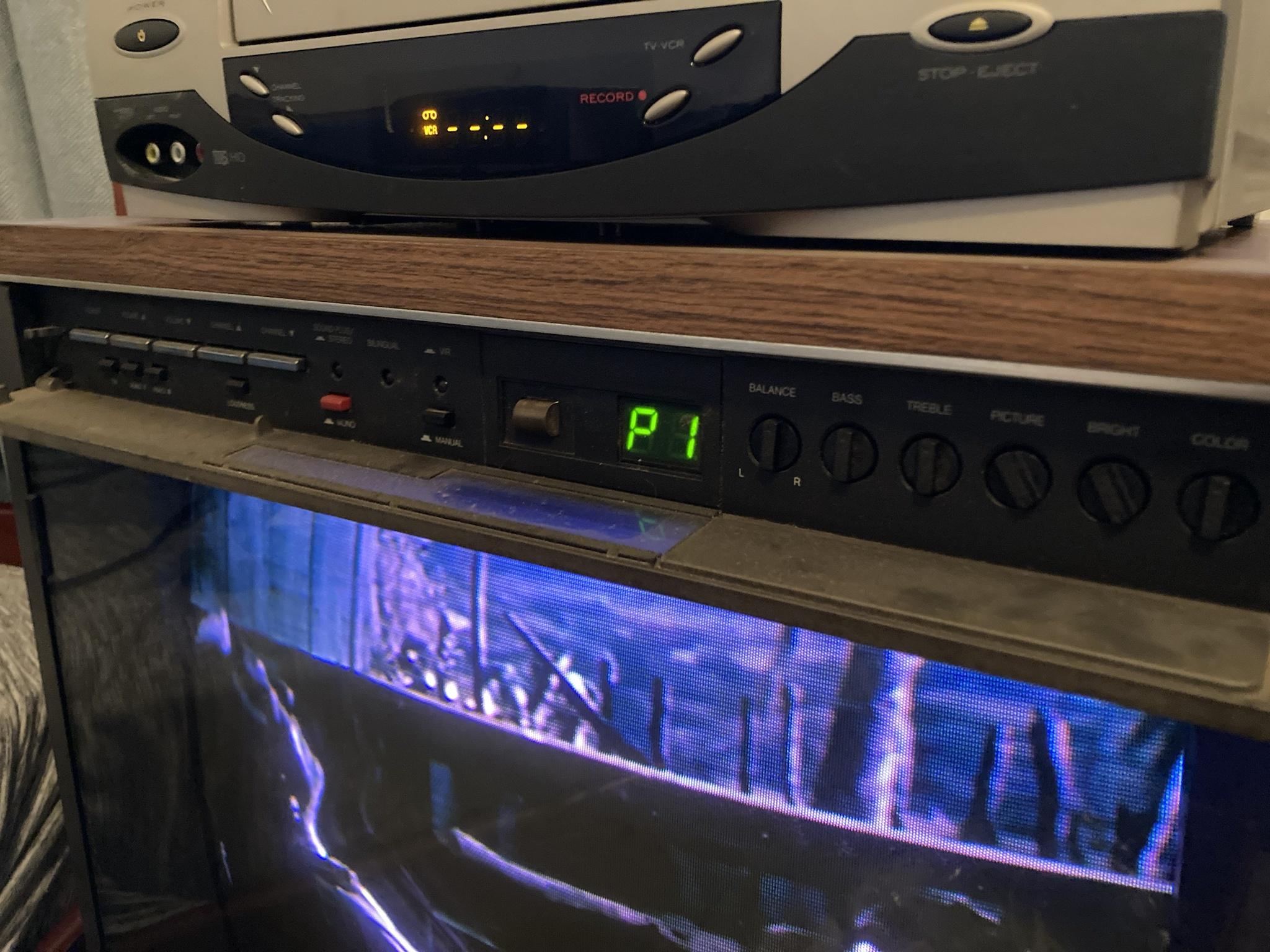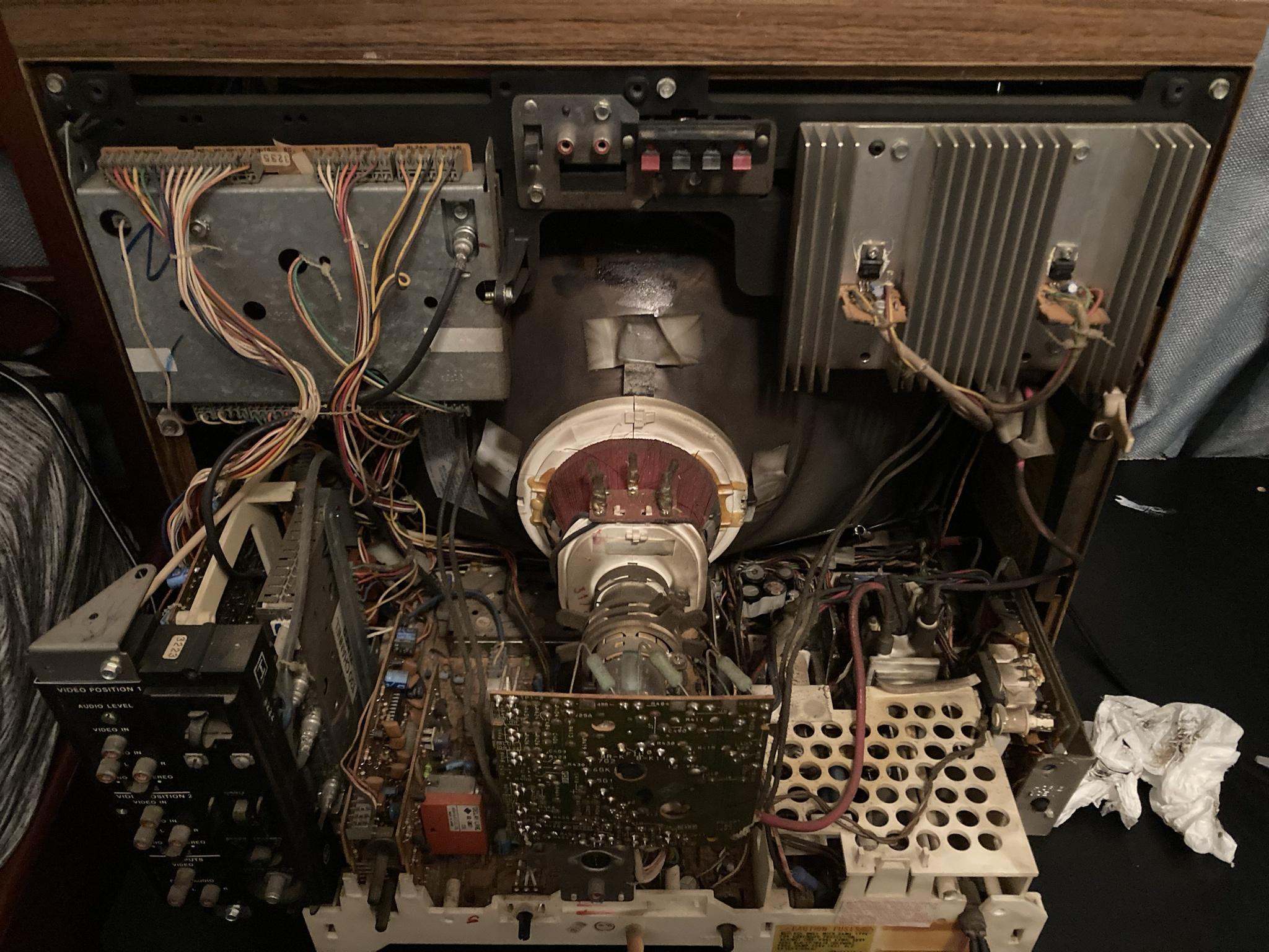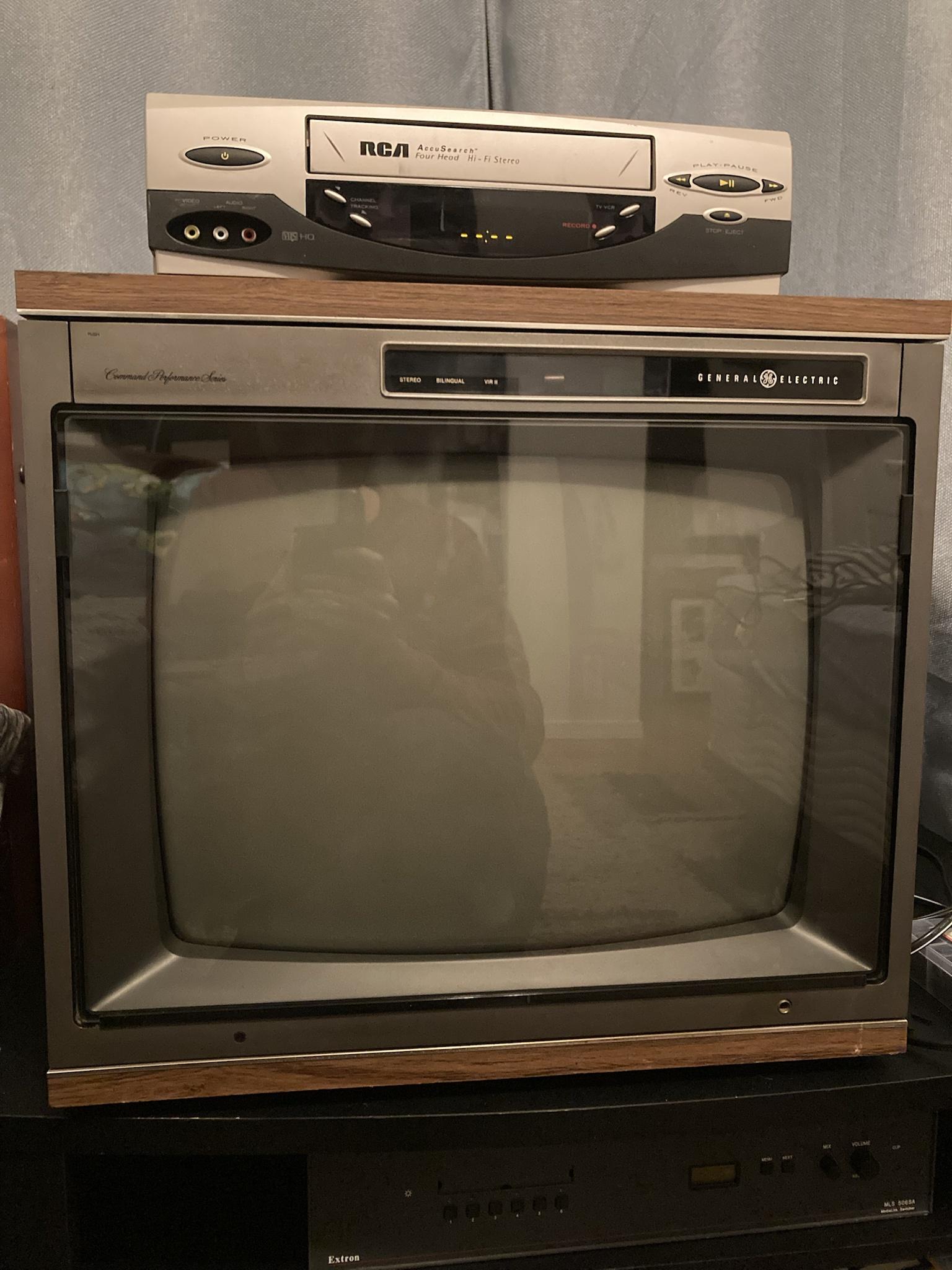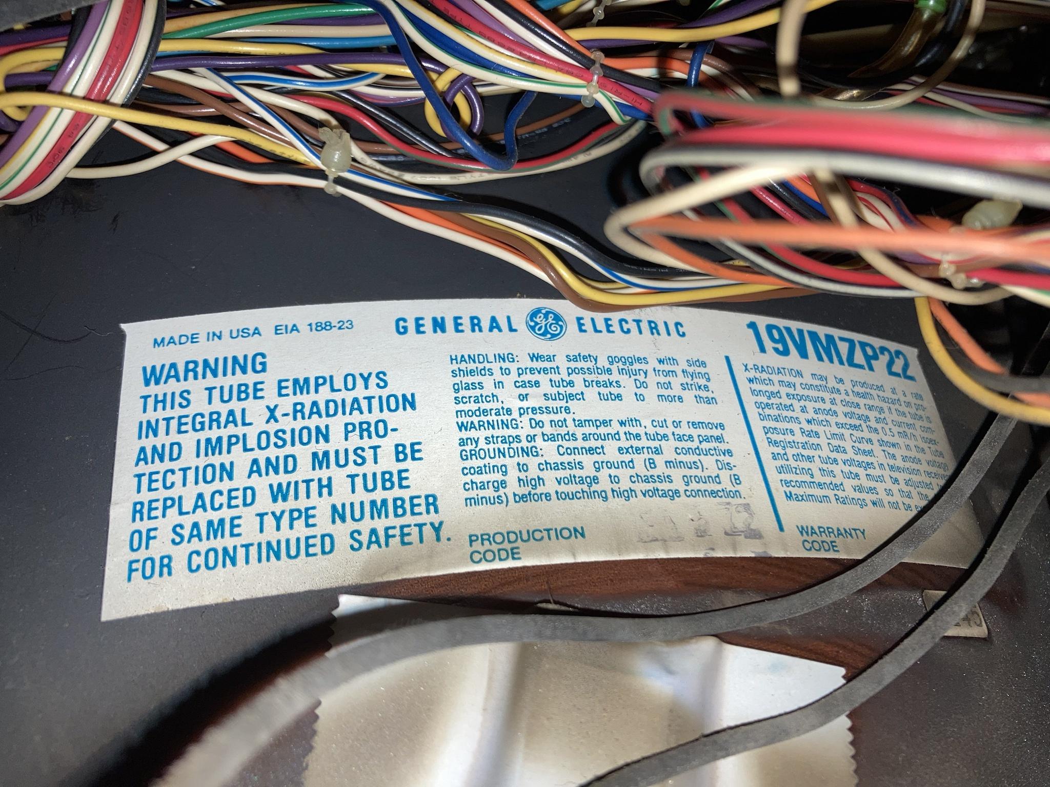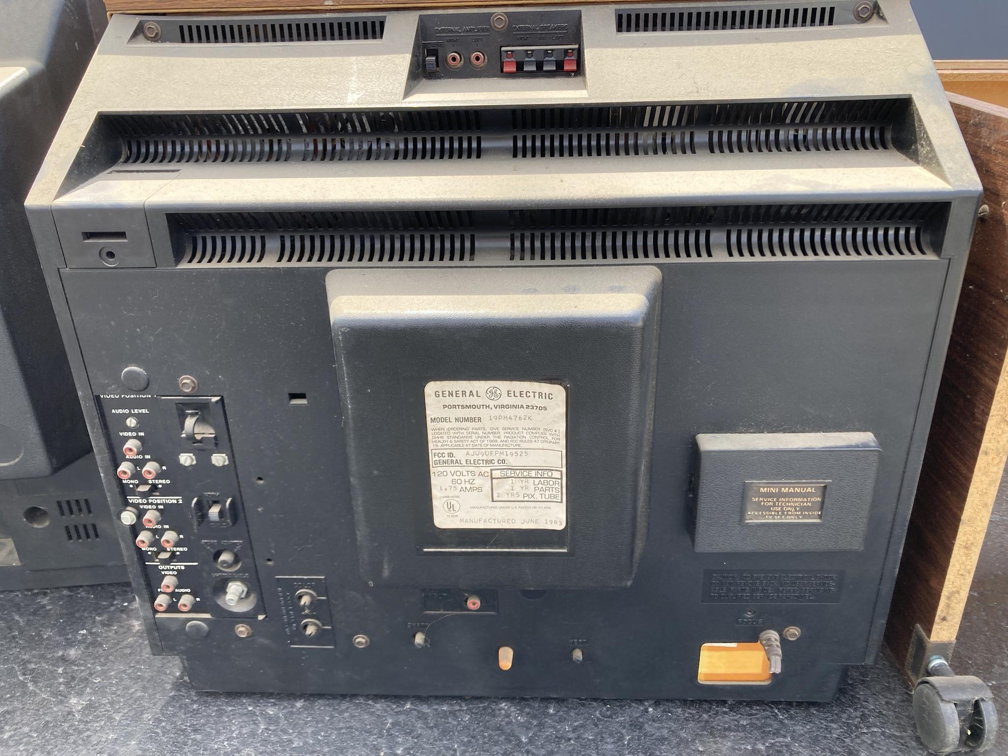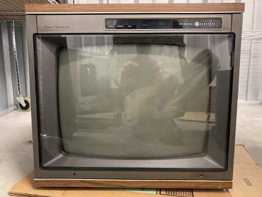 Higher-end 19" woodgrain television by General Electric from the early 1980's. Has RF, composite, and stereo audio inputs and outputs. Made in the USA in 1983.