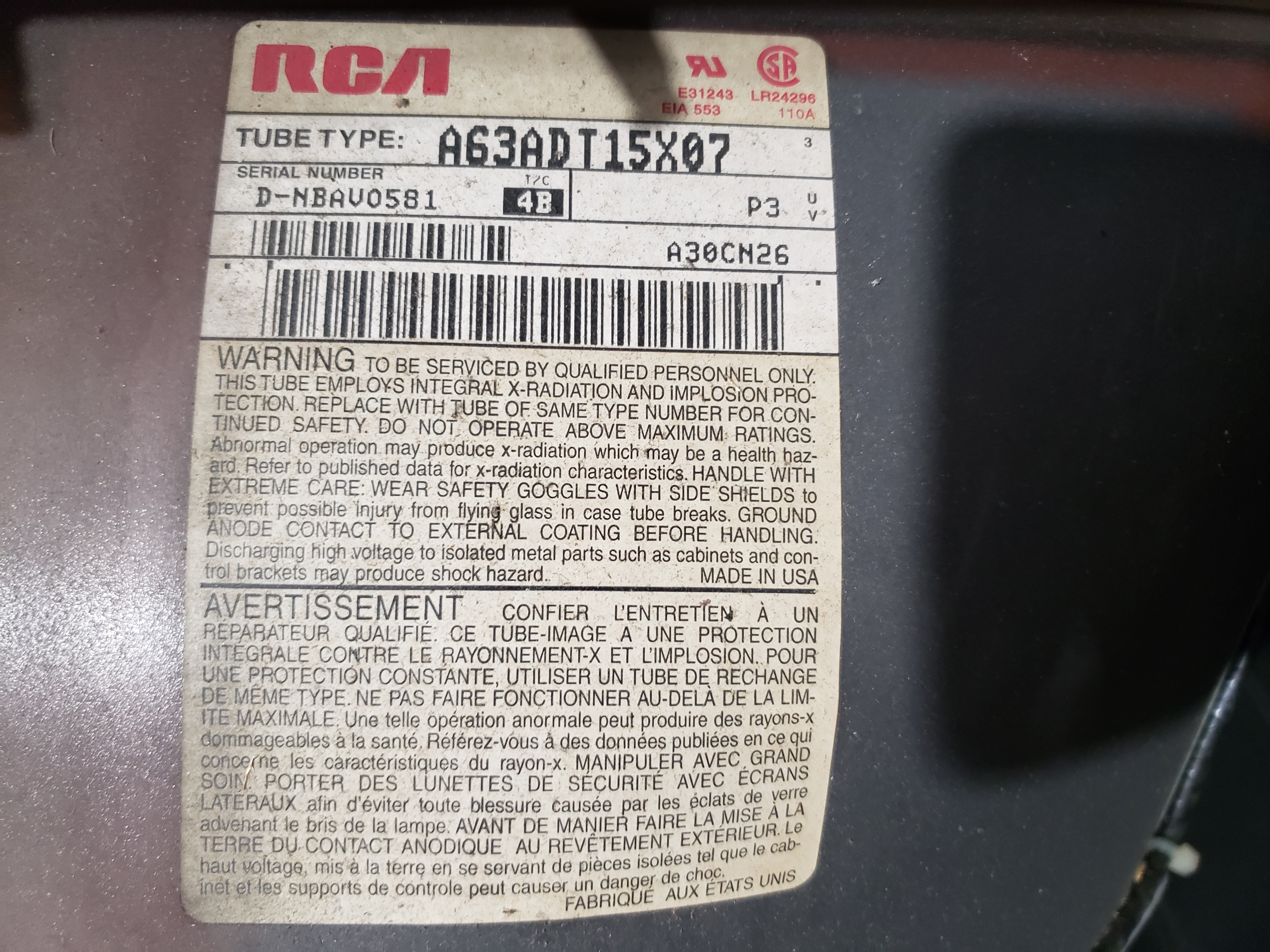 | Tube: | A63ADT15X07 , A63ADT15X |