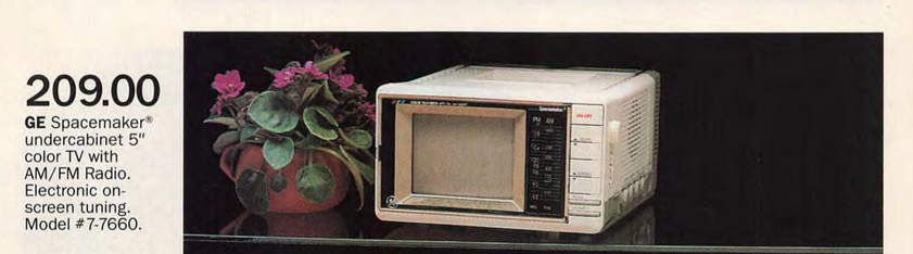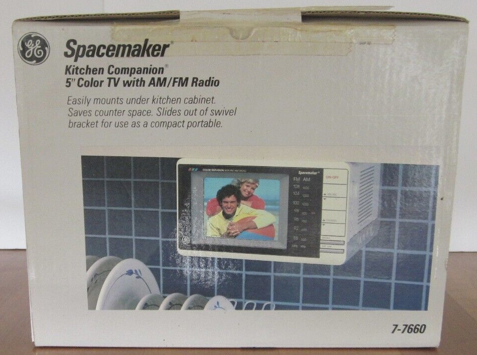 5" kitchen TV/radio with rails for under-cabinet mounting, integrated kickstand, and pop-out handle.