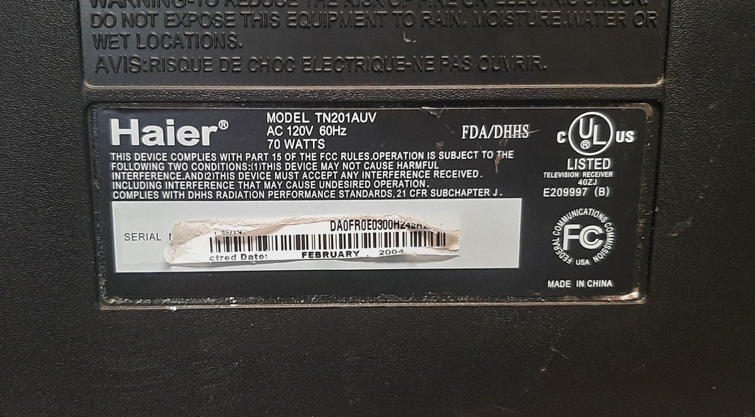 | Manufacturer: | Haier |