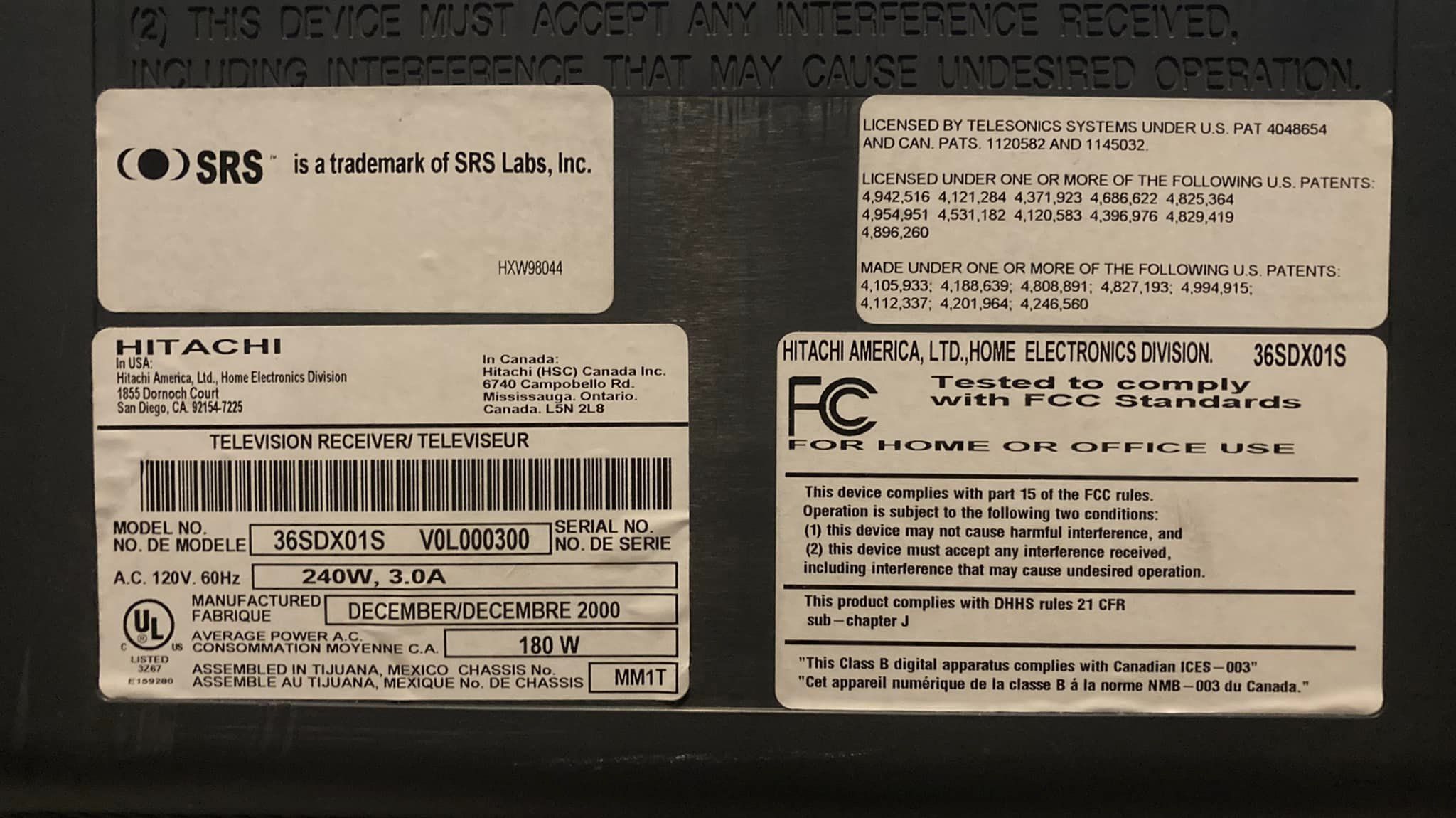 Despite it looking almost identical to other SD and HD Hitachi sets of the time, this set can be identified by the "ULTRASCAN HD" logo in the upper left corner.