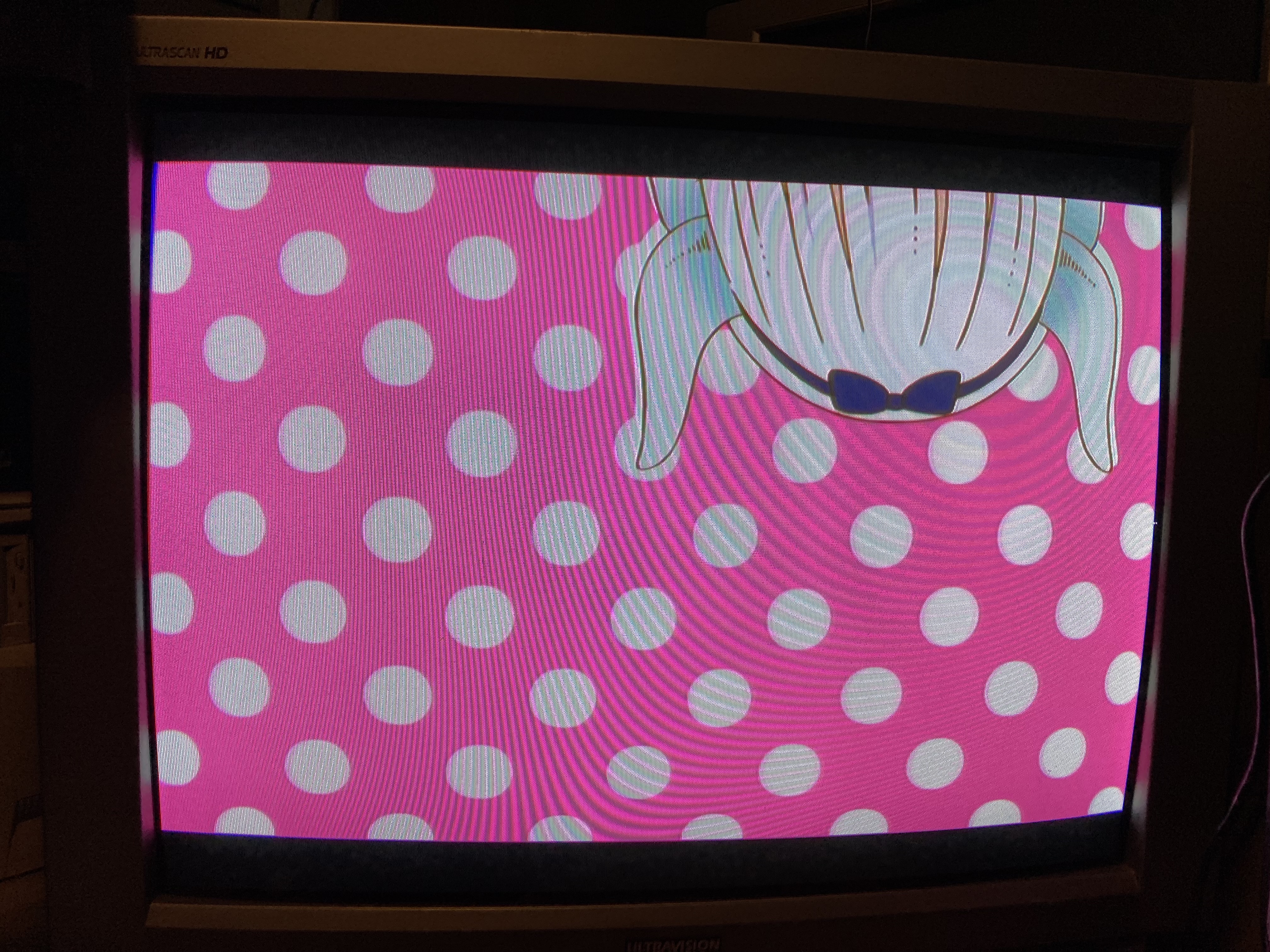 VGA is very clean with no processing. However, component has some "luma shadow" going on, implying that it may be processing the signal as 4:2:0 chroma subsampling, likely for DVD. Over component the raster is compressed to 16:9, and it appears noticeably brighter than in 4:3.