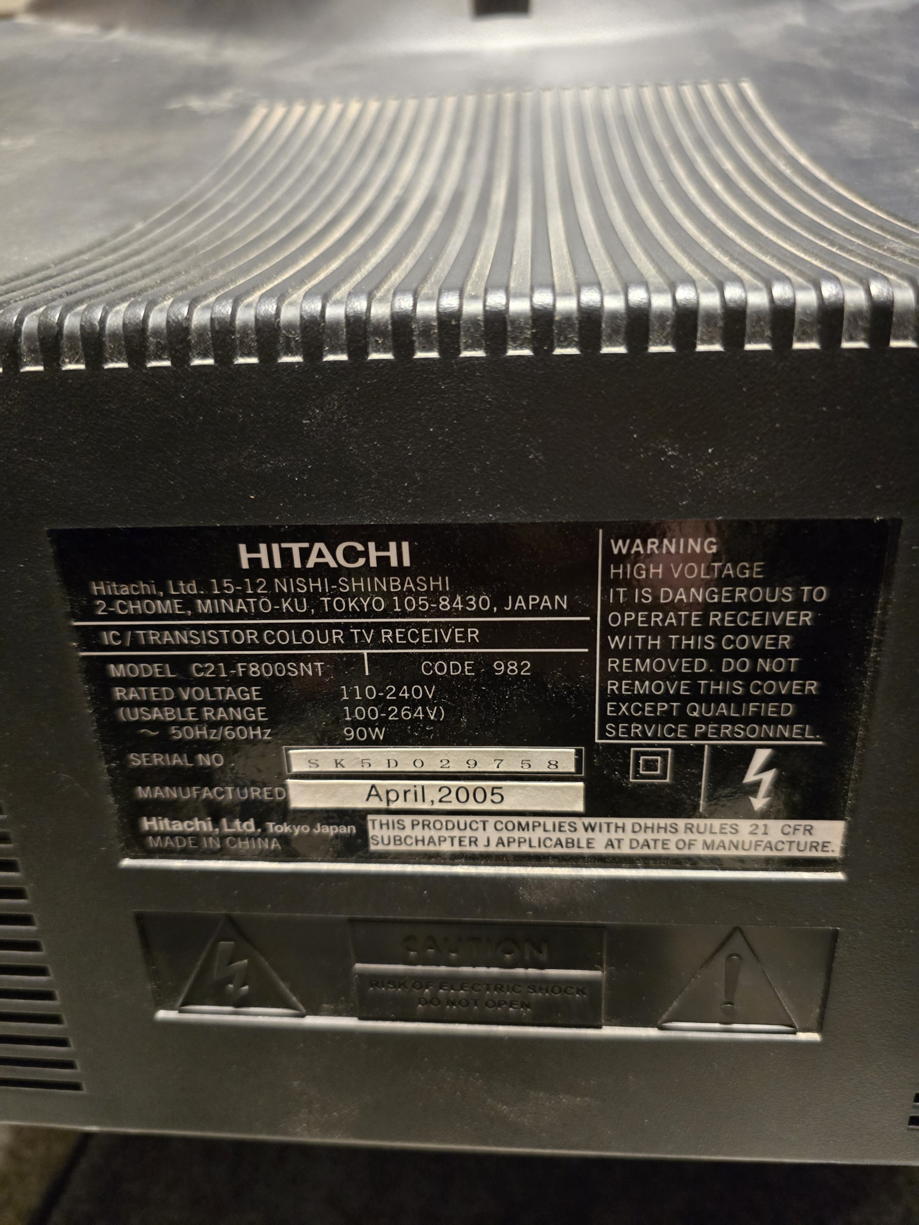 20" Multisystem CRT by Hitachi, sold in Asia in 2005. Originally made by Skyworth in China.