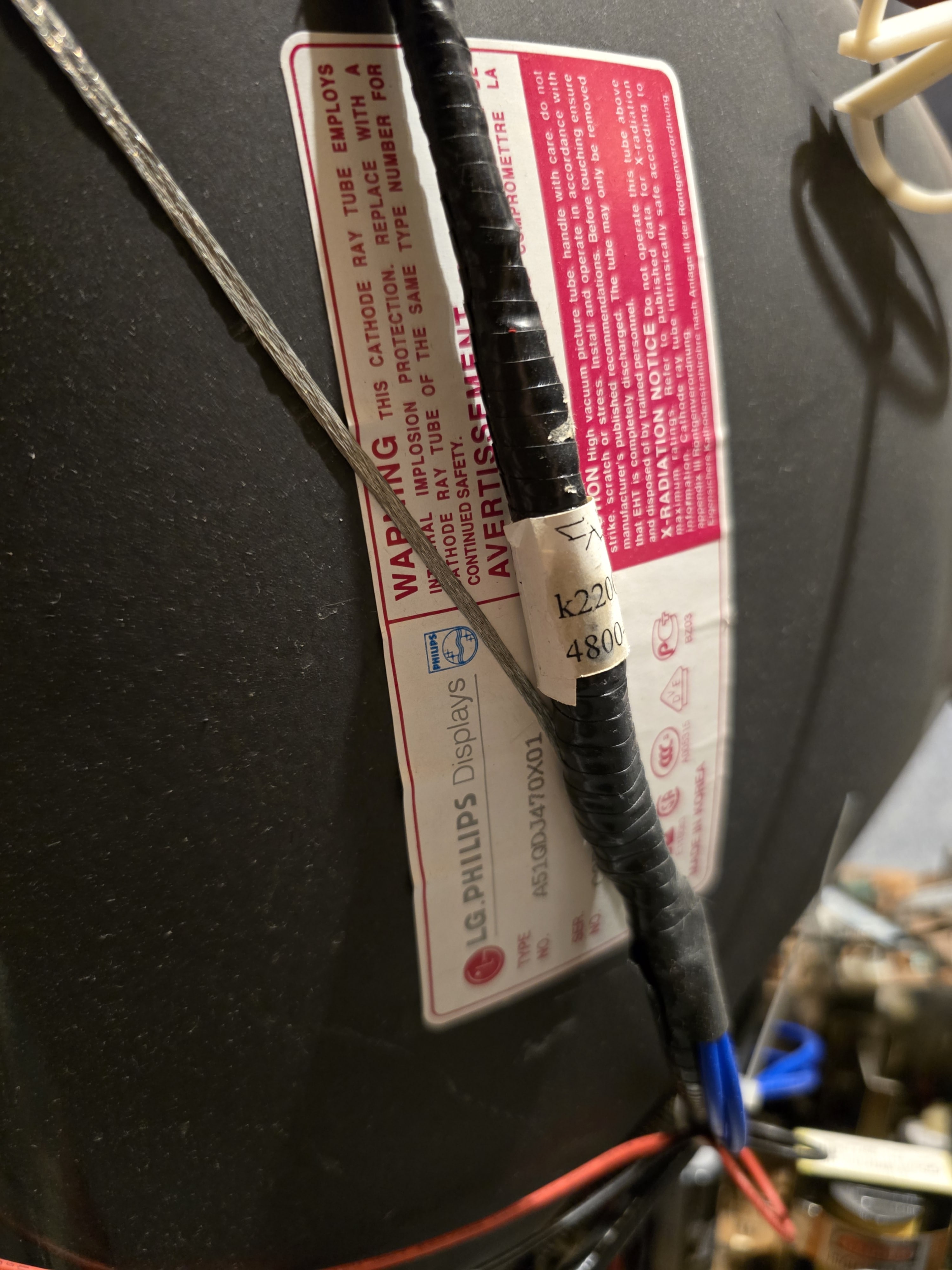 Picture tube is an LG-Philips model made in Korea. The dot pitch is slightly finer compared to other 20" flat picture tubes of the time.