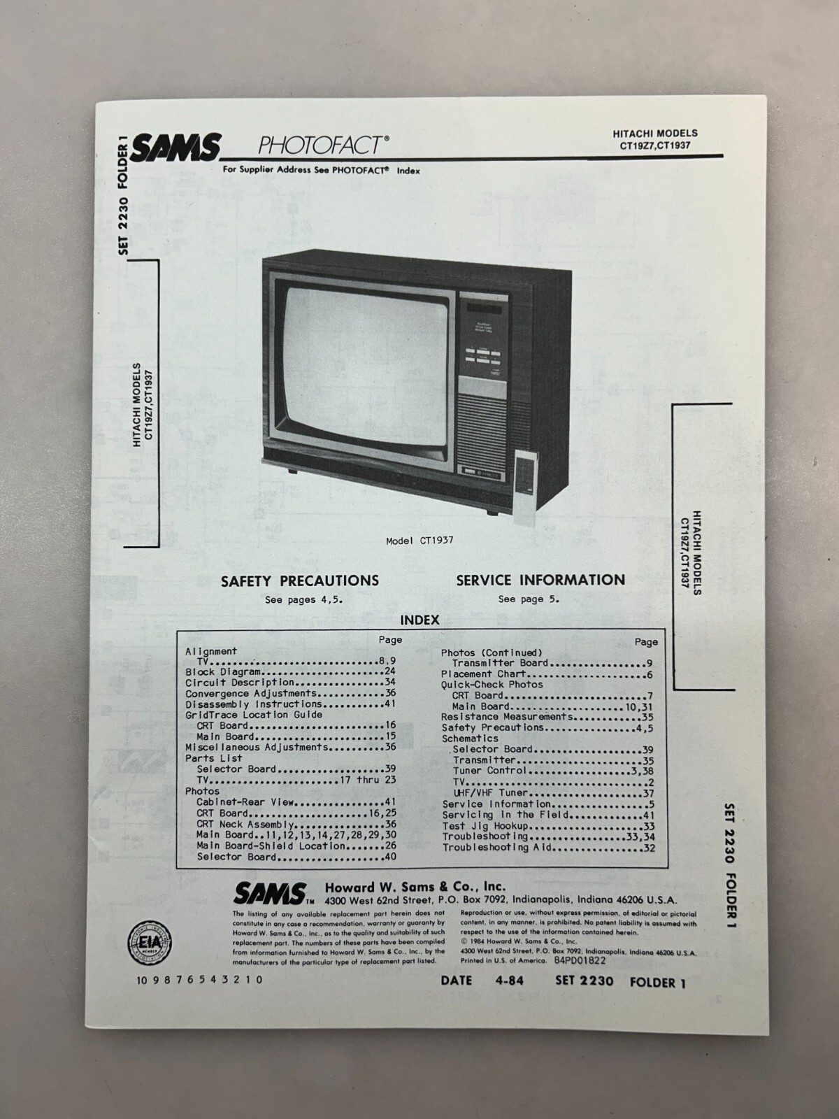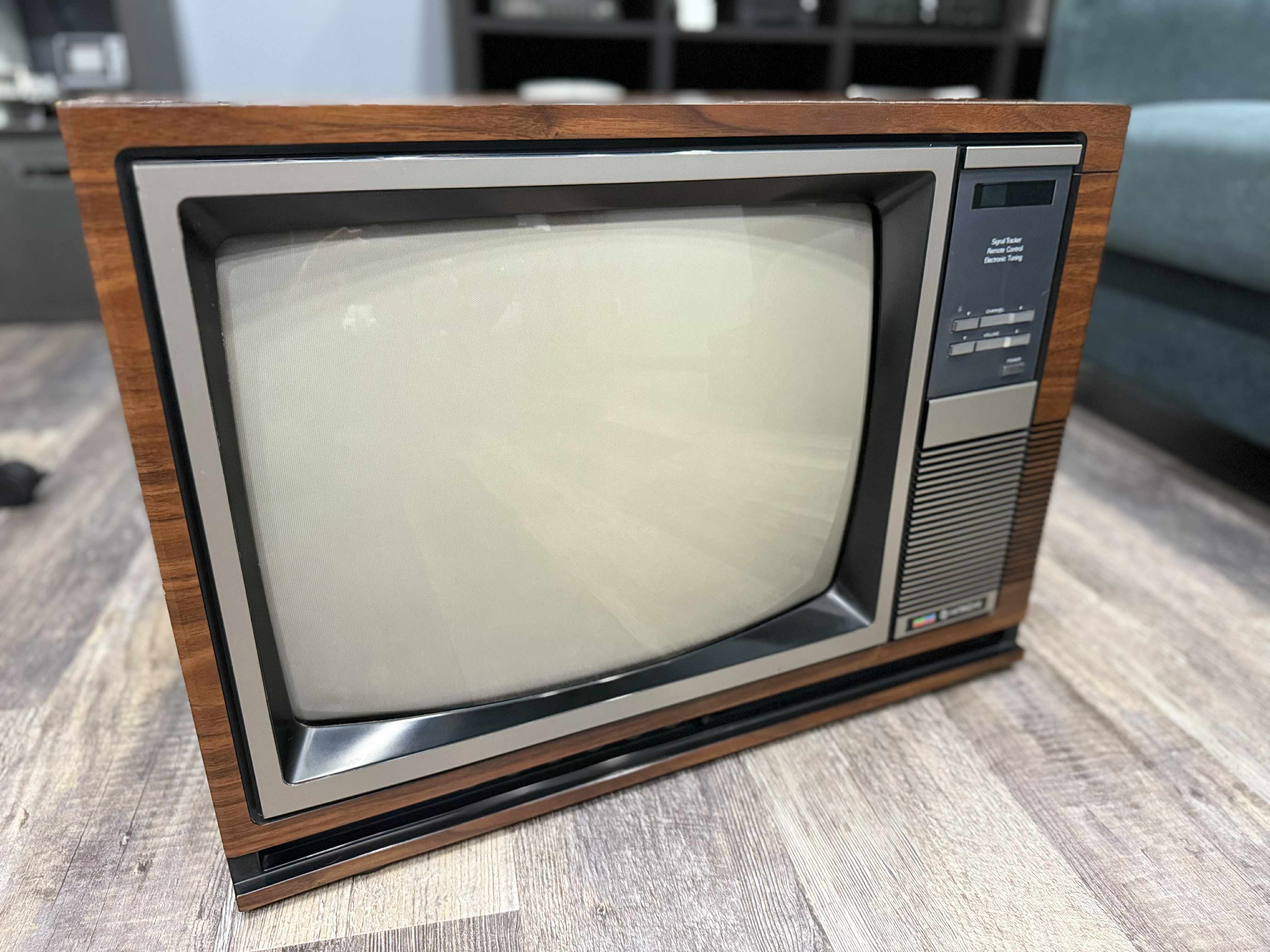 Basic, RF-only 19" CRT by Hitachi, made in the USA in 1983.