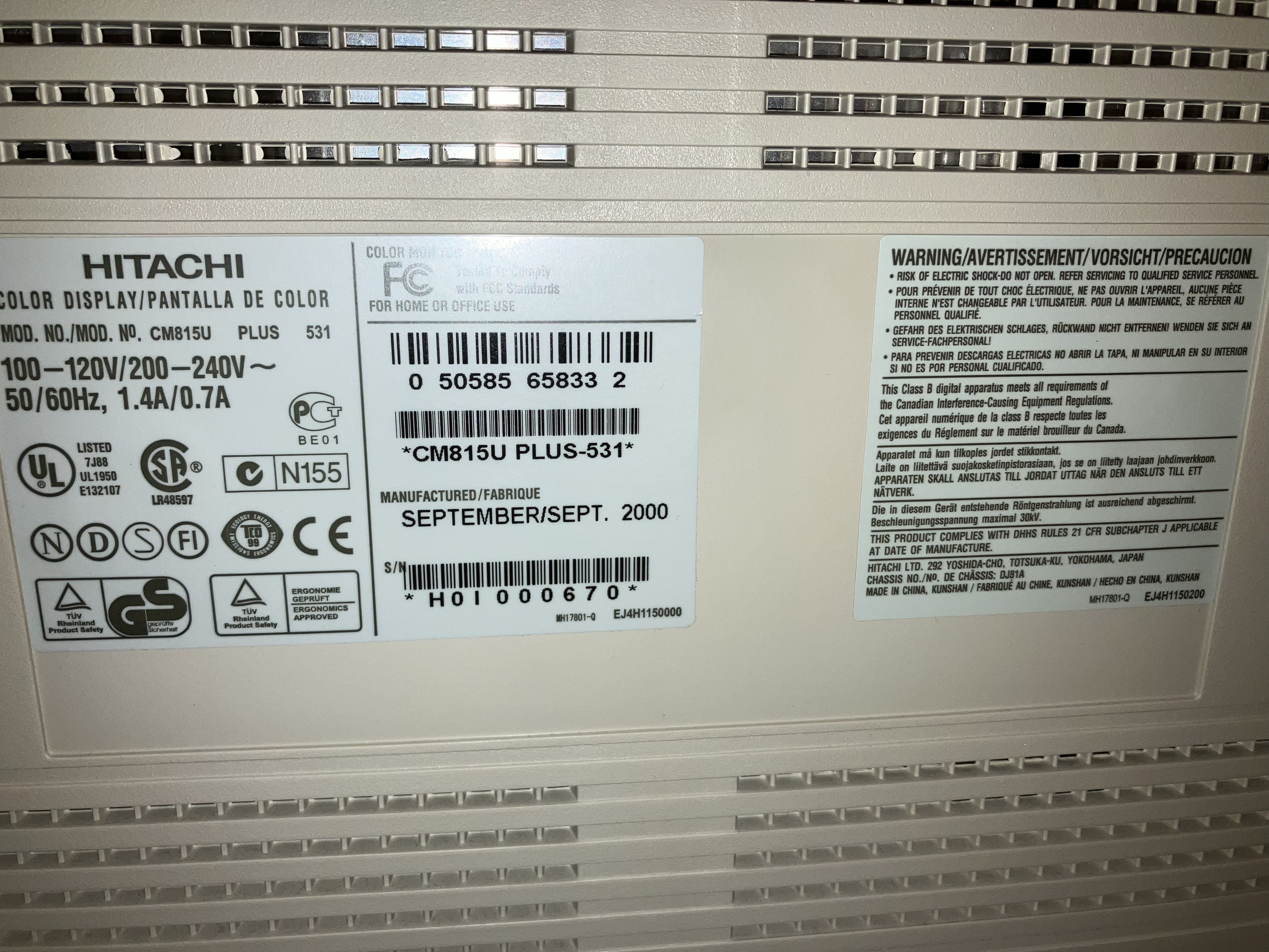 Highest performance dot mask 20" CRT from Hitachi. It can scan up to a blistering 130kHz horizontal. The only dot mask monitors I am aware of which can scan higher are the 'Procalix' (140kHz!), the Viewsonic 'XTREME' P817 (137kHz), and the Eizo F980 (137kHz).