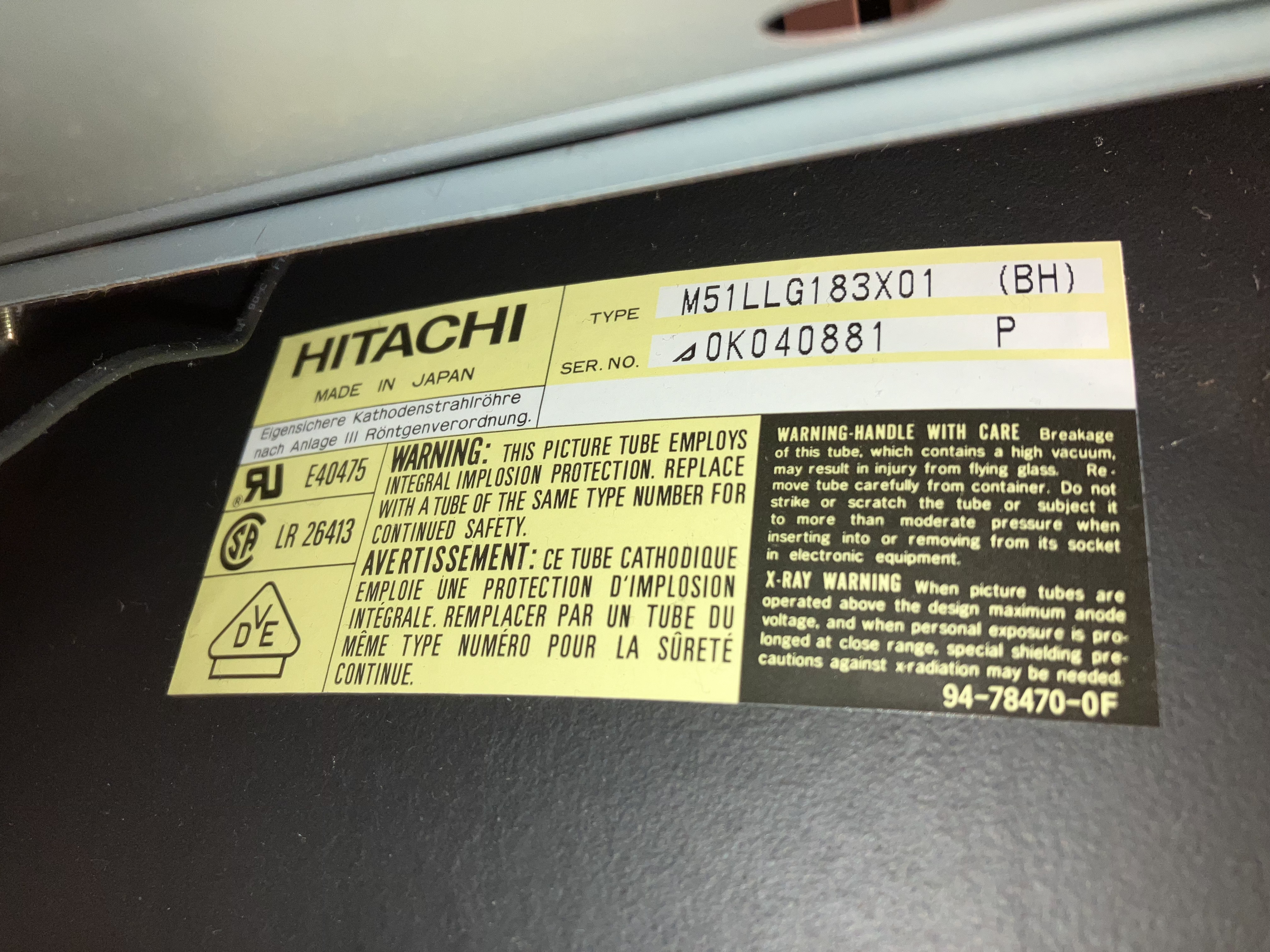| Tube: | Hitachi , M51LLG183X , M51LLG183X01 |