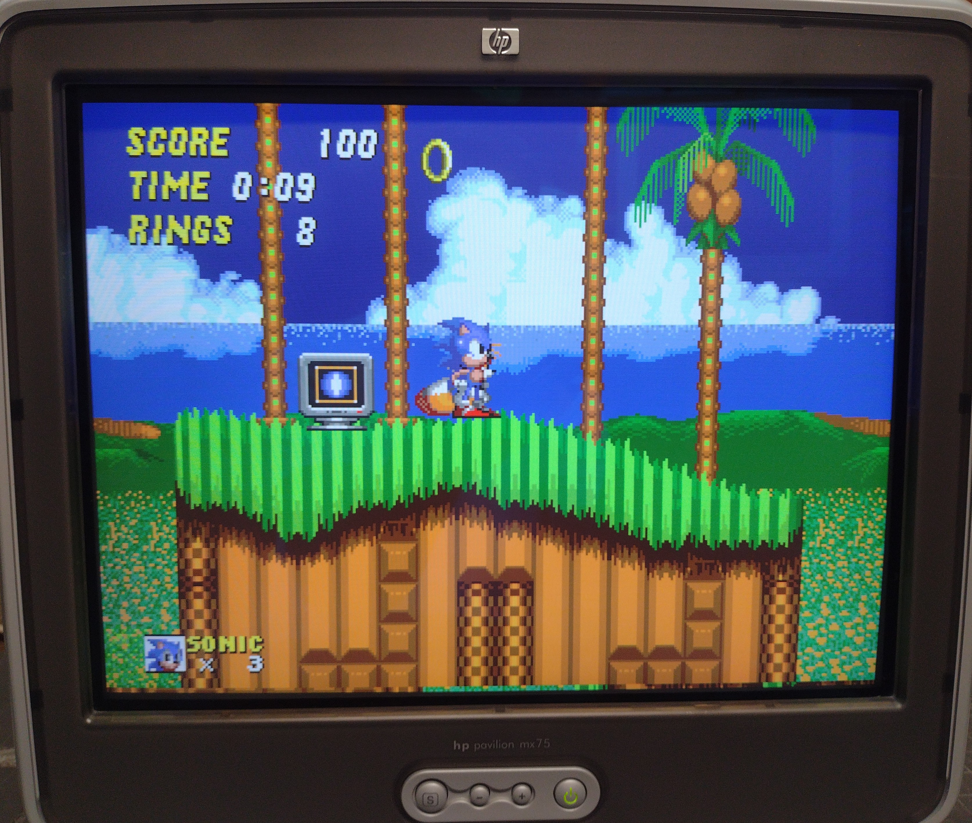 Sold as a "multimedia monitor", the HP MX75 has a built-in microphone at the top of the tube and attachment points for side-mounted speakers.