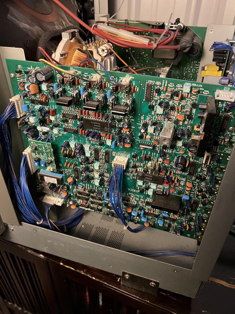 This CRT uses Microfilter, a technology innovation by Toshiba that aimed to optimize both brightness and contrast without darkening the glass with tint.