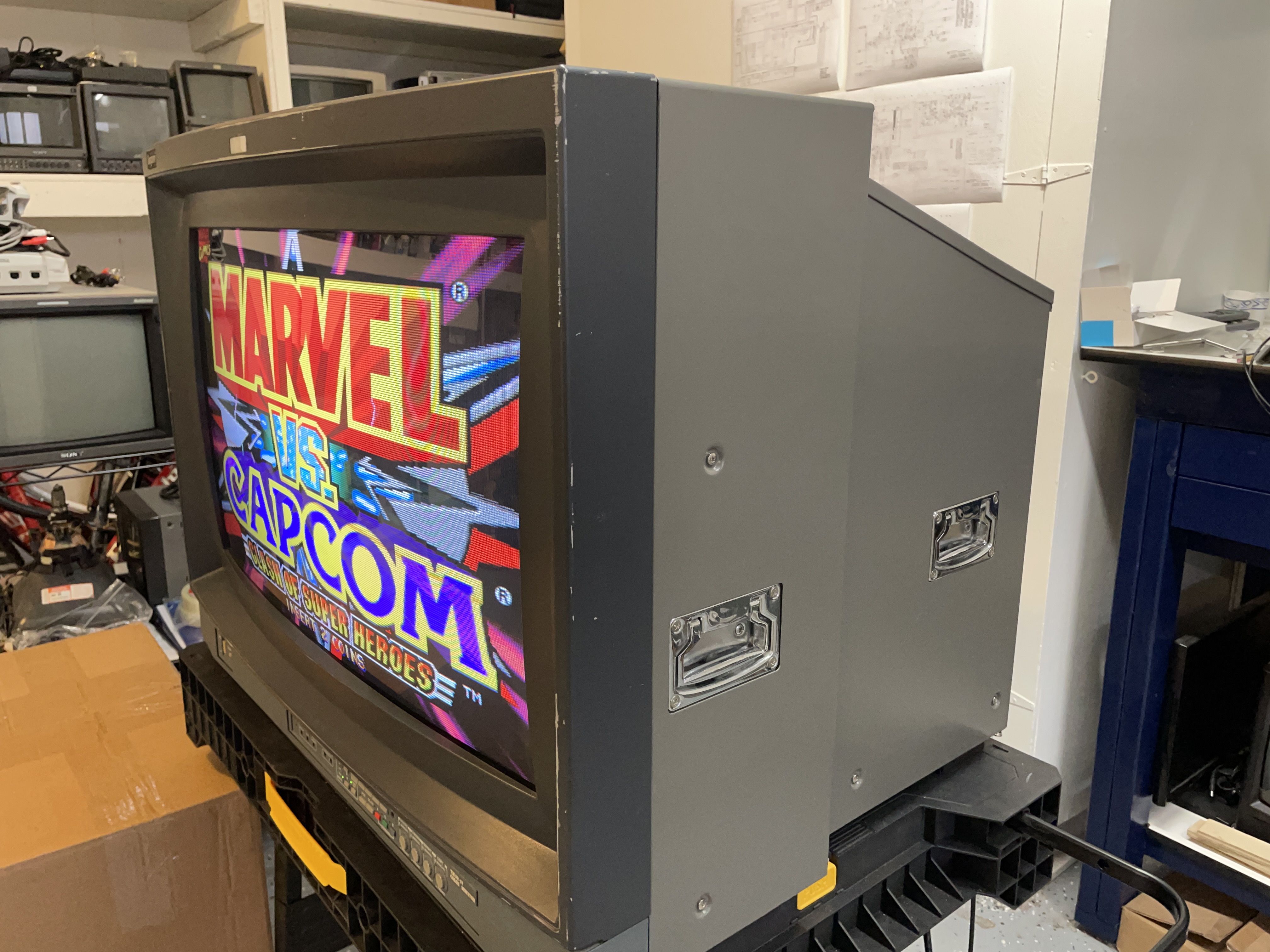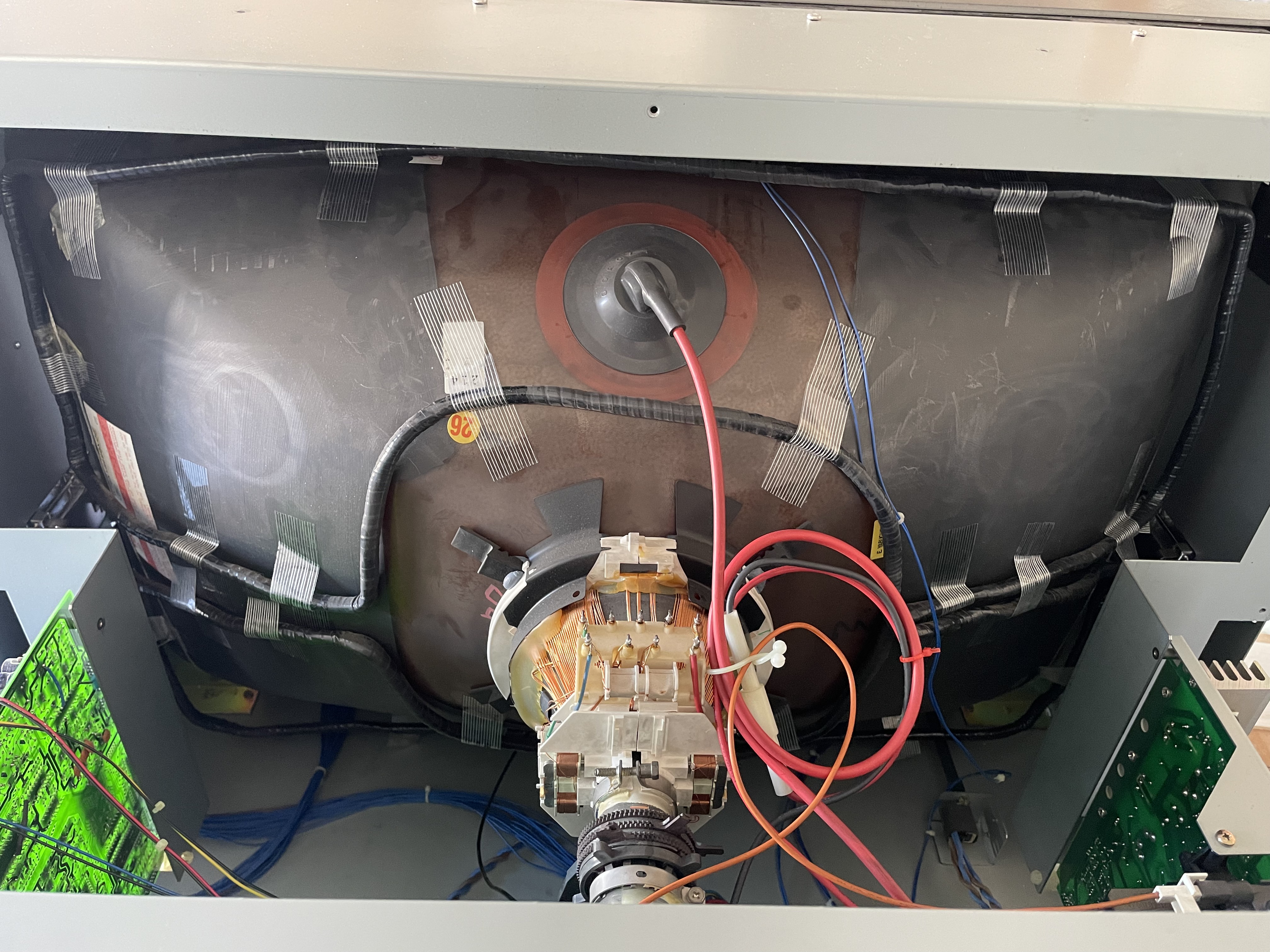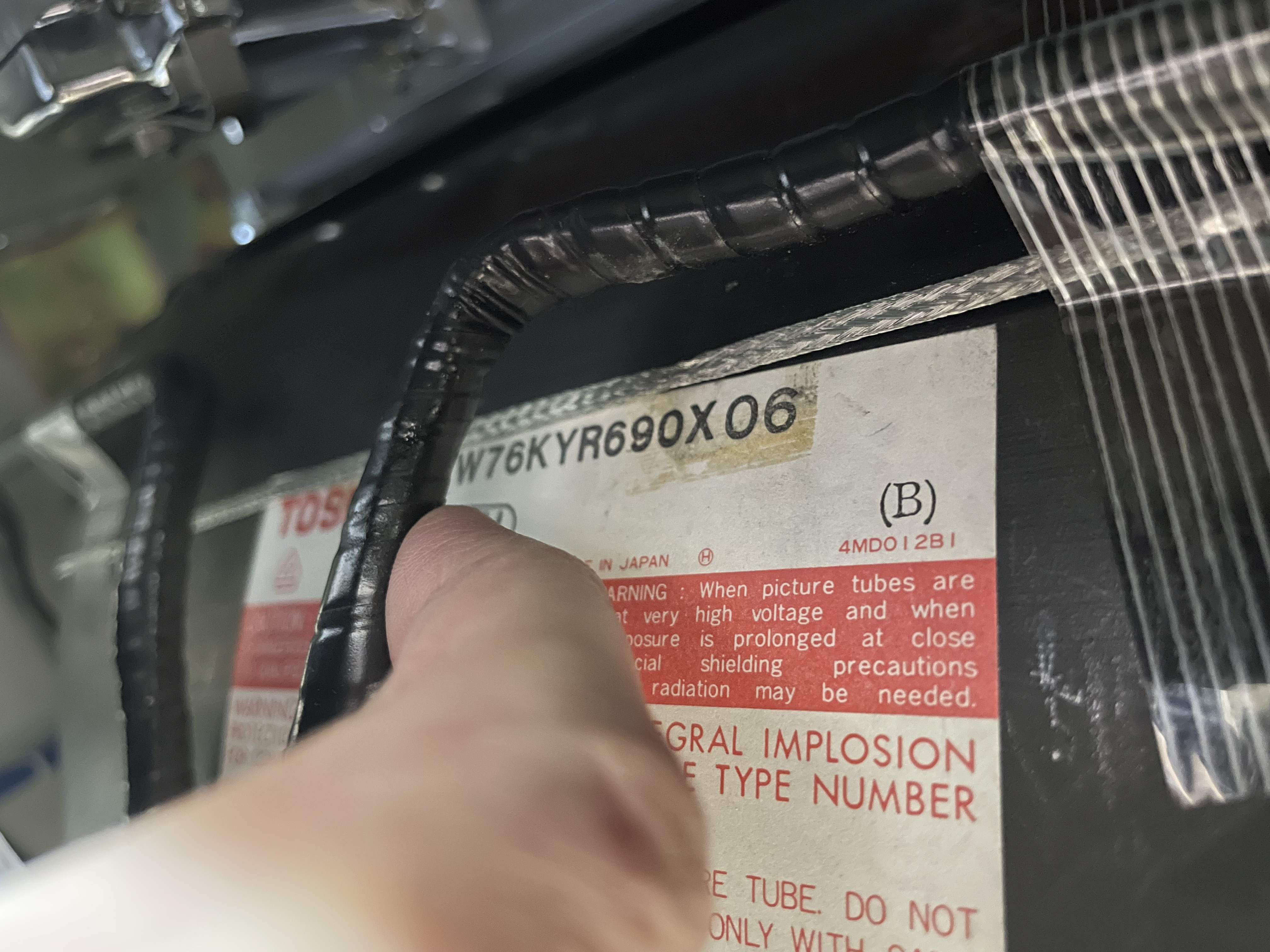 This CRT uses Microfilter, a technology innovation by Toshiba that aimed to optimize both brightness and contrast without darkening the glass with tint.