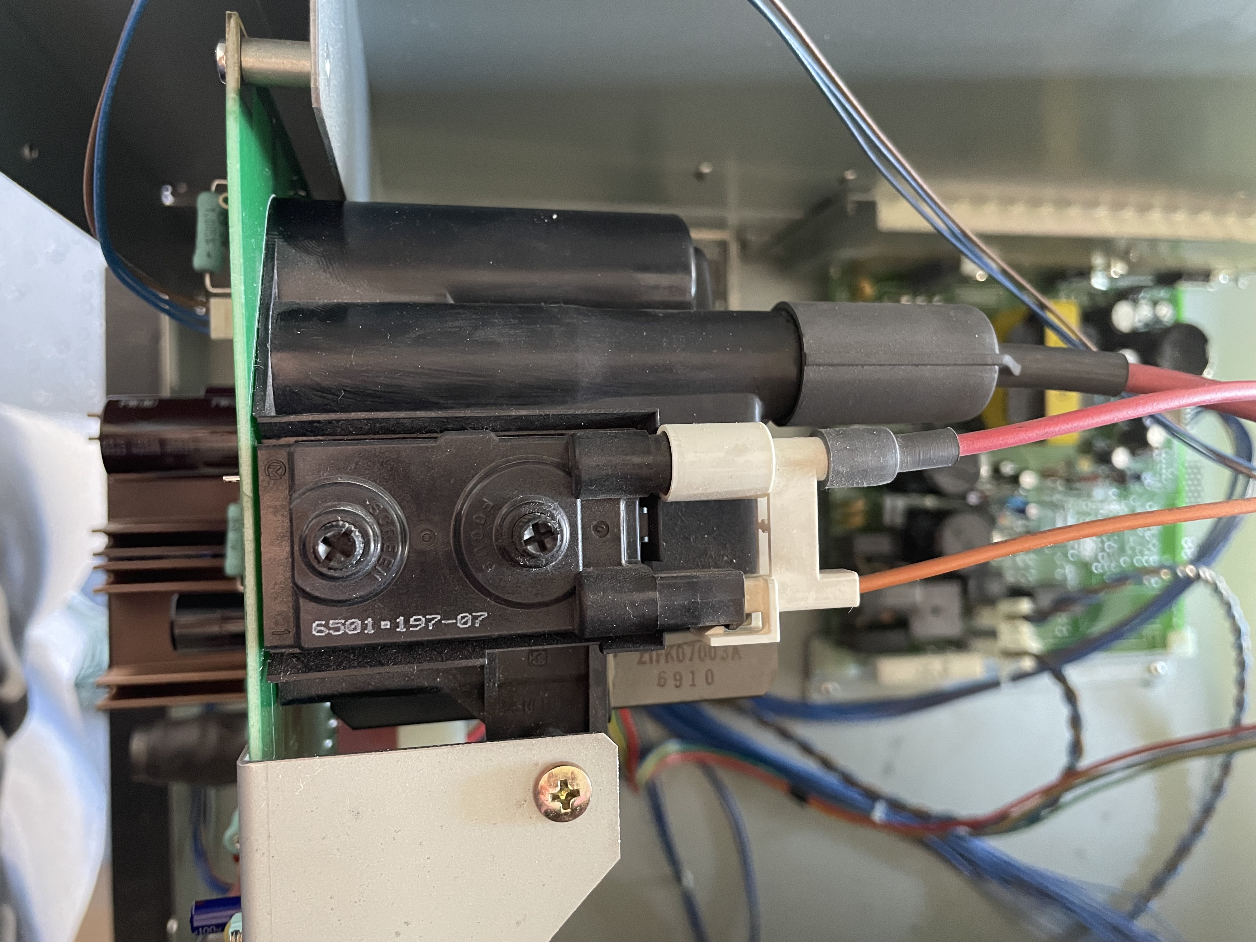 Also the power board is pushed to the limits of the design: if the image is set too wide is very simple to make the power regulation unstable and trip the overcurrent protection when the brightness or raster size changes slightly.