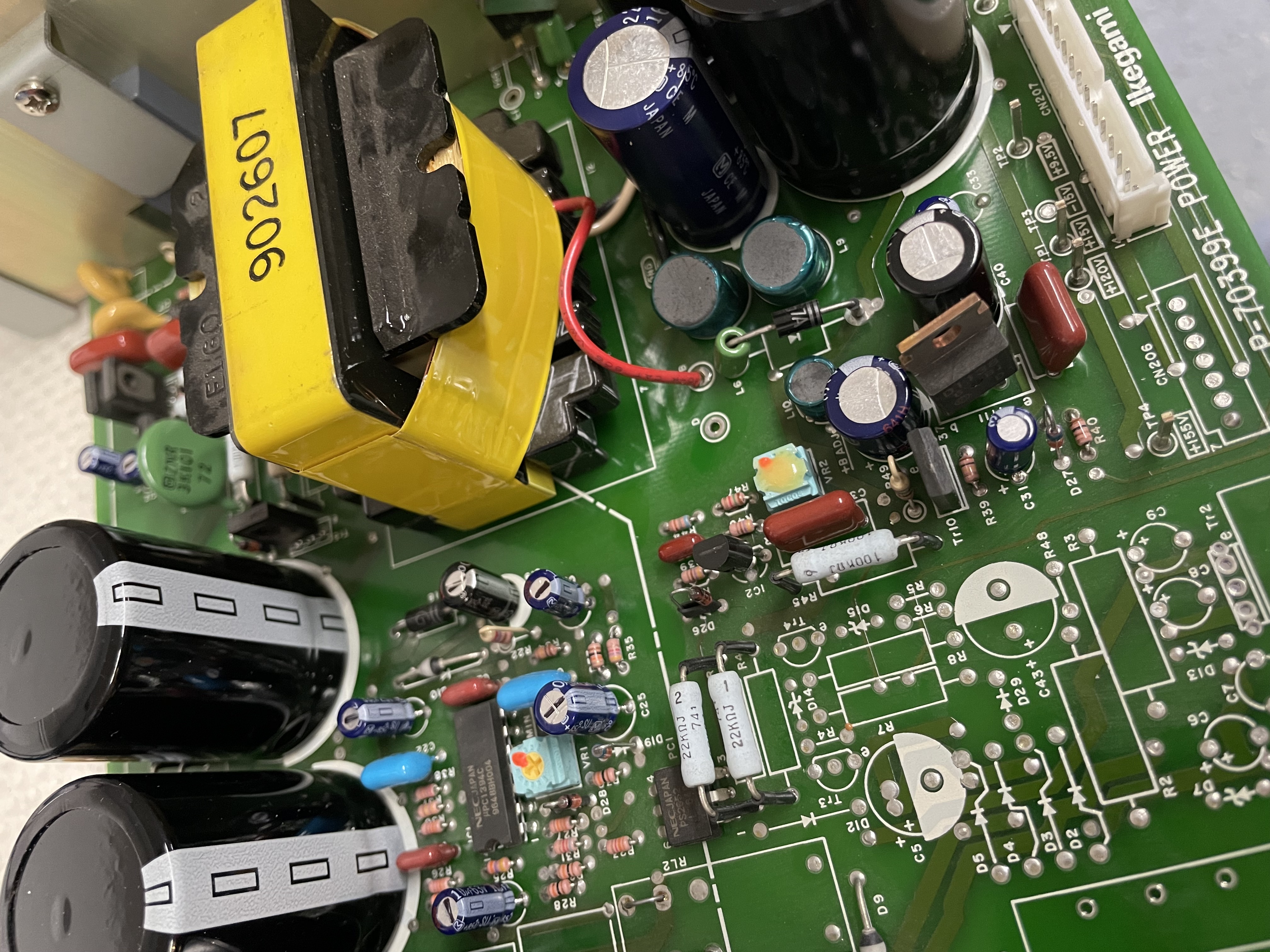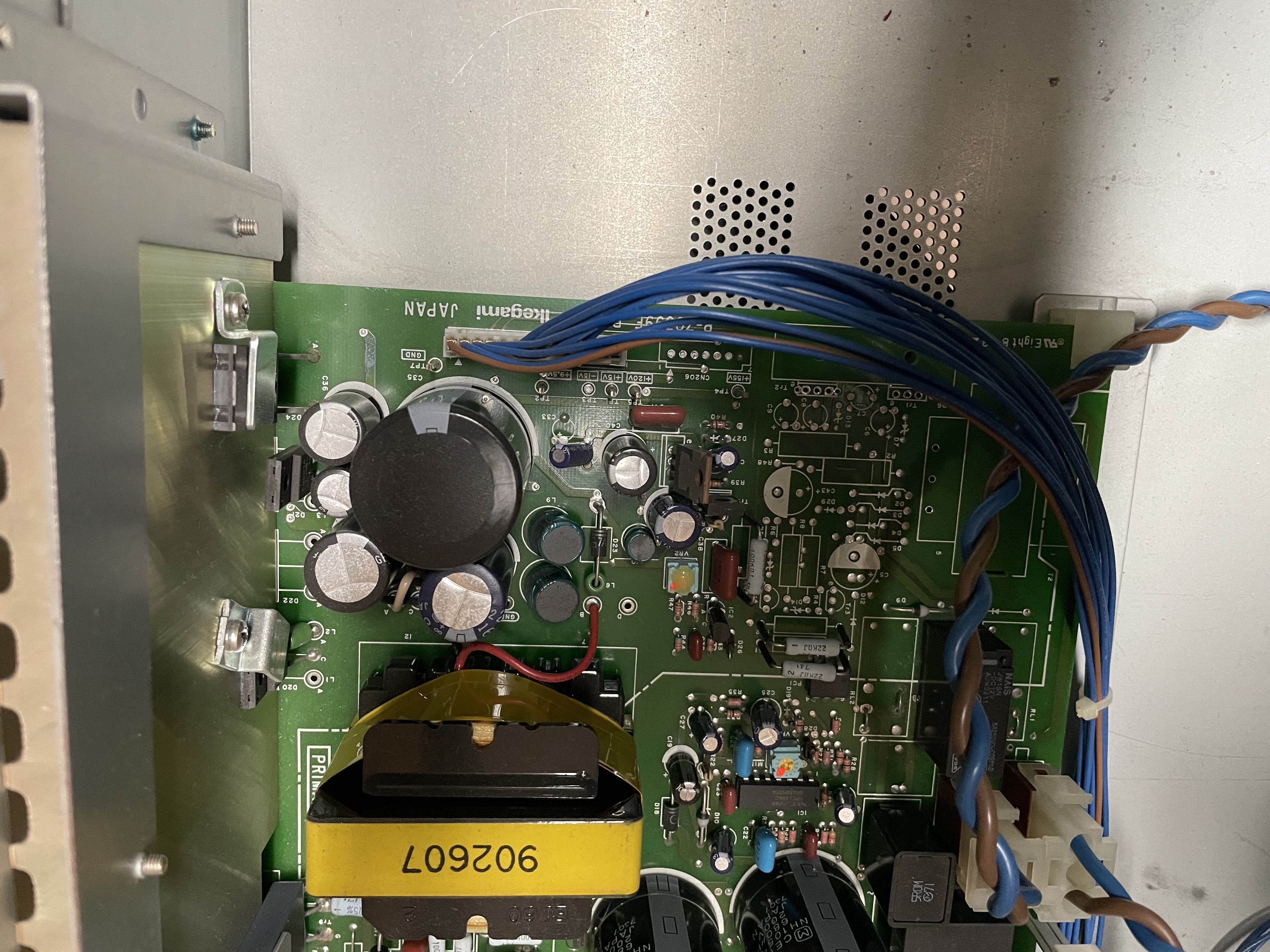 The fact that the power board was manually modified from another model is an indication that the production volumes of this monitor were very low.