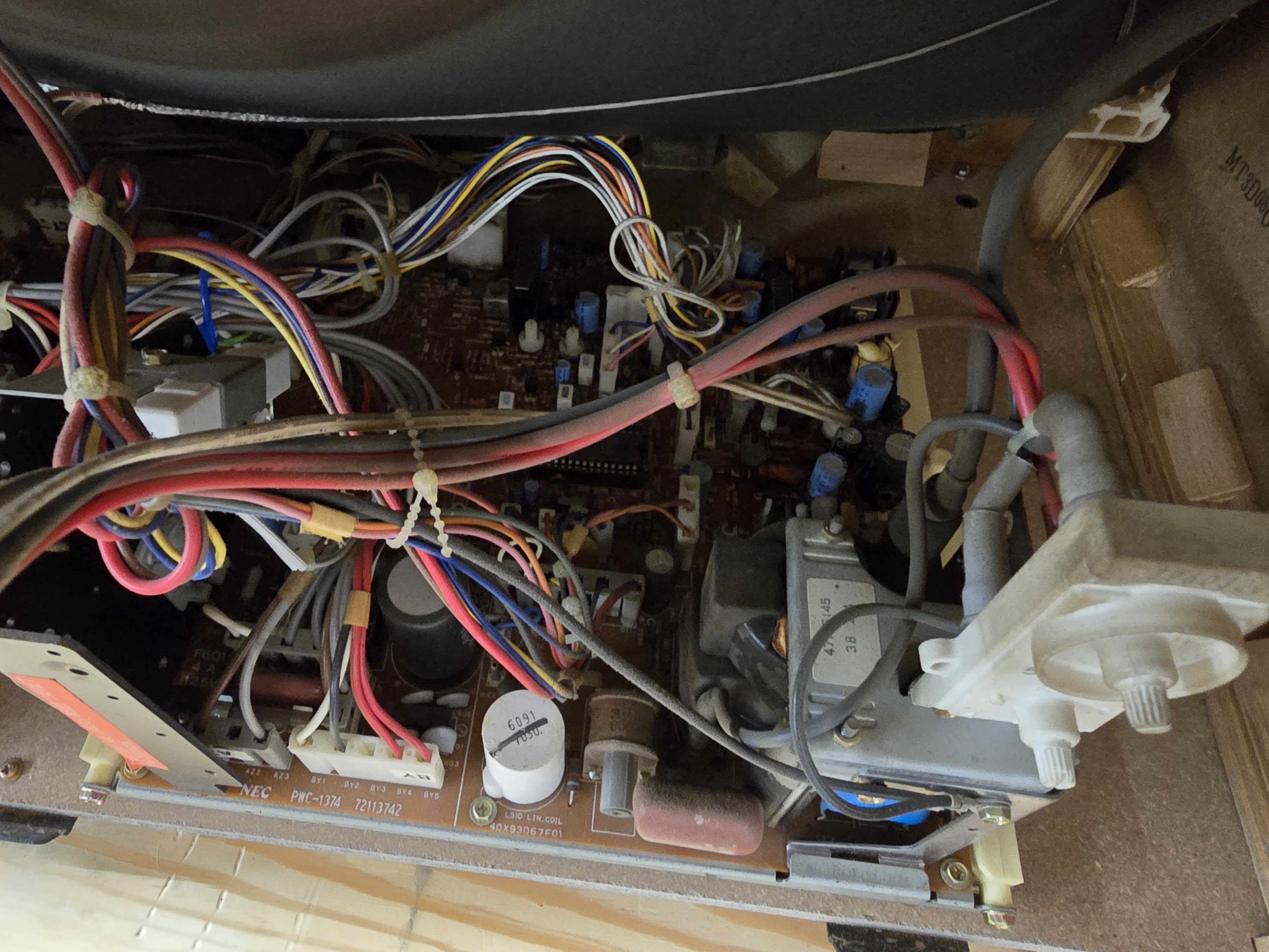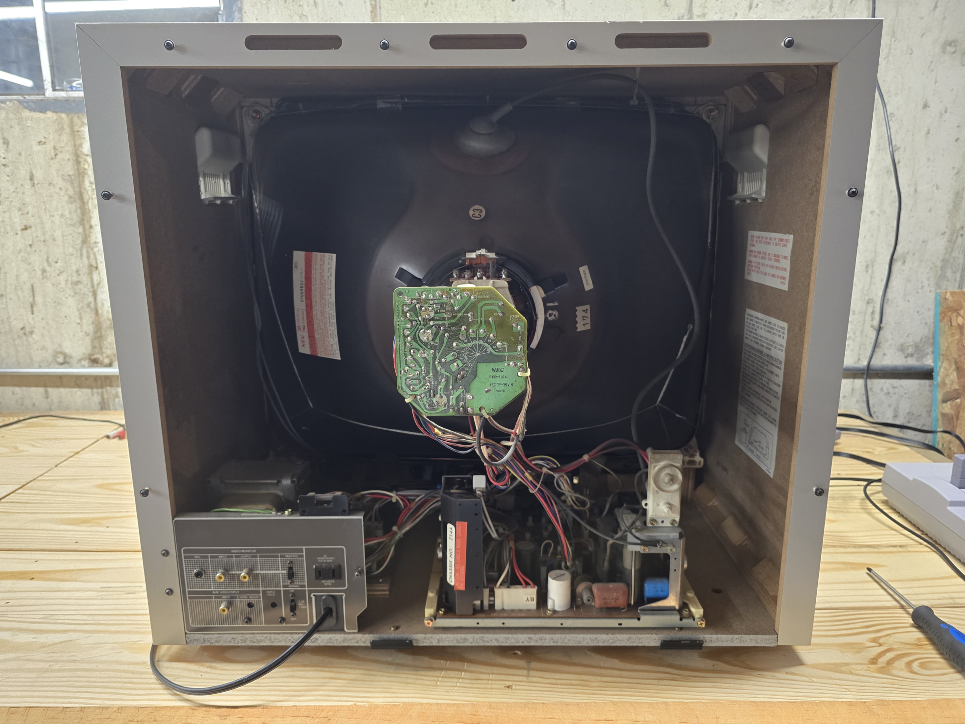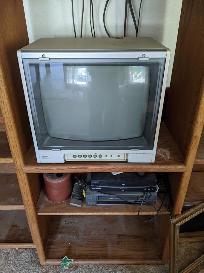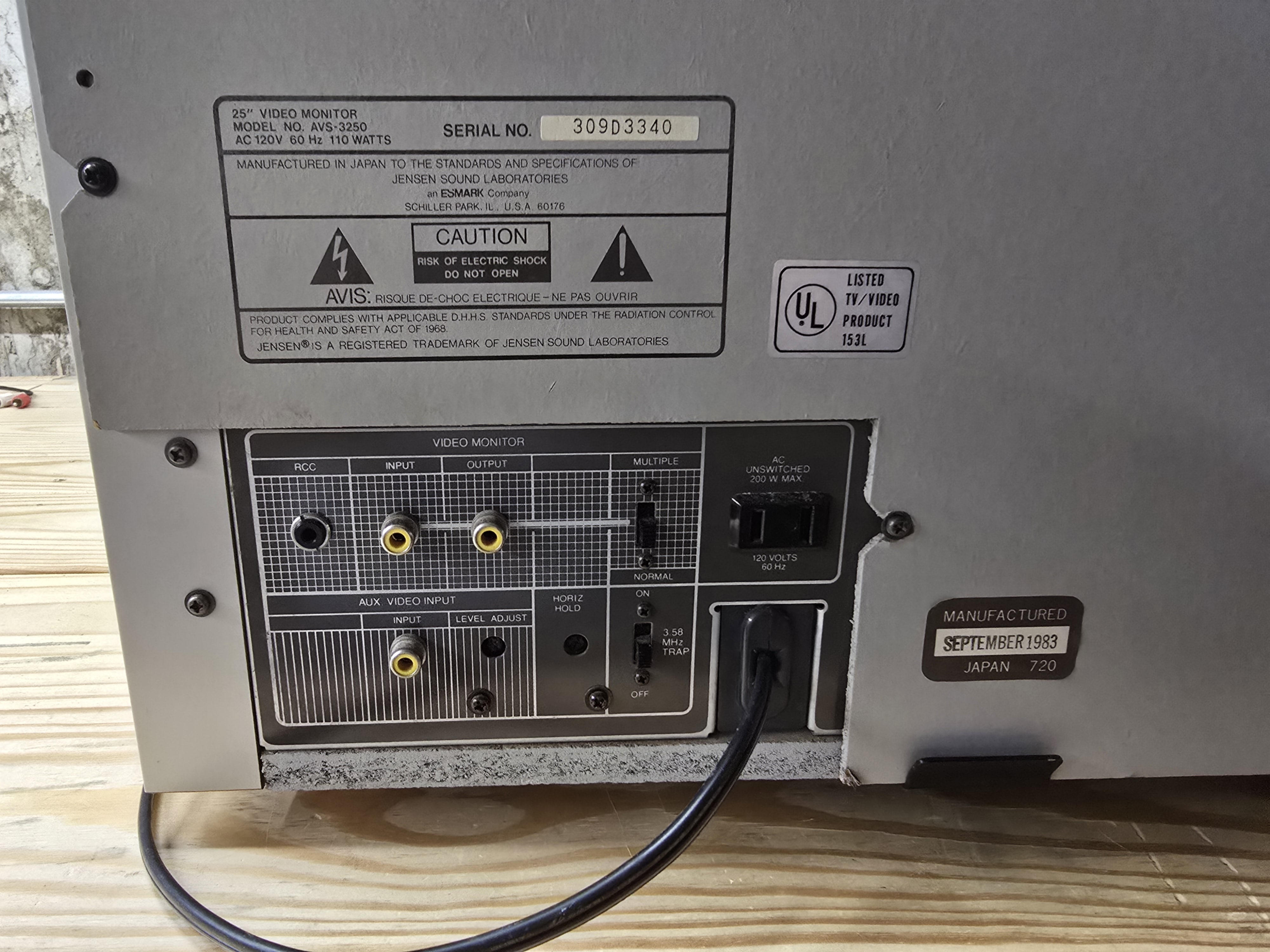 High-end 25" color TV-monitor by Jensen, originally manufactured by NEC in Japan. Has composite video input and output. Intended for use with other Jensen-branded equipment such as a VCR, broadcast TV decoder, AV receiver and speakers.