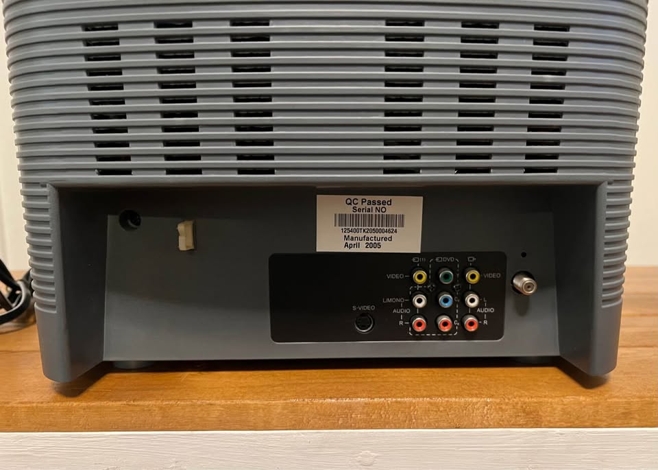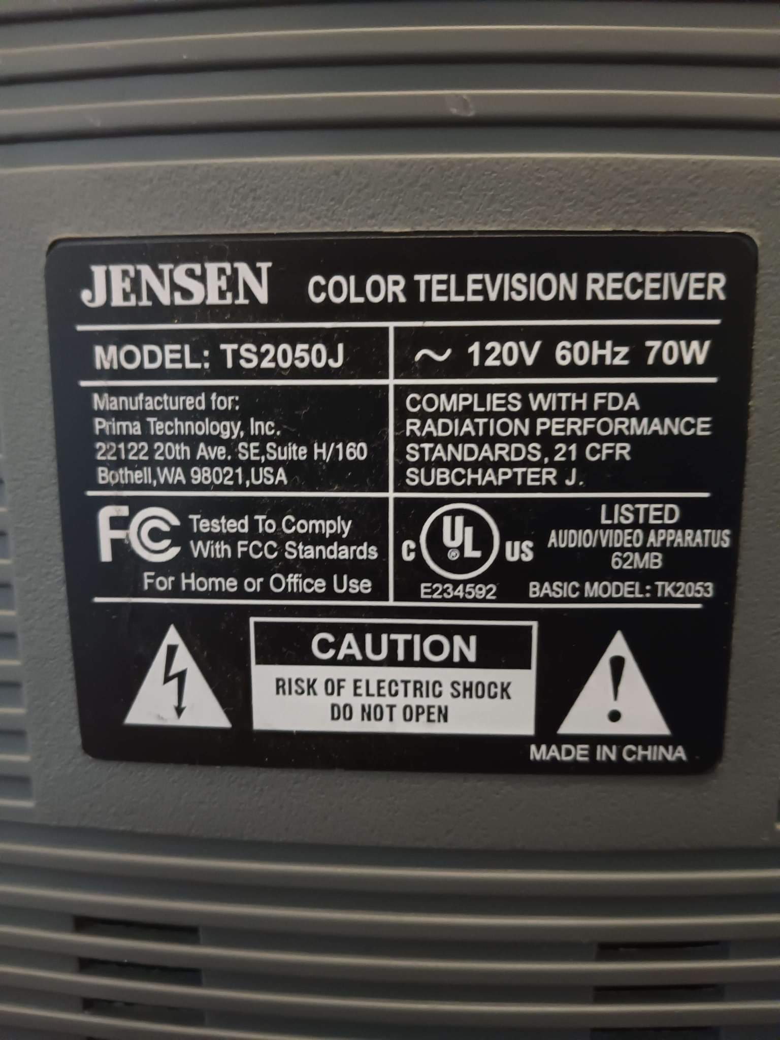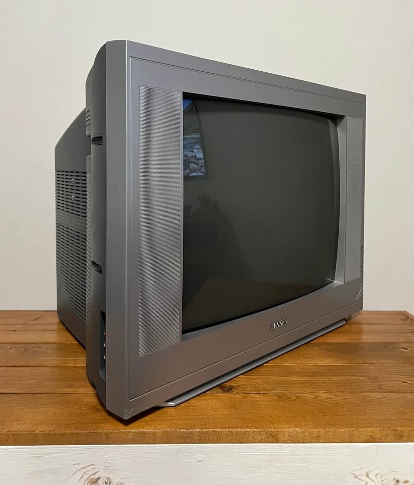 20" curved screen CRT by Jensen. Has a full set of inputs, a rare combination for a set of it's design. Made by Prima in China in 2005.