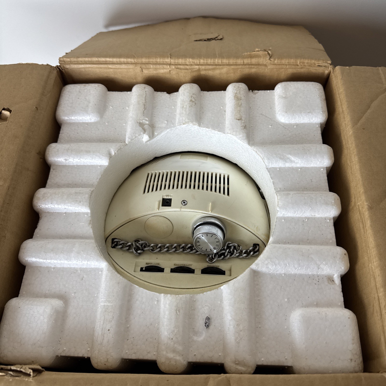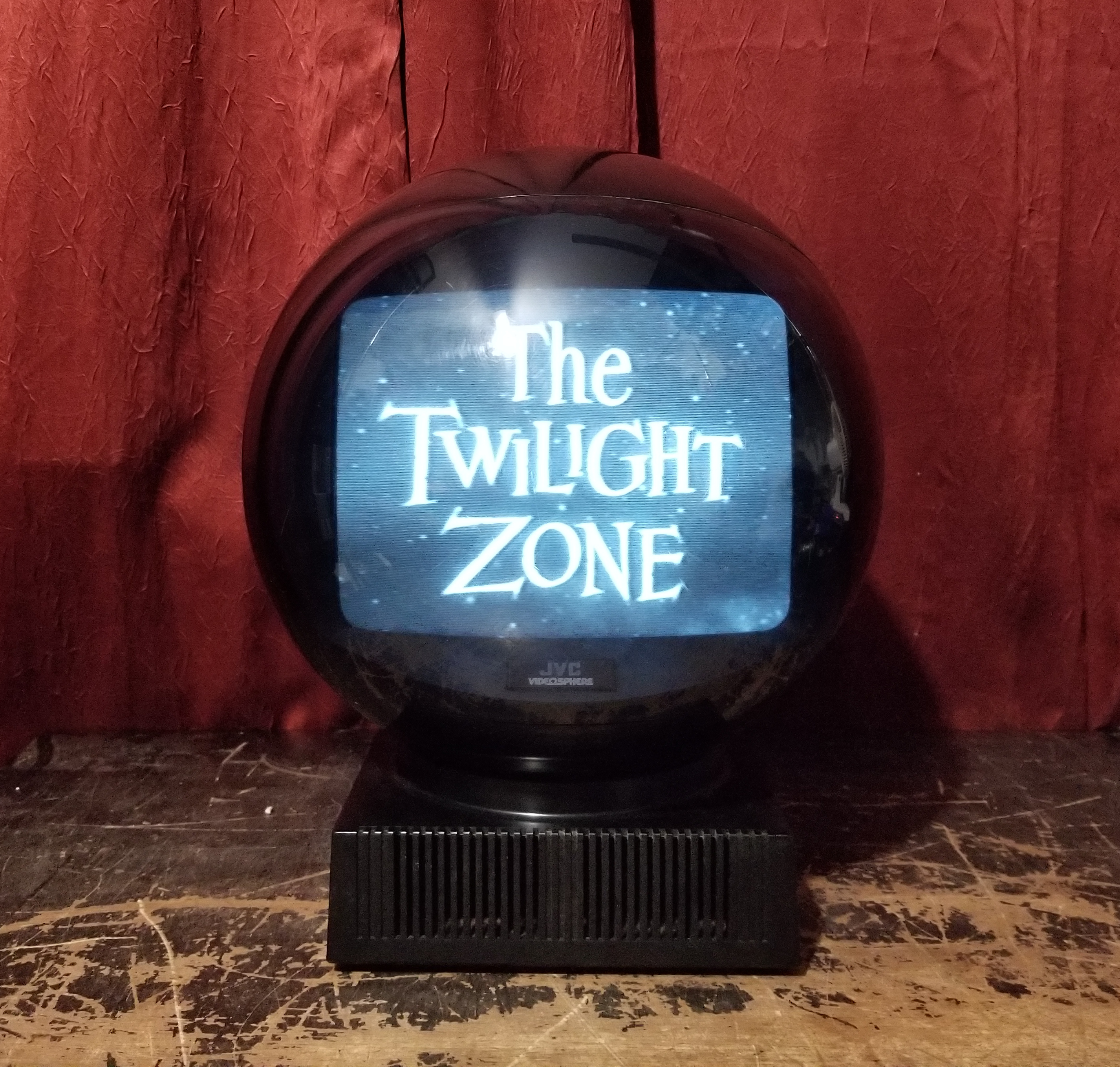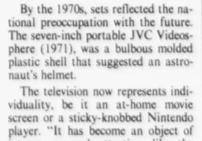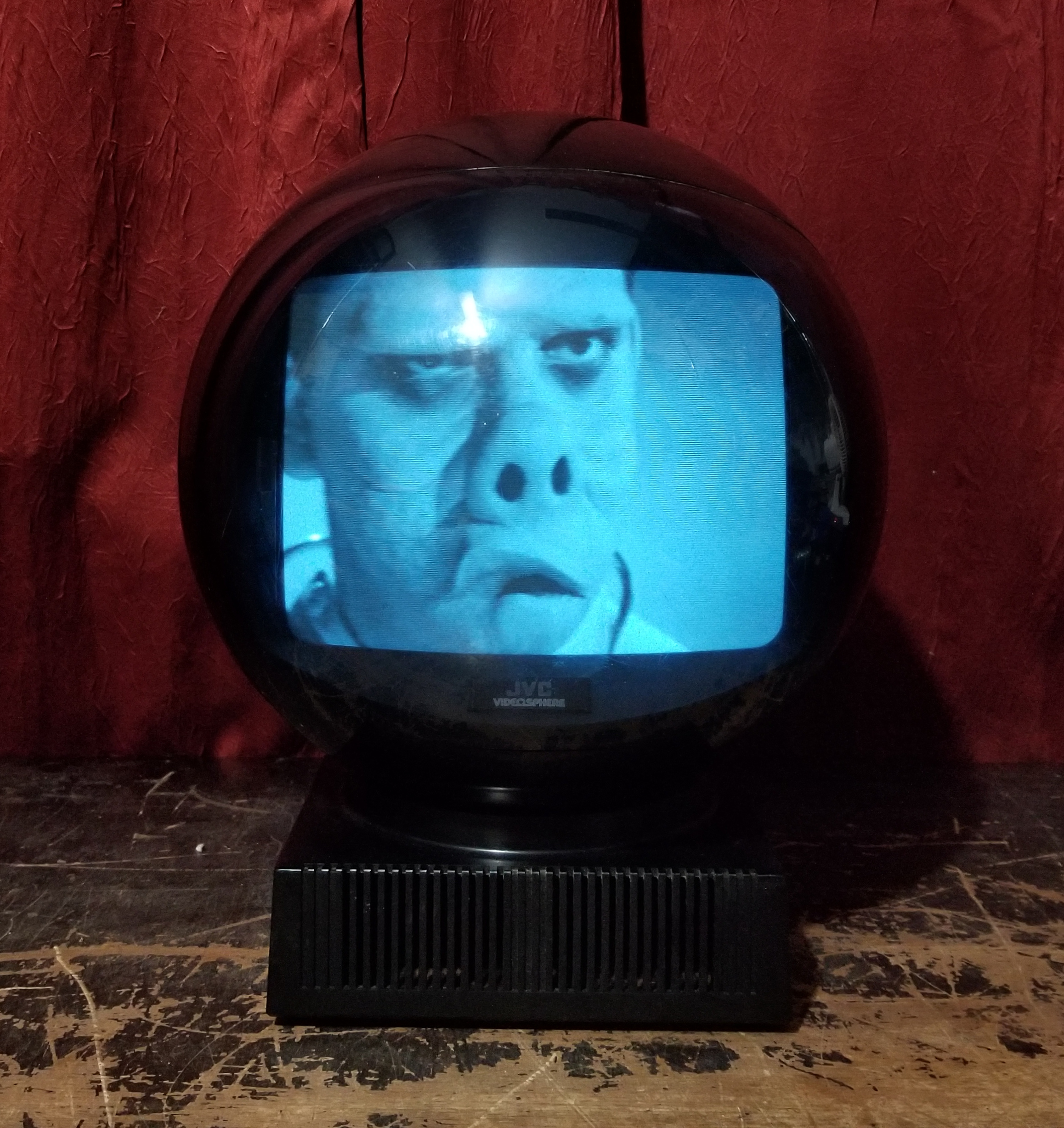 Meet JVC's Videosphere. A ball to watch. The personal, portable TV that goes anywhere. Swivels and tilts on its own base...or hangs like a mobile from its carrying chain to give you the best viewing angle from any position. Big 38 square inch (9-inch diagonal) glare-free screen for personal or group viewing. Sharp black and white 83-channel reception.