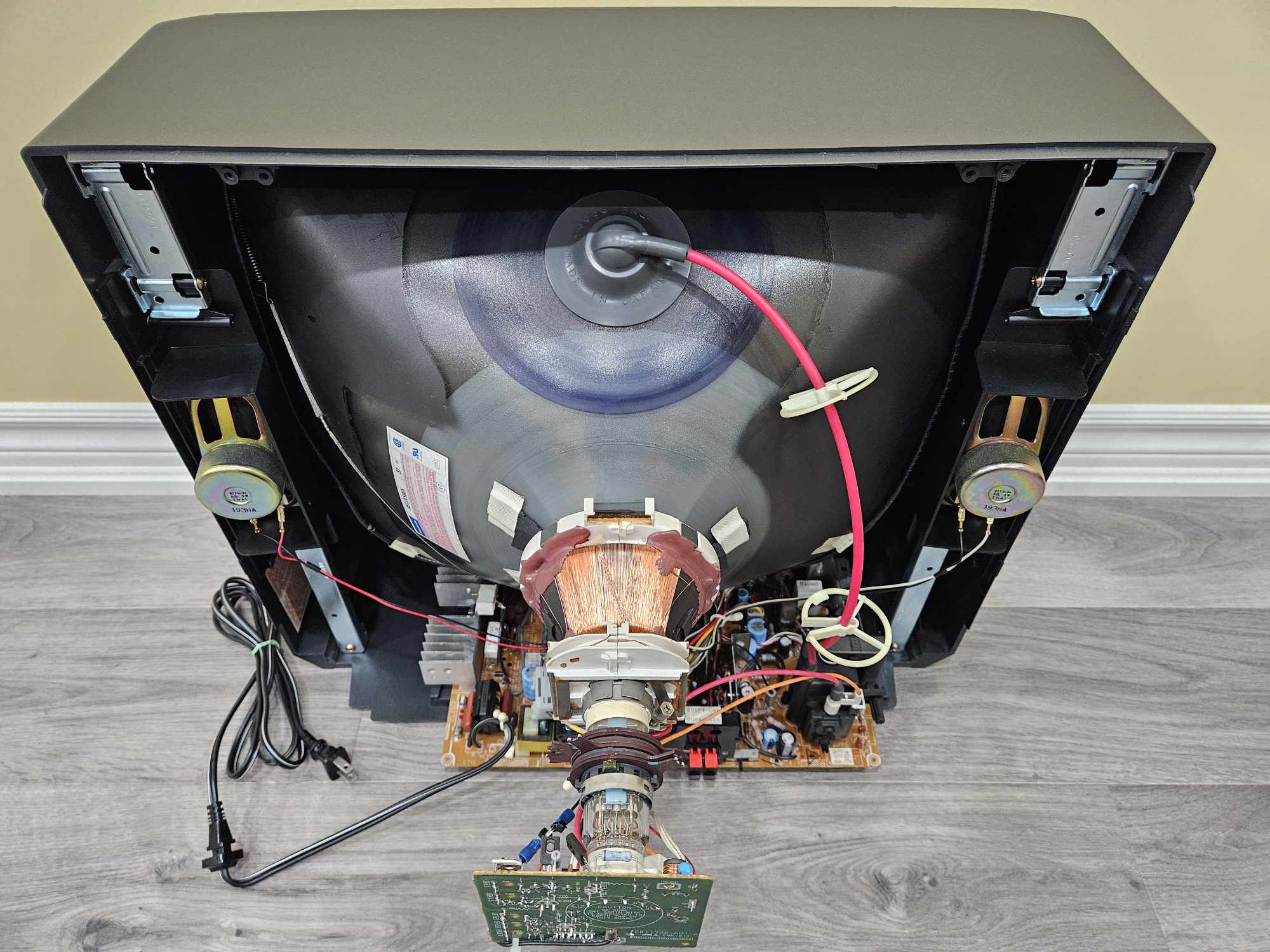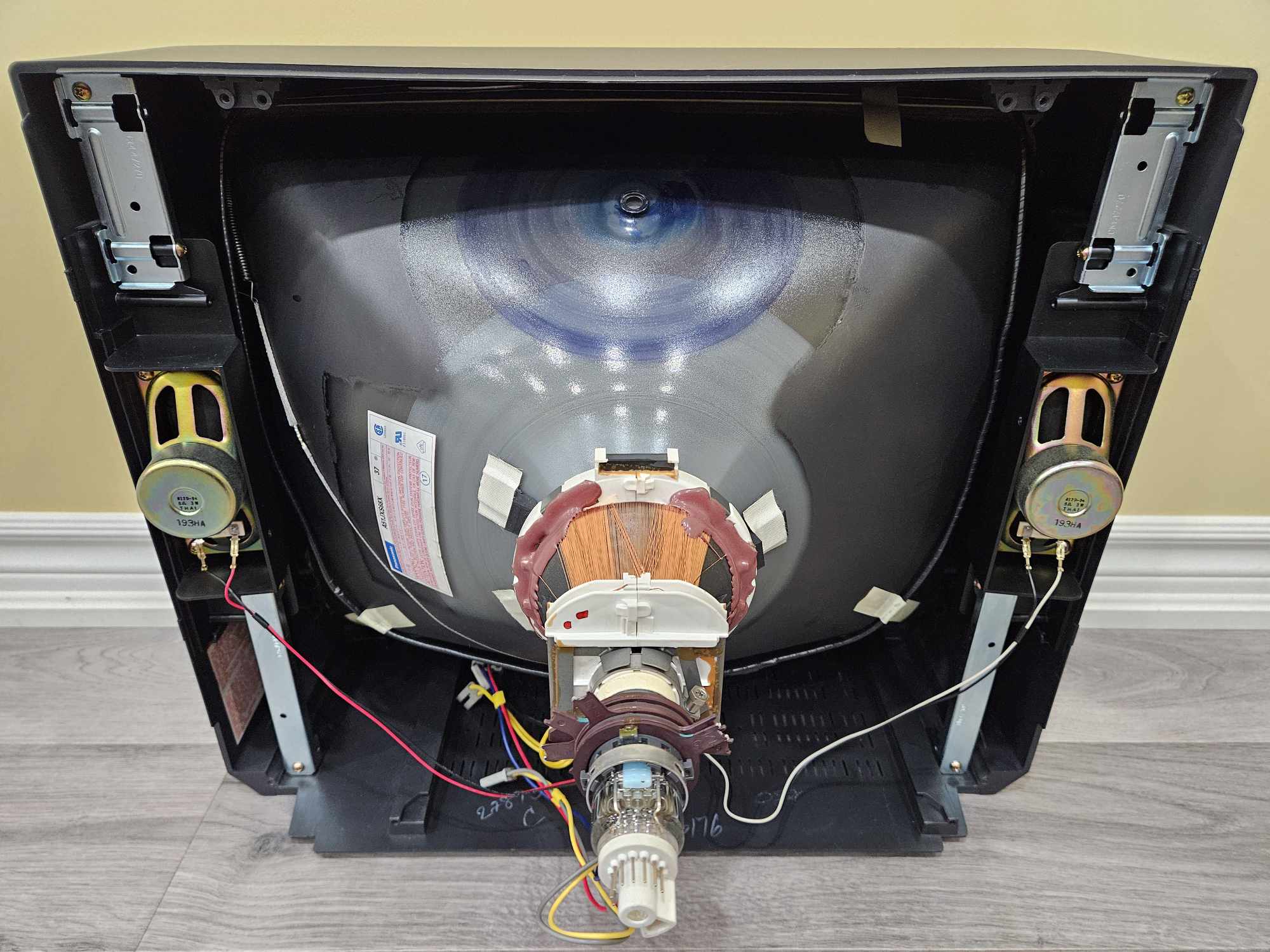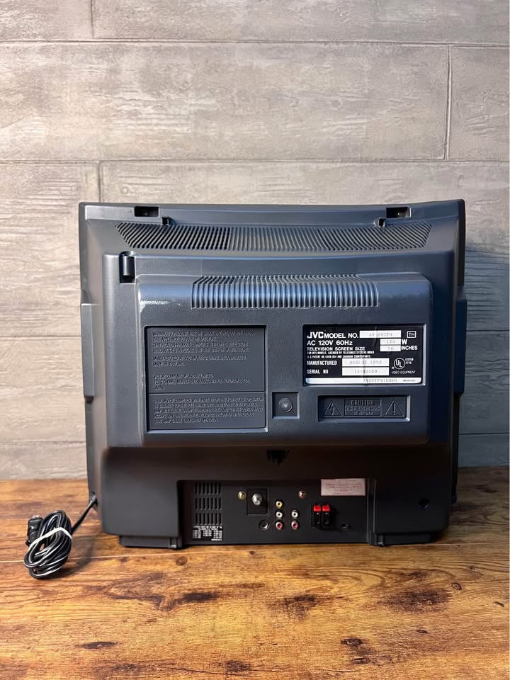 20" JVC with composite and s-video inputs, as well as amped stereo audio output. Originally manufactured in Thailand and released in 1993.