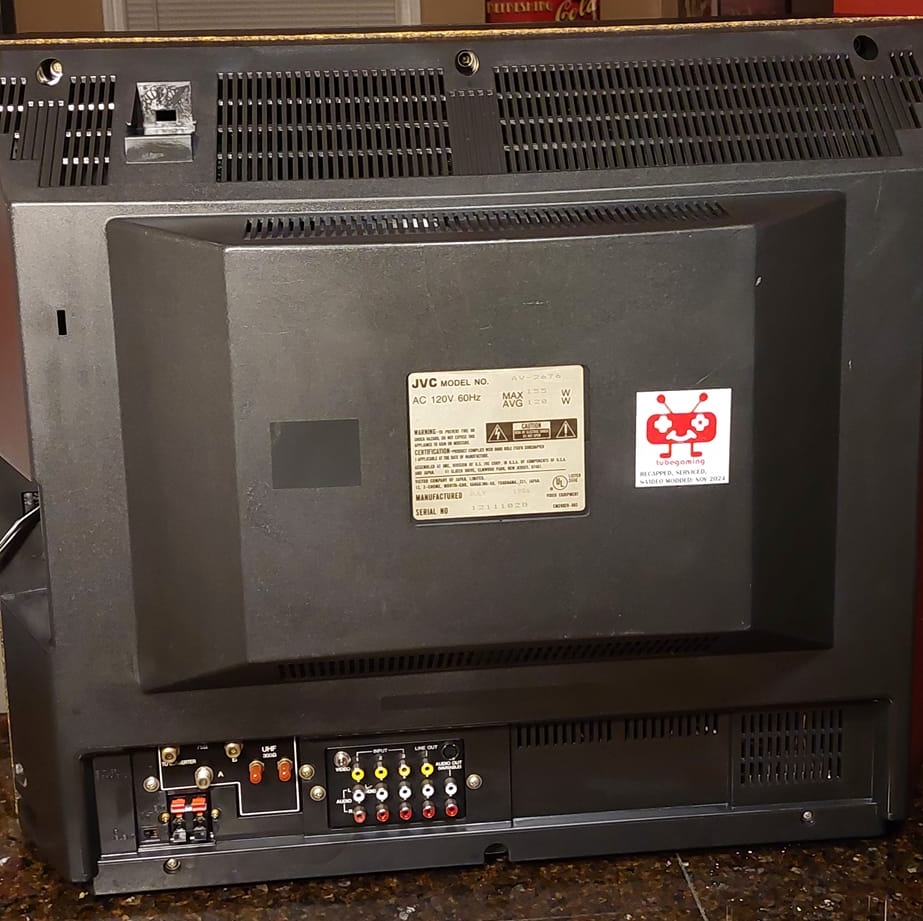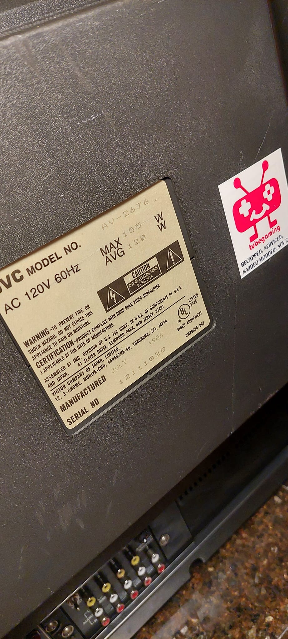A higher-end JVC set for 1986, with several AV inputs and stereo sound options. Assembled in the USA from domestic and Japanese-made parts.