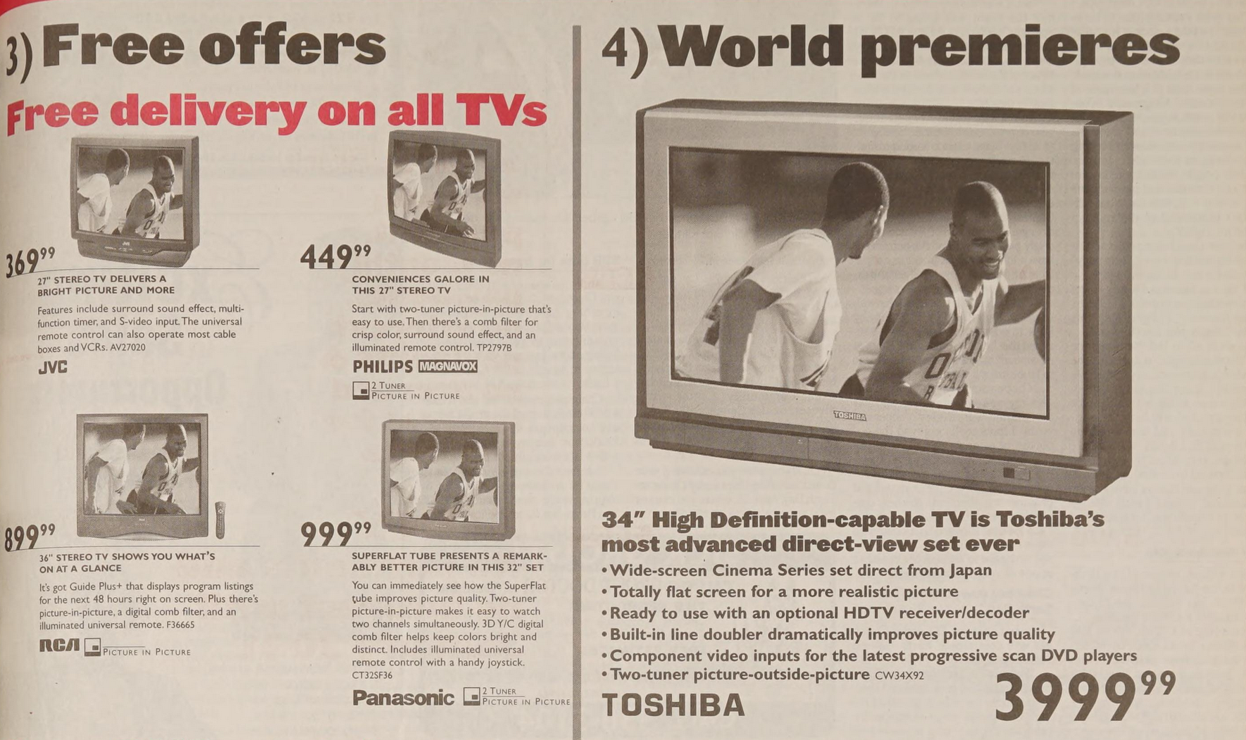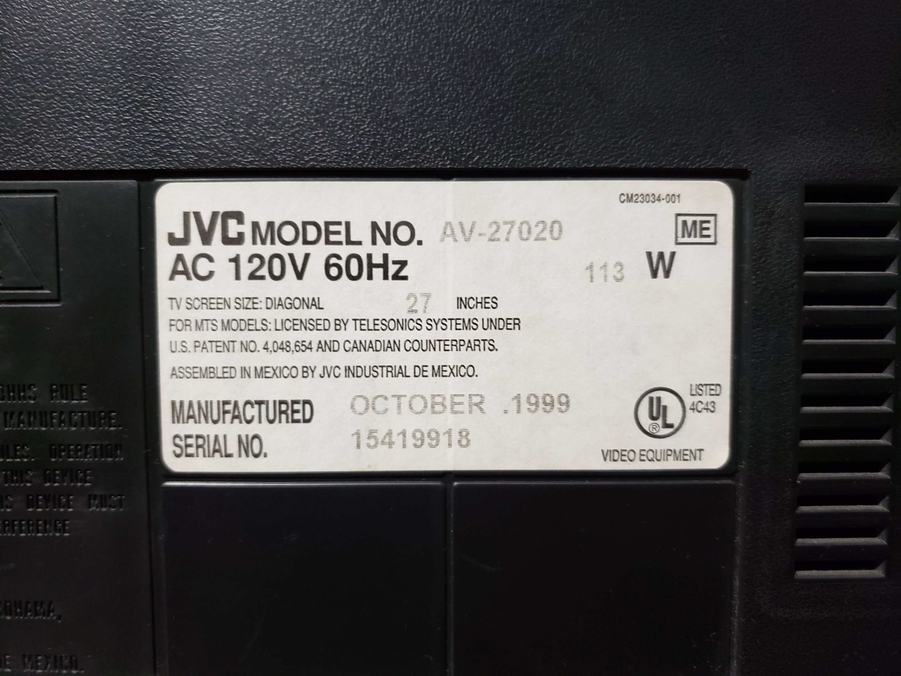 While this was one of JVC's cheaper 27" sets in 1999, the exclusion of a comb filter makes for less dot artifacting overall in composite for 240p computer graphics than the more expensive models with a comb filter included.