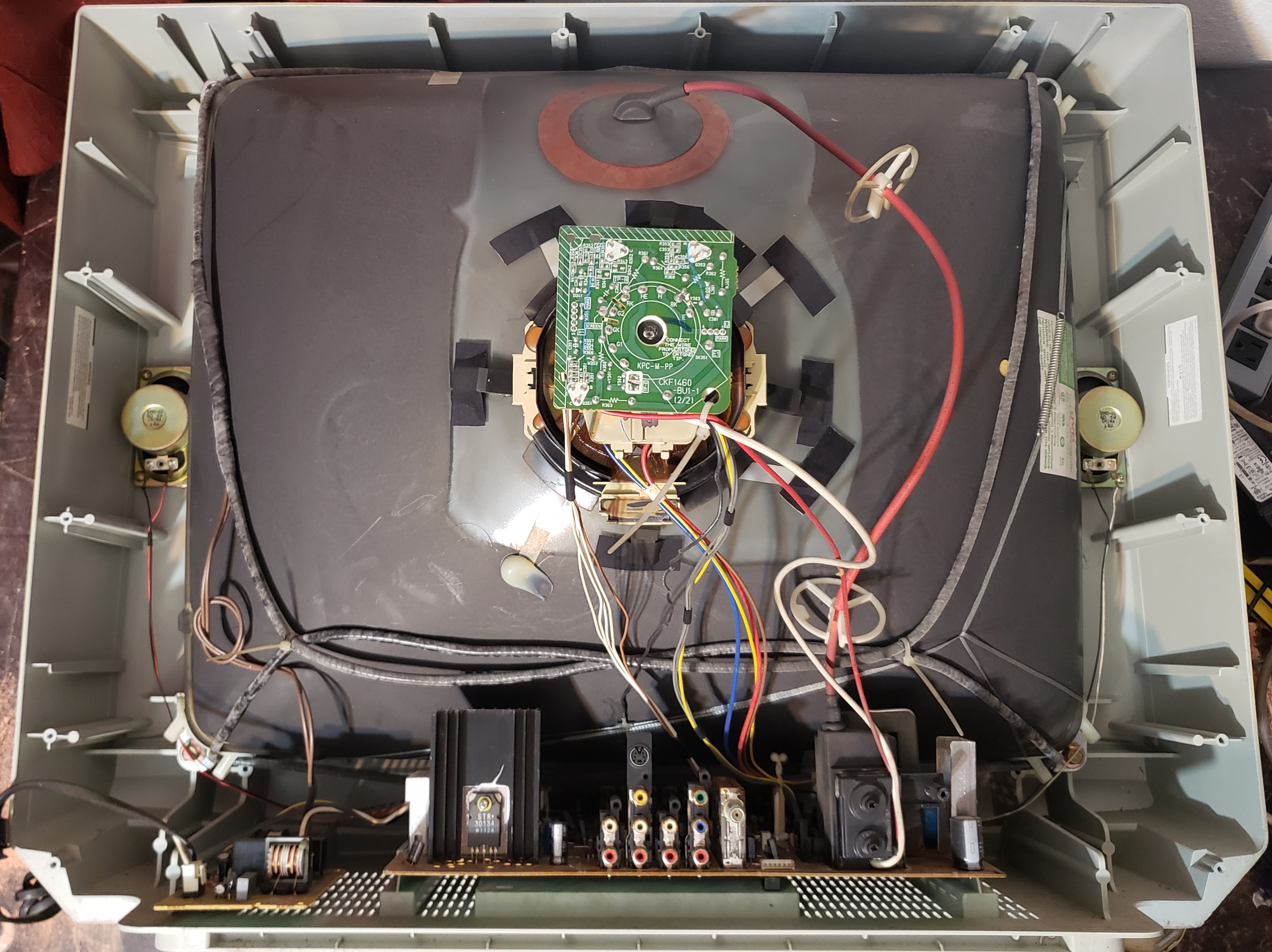 The tube in this model can be identified based on the letter beside the serial number: "R" for RCA, and "S" for Samsung. The pics you see are of the Samsung tube with low hours and it's fantastic! Very sharp and clean. Picture was set with red push disabled, and sharpness set to 25%.