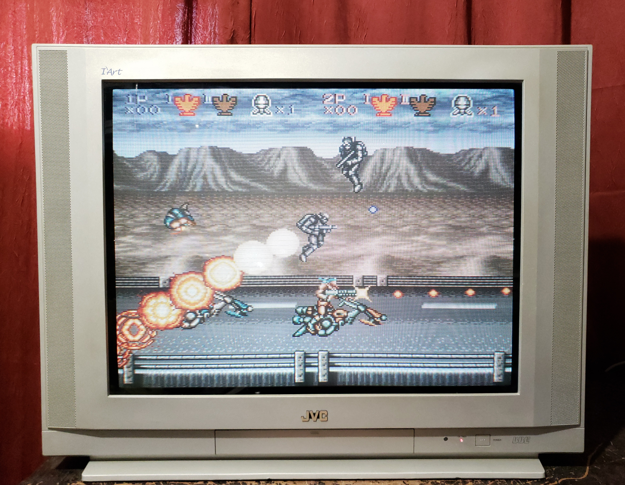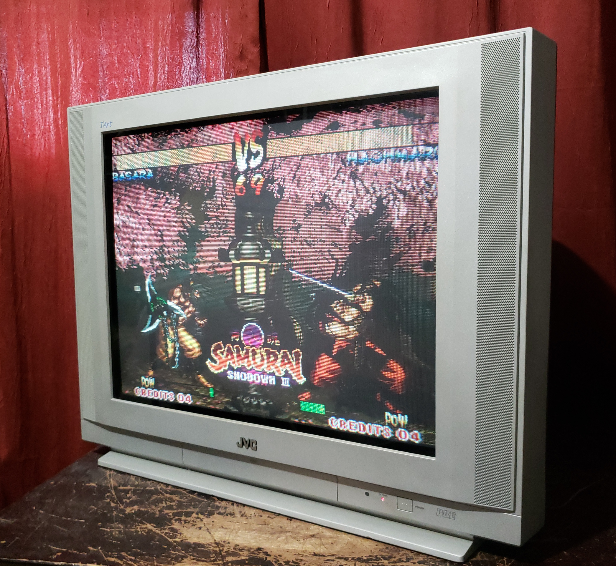 For composite decoding this set uses a Toshiba TC90A49P, a 3-line digital comb filter. Depending on the console/revision, dot artifacting ranges from slight to severe, and blending effects may be broken. If the set has an s-video or component YPbPr input, then using a good external notch filter to decode composite instead and sending that to the set would blend all dithering patterns and remove nearly all dot artifacts (full guide here).