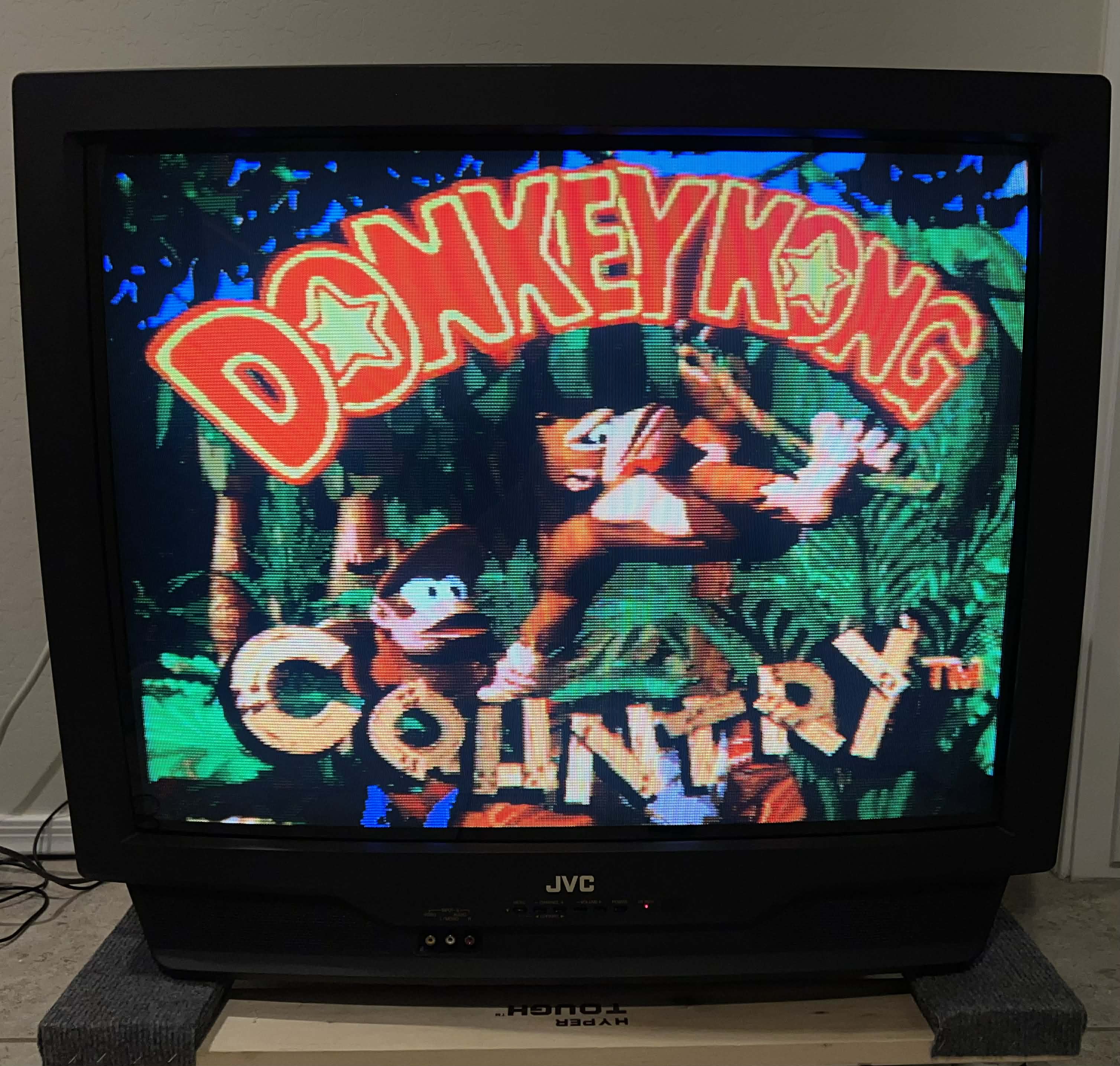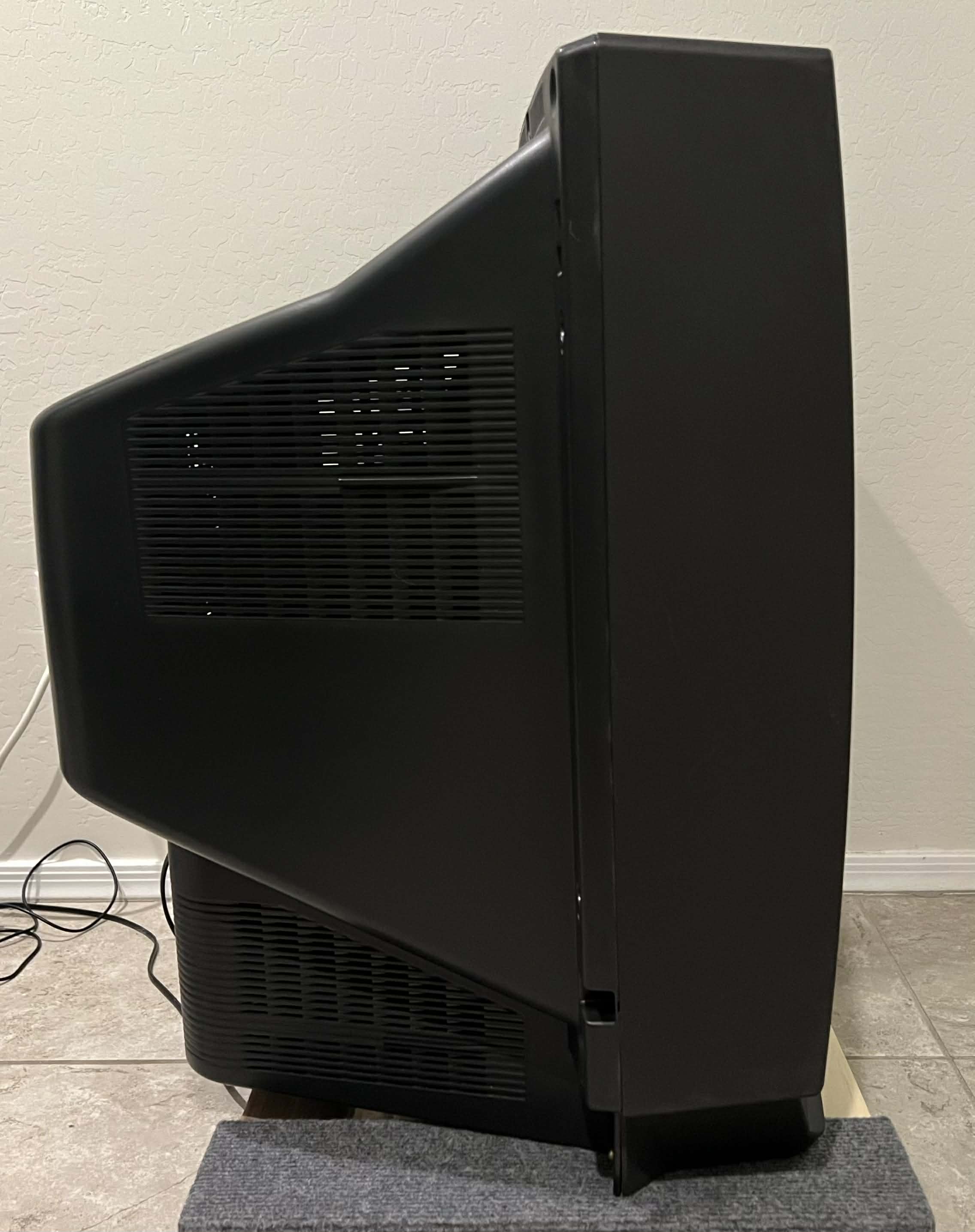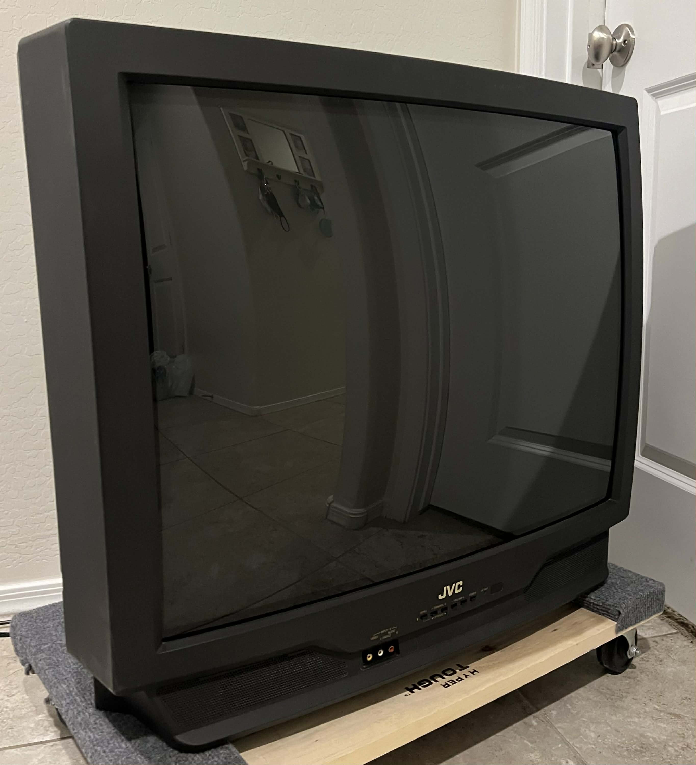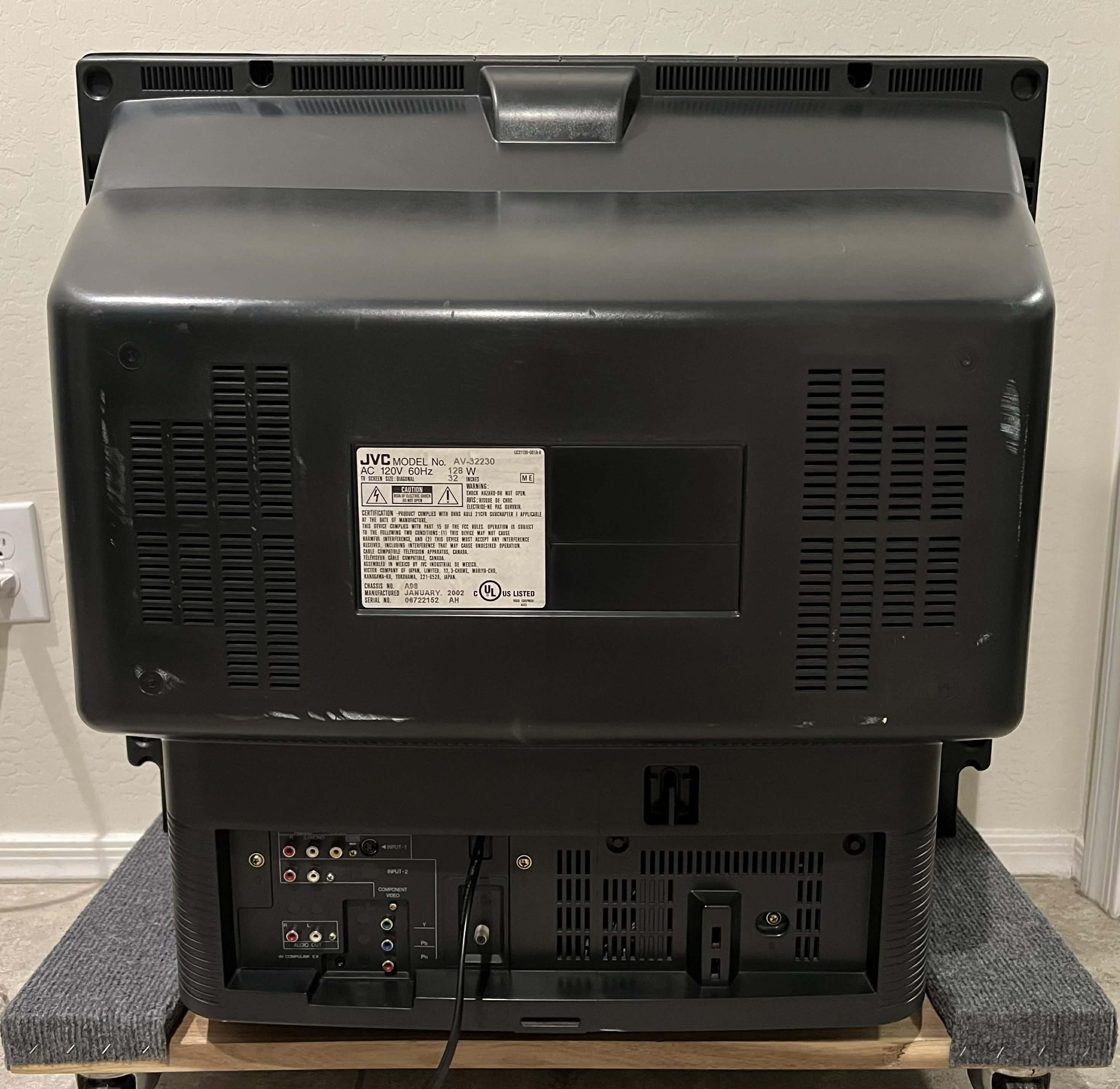 32" curved-screen CRT by JVC, made i Mexico in 2001. Has RF, composite, s-video and component inputs with stereo sound. Uses the same parts as the D-Series but in a different case design.
