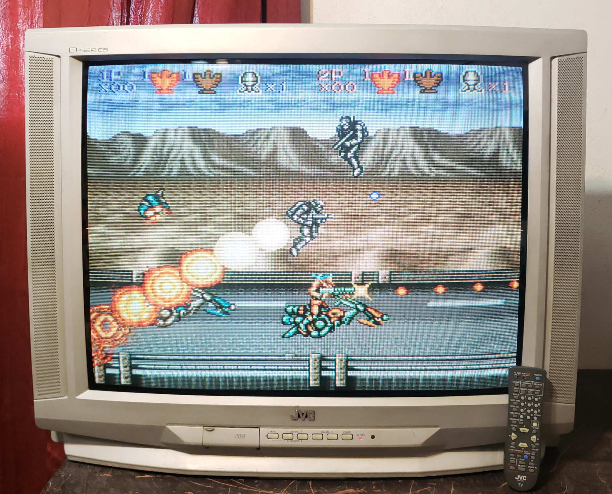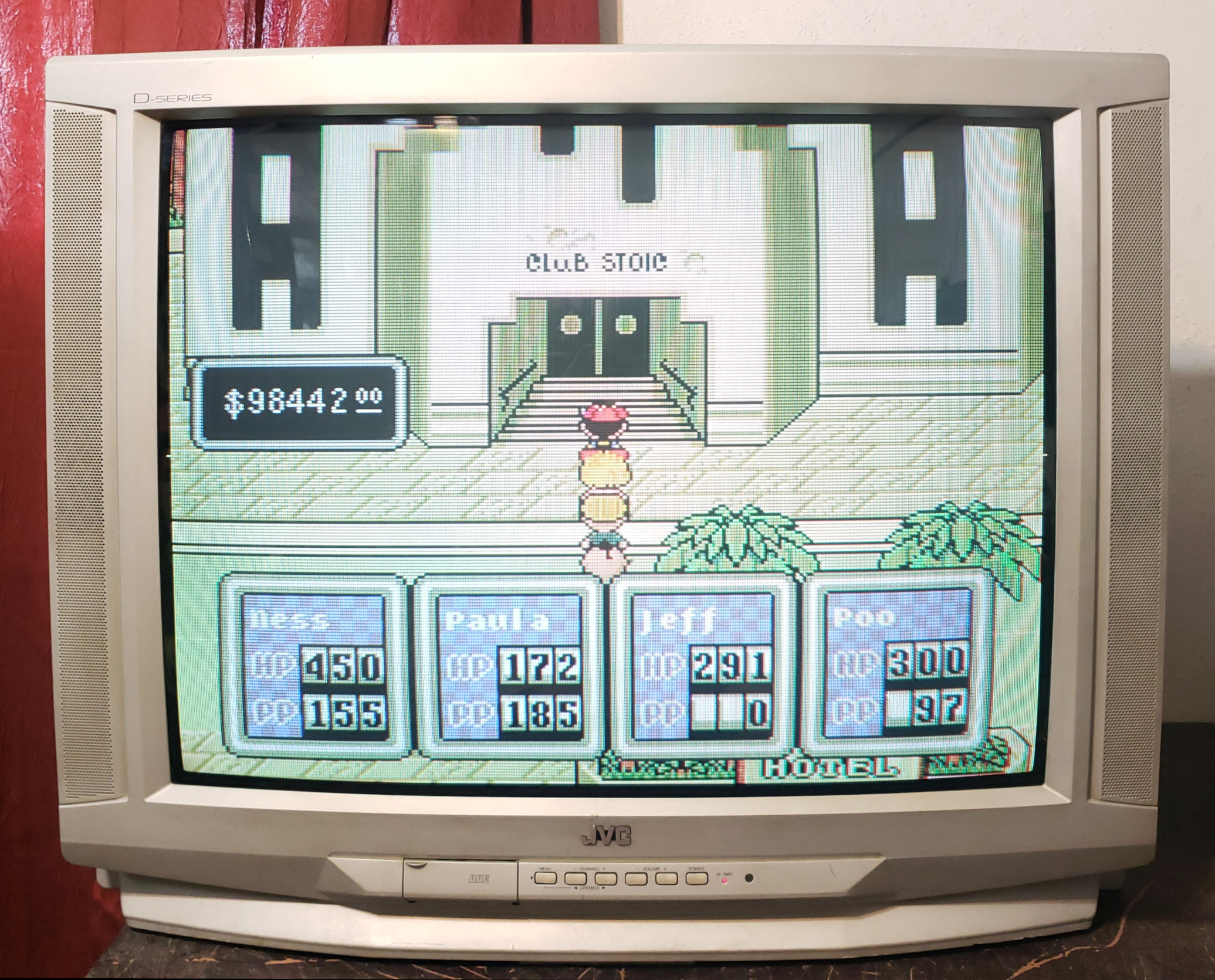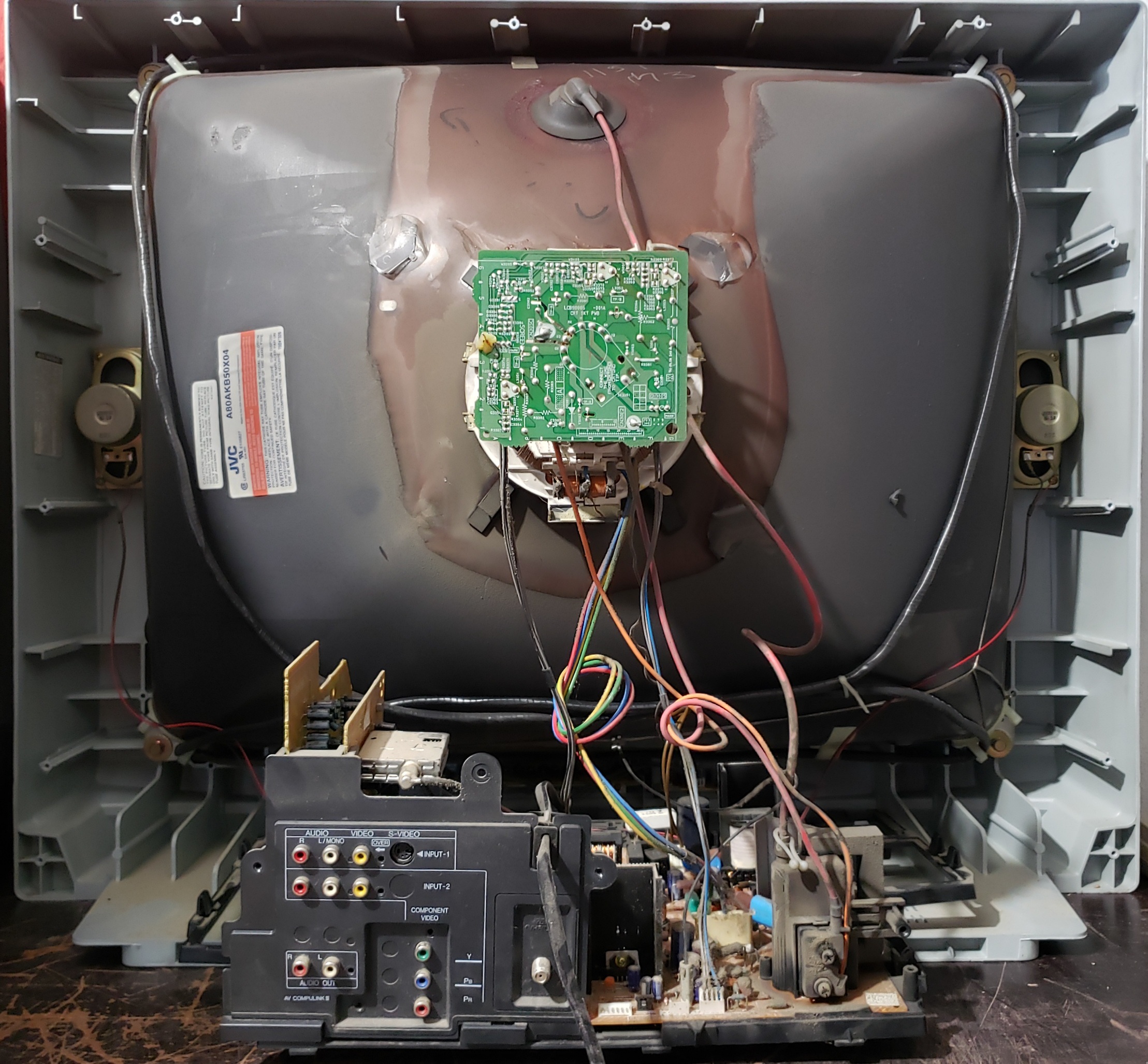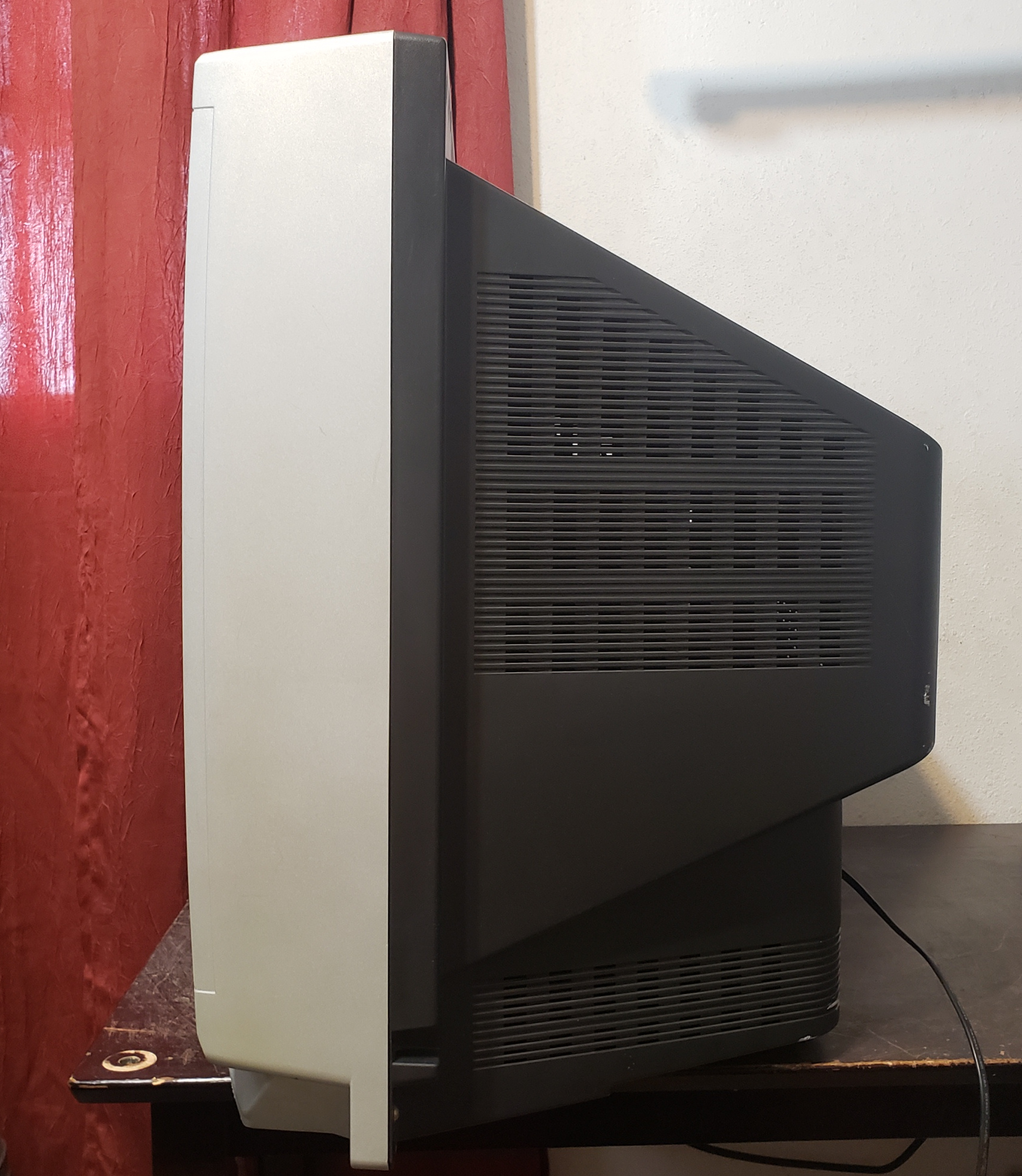 For composite decoding this set uses a Toshiba TC90A49P, a 3-line digital comb filter. Depending on the console/revision, dot artifacting ranges from slight to severe, and blending effects may be broken. If the set has an s-video or component YPbPr input, then using a good external notch filter to decode composite instead and sending that to the set would blend all dithering patterns and remove nearly all dot artifacts (full guide here).