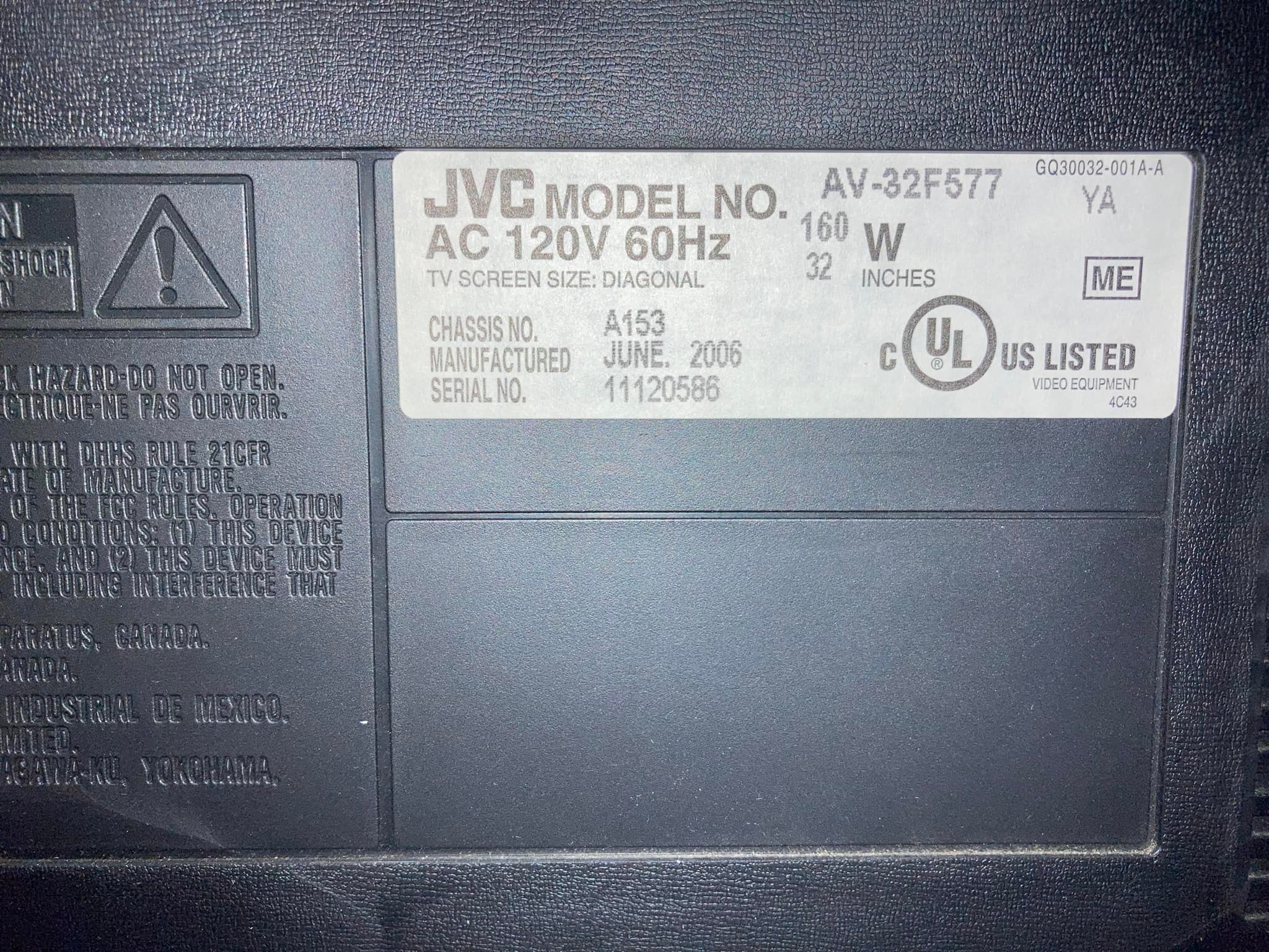 32" JVC flat CRT. Has a full set of inputs, including a digital tuner. Made in Mexico in 2006. Despite looking like an I'Art model, this set lacks the branding.