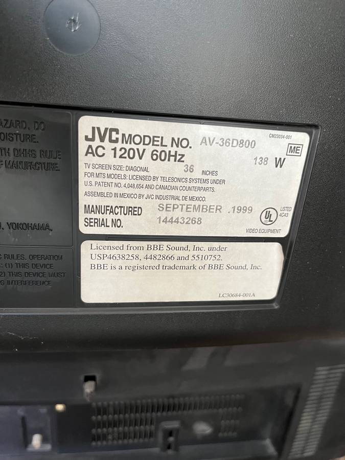 A fantastic set by JVC. The first 36" D-Series, introduced in 1999. Made in Mexico.