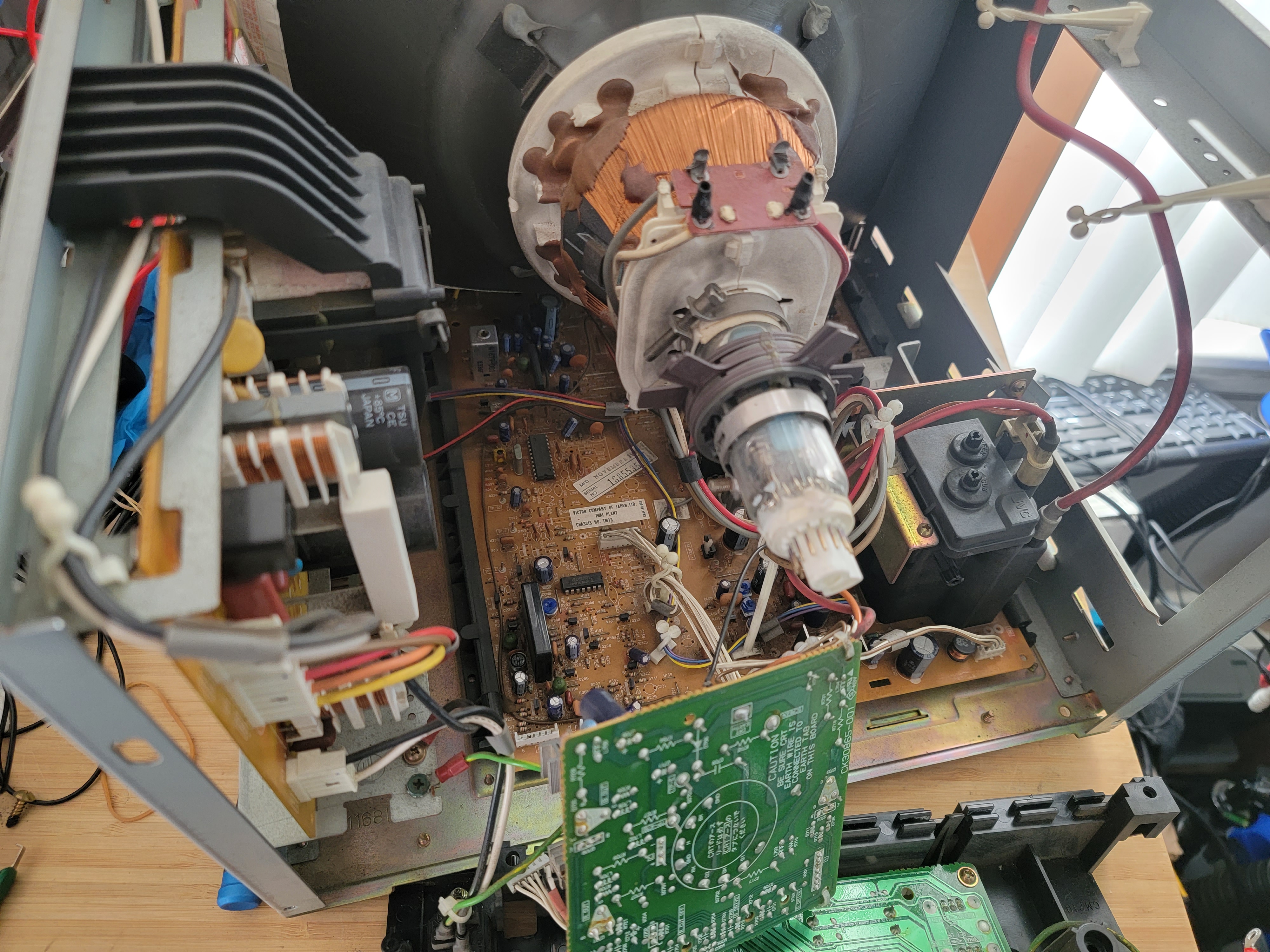 Random fact: The diameter of the holes drilled for Y/V 358 is exactly the same as the panel mount S-Video plugs you can harvest from dead PVM input boards. All you need to do is shave out the keyway on the empty hole left behind from the Y/C 358 connector so that it is a complete circle all the way around.