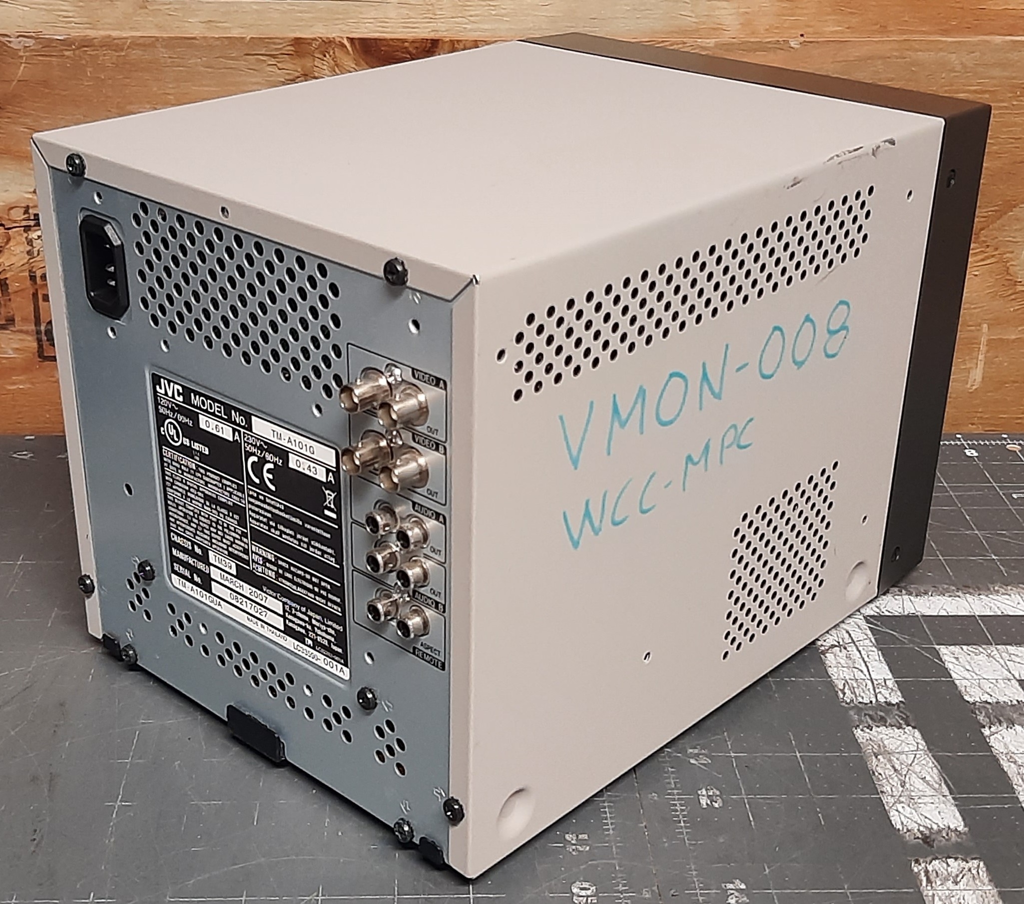 The TM-A101G was JVC's base model 9" monitor from 2002 onwards. It is an updated replacement to the TM-A9U. New features on this model include an extra composite input, PAL compatibility, and optional 16:9 aspect ratio. Unlike the older models, configuration is done via an onscreen menu as opposed to trim pots.