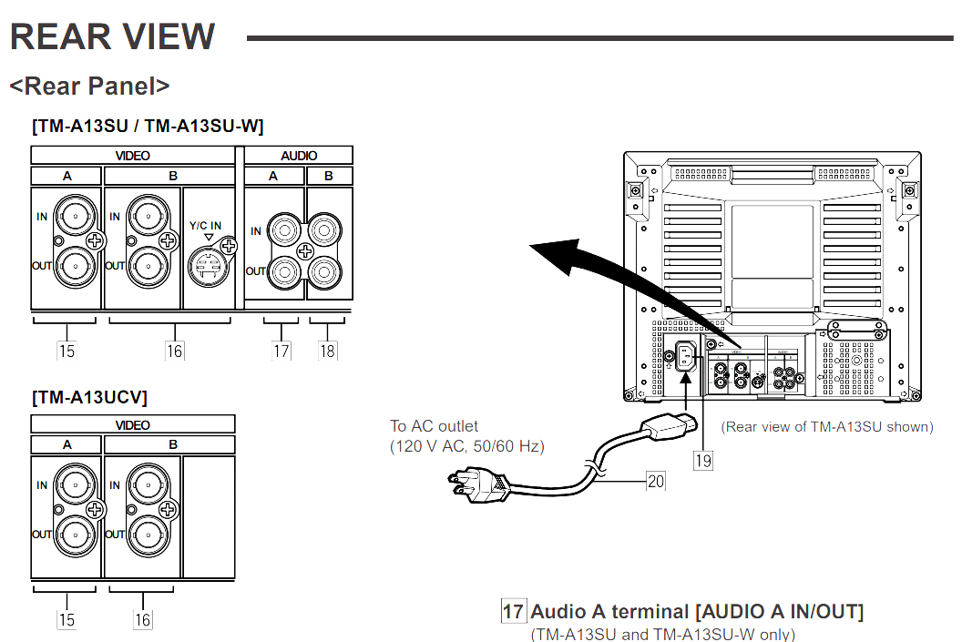 It has been speculated that the JVC TM series uses some prefix and suffix letters to denote what features the monitor has: