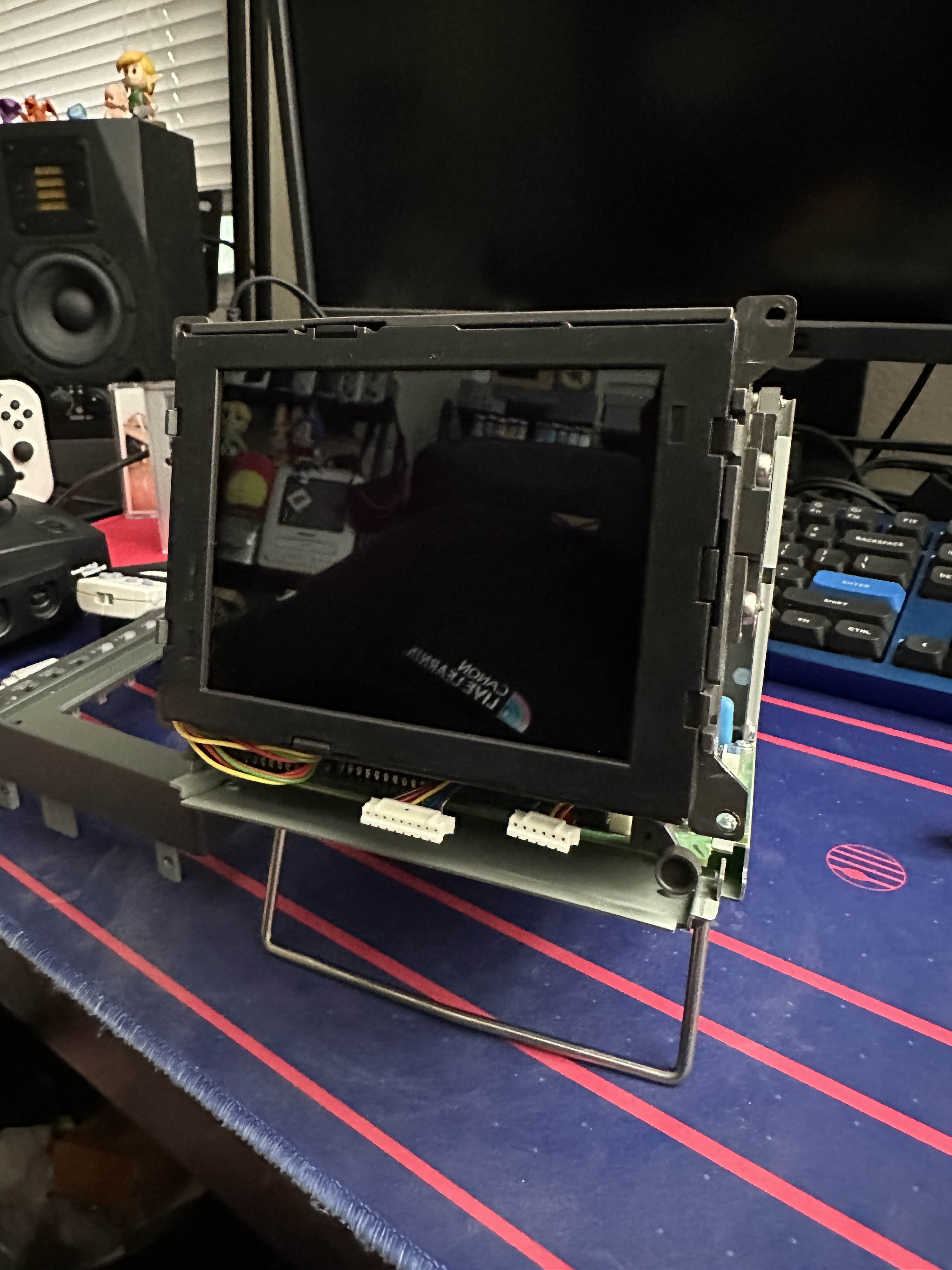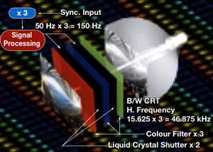 4.5" professional monitor from JVC. It sports a truly unique design that consists of a black-and-white CRT tube with a colour LCD in front of it to produce a color image. It was promoted to be useful is very bright environments. JVC's "LCSS" technology consists of capturing seperate RGB signals into field memory, then displaying the signal three times through the CRT while shuttering the LCD in color sequence. JVC also made an similar monitor, dubbed the TM-L500PN. It is marketed as a 5" display but carries the exact same internal part numbers including CRT tube and LCD.