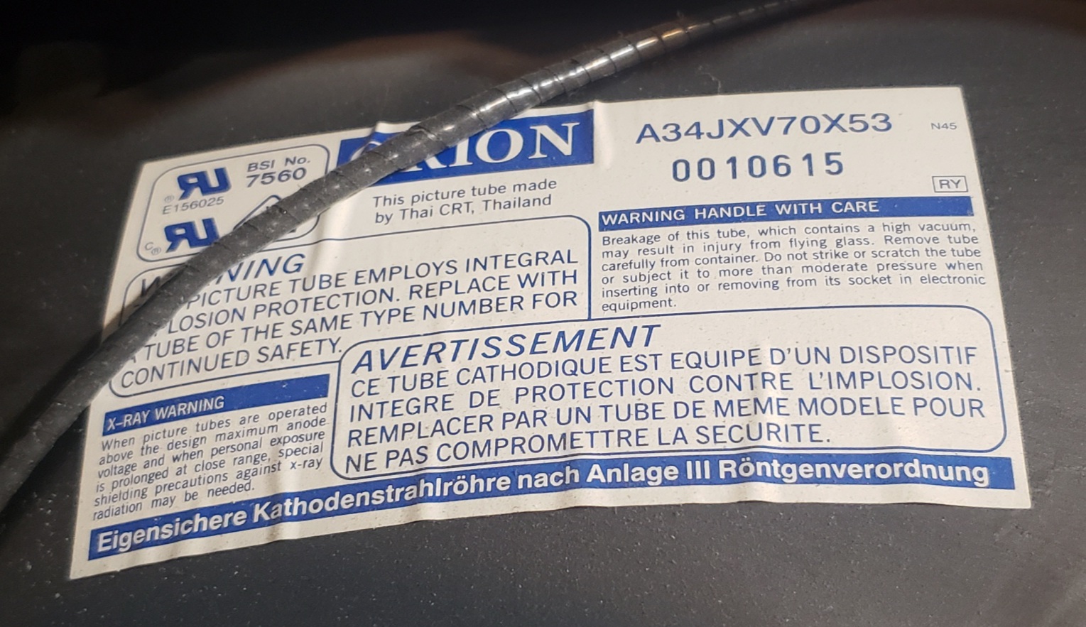 | Tube: | A34AGT13X98 , A34AGT13X , A34JXV70X53 , A34JXV70X , Thai CRT Co. |