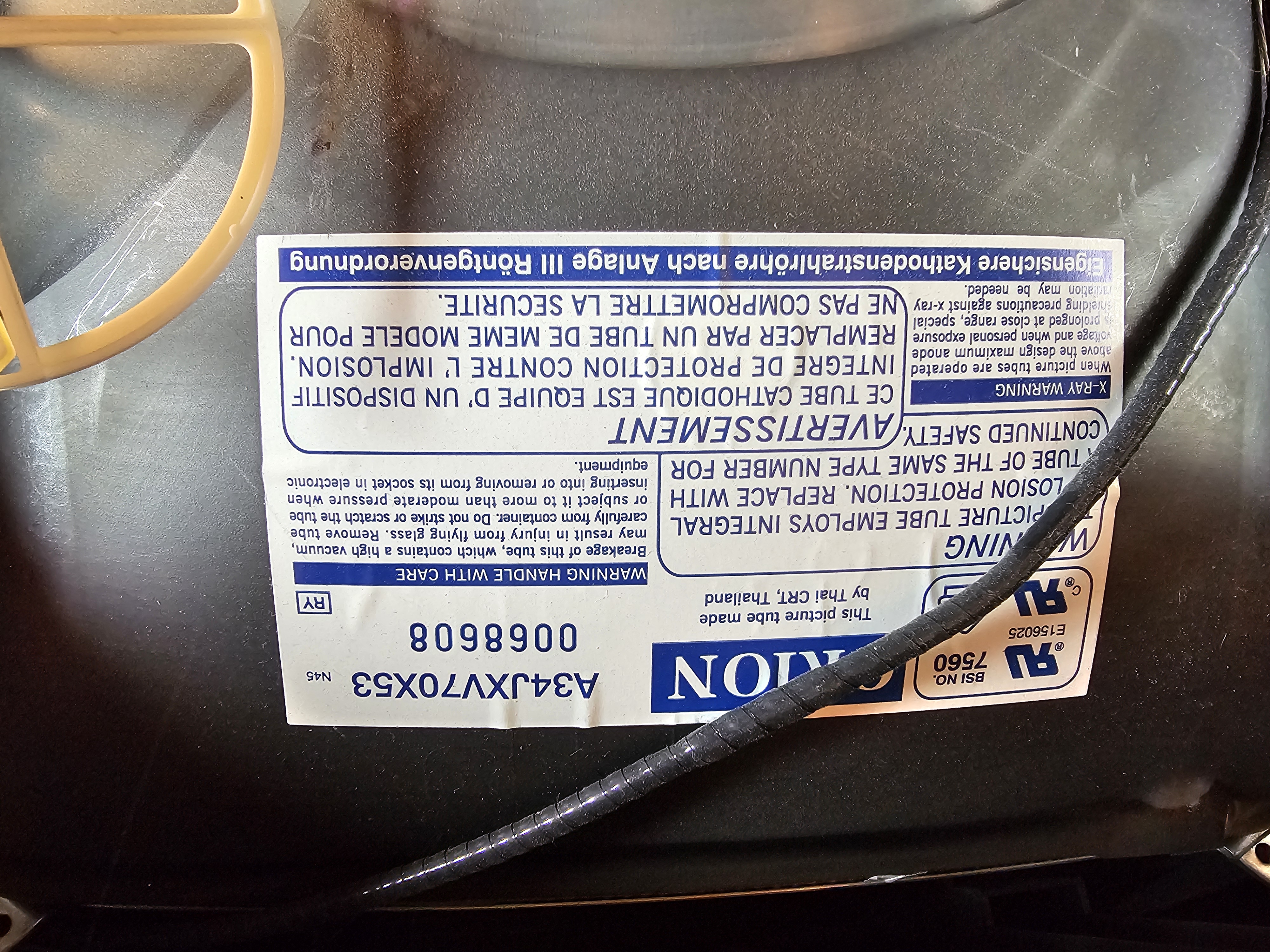 | Tube: | A34JXV70X53 , Thai CRT Co. |