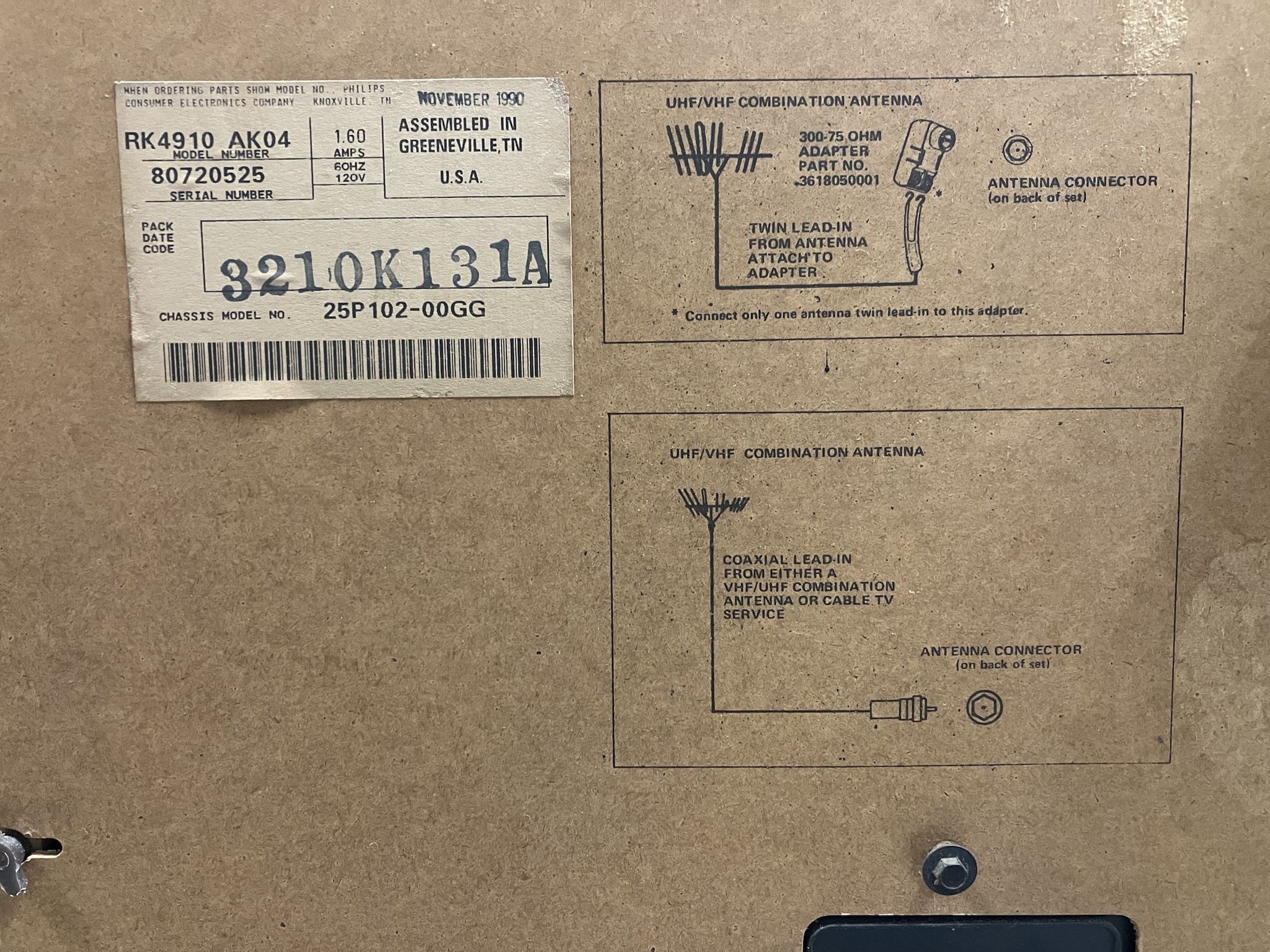 Late 80's Magnavox console television with RF and composite input.