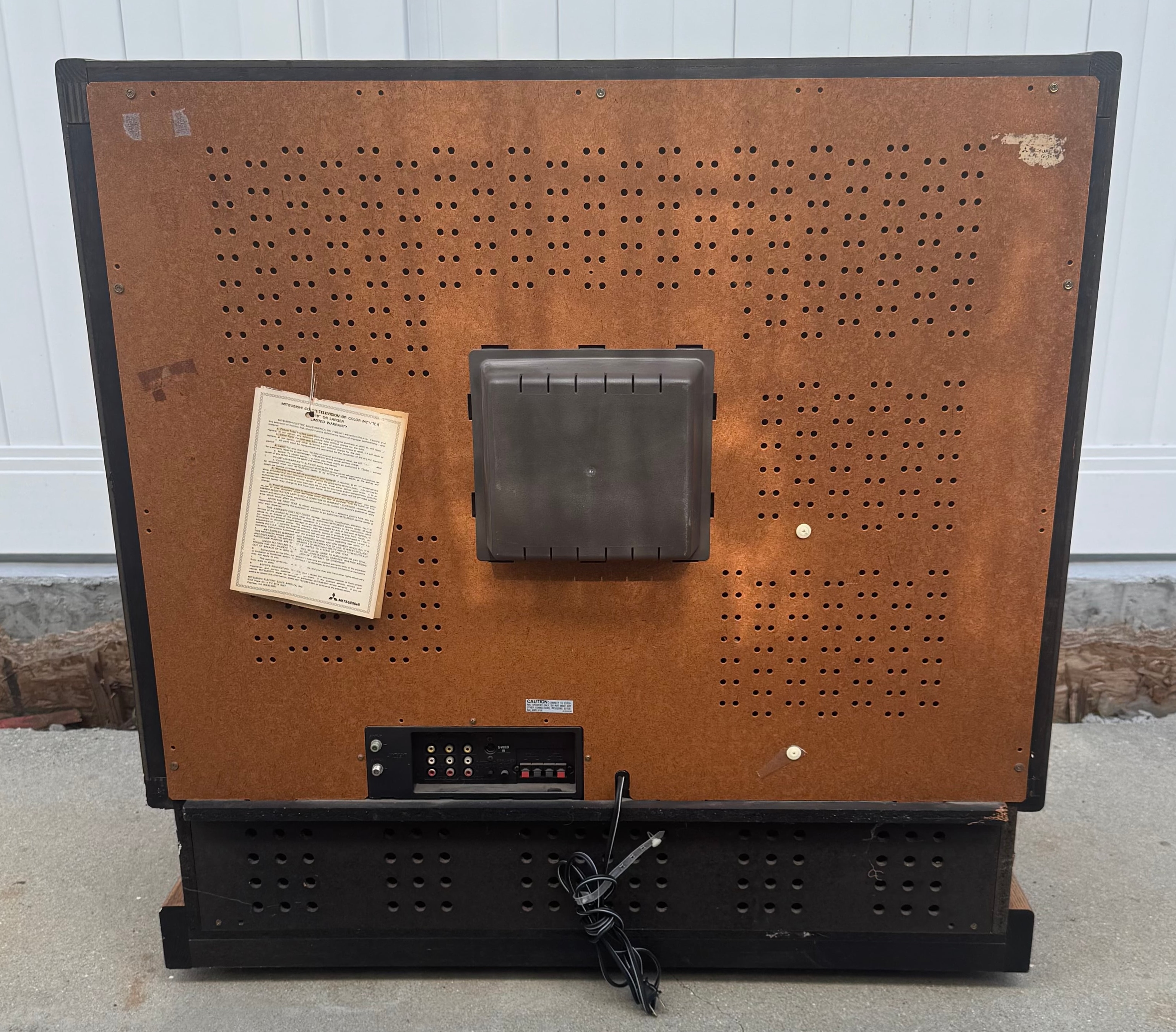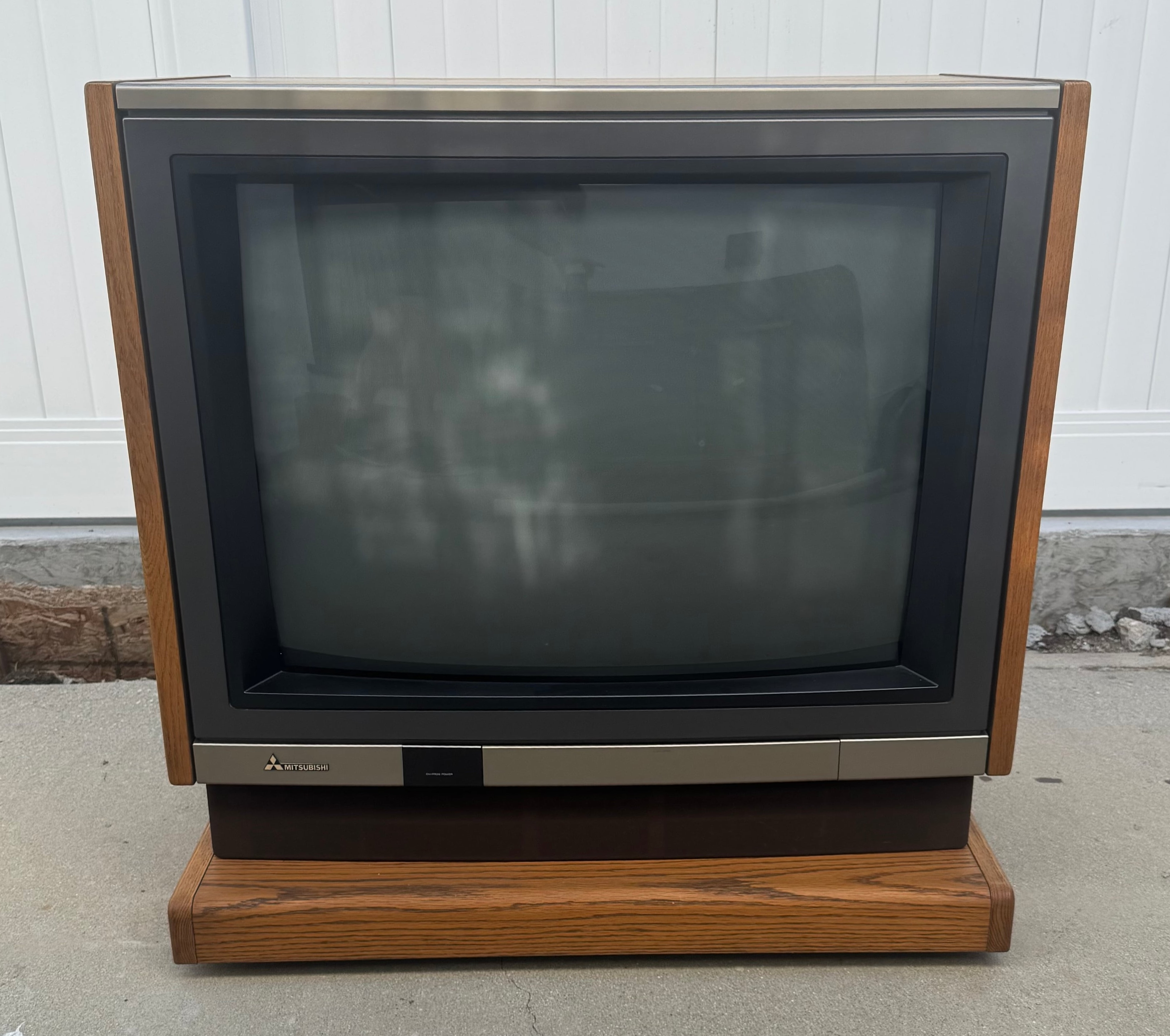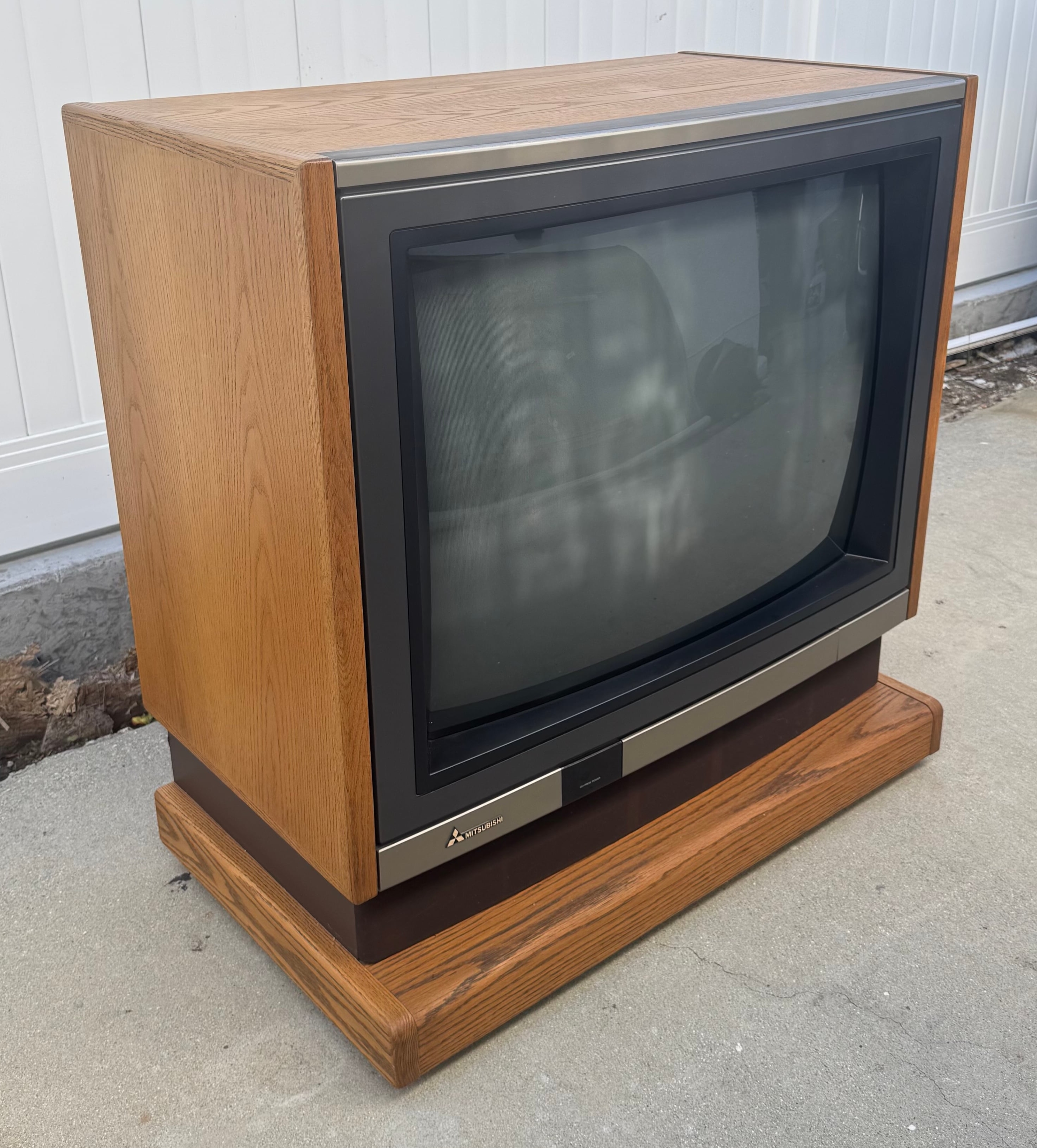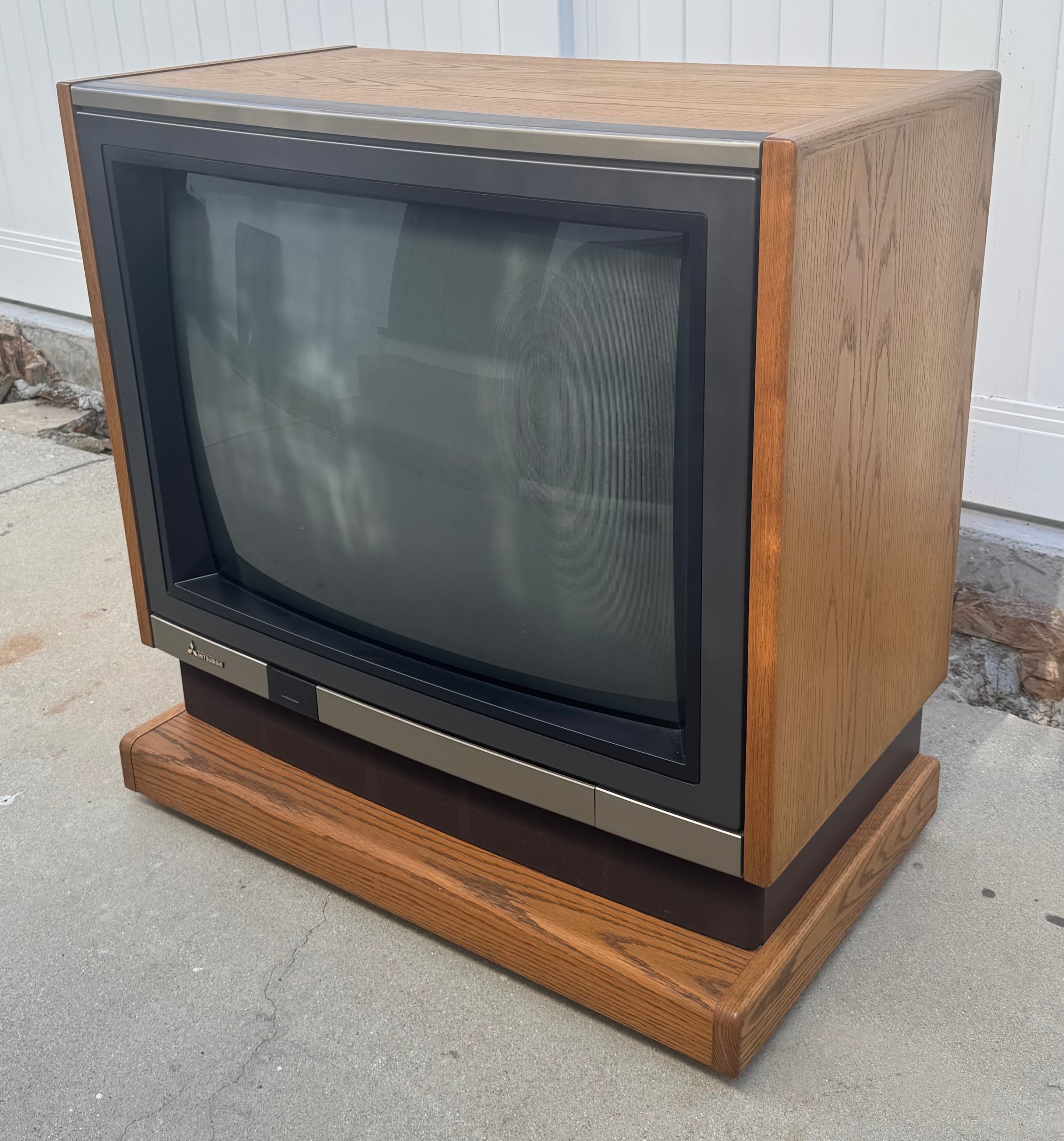 High-end 35" console TV by Mitsubishi, originally manufactured in Japan in 1987. Has RF, composite, and s-video inputs with stereo sound. This model by Mitsubishi is one of their very first with s-video.